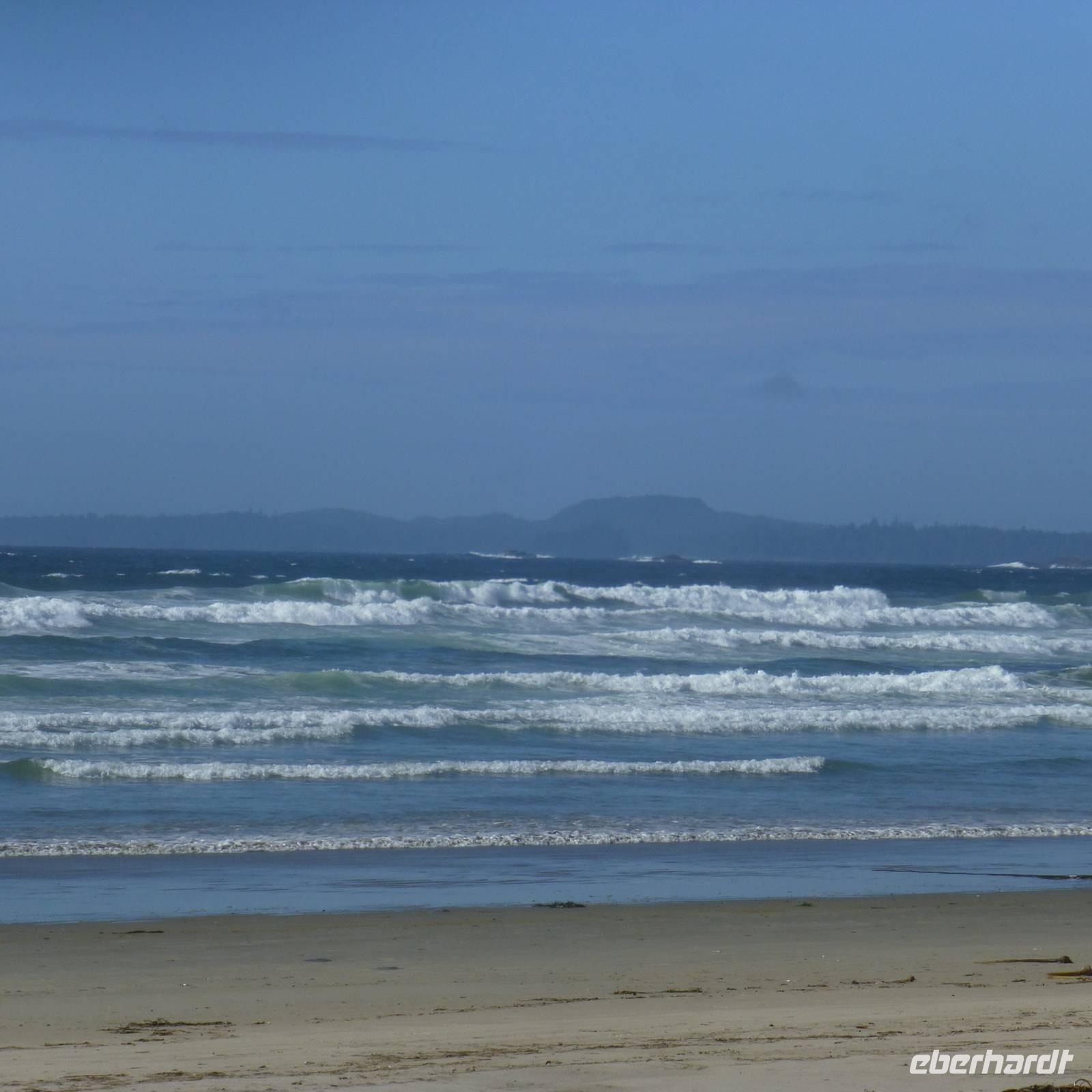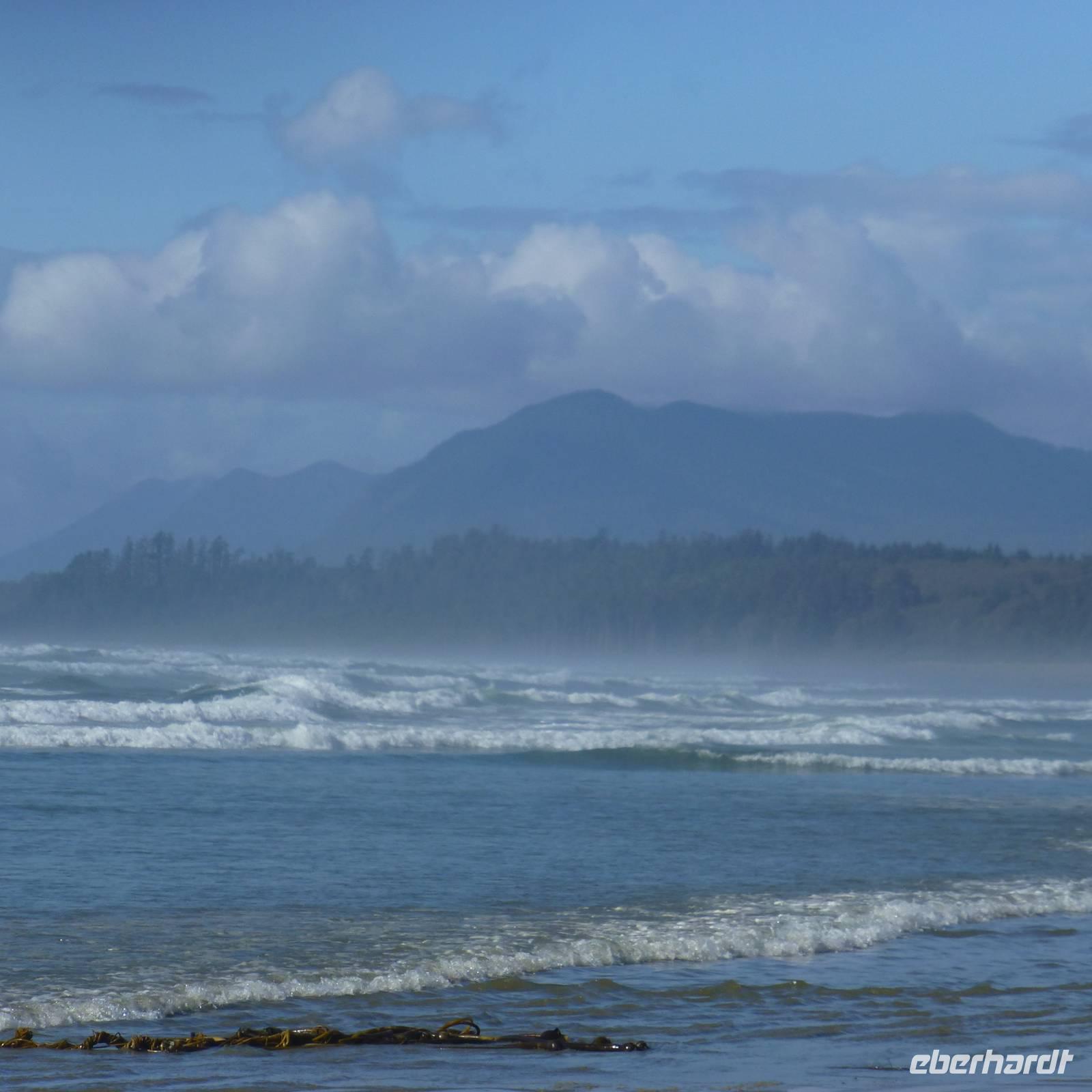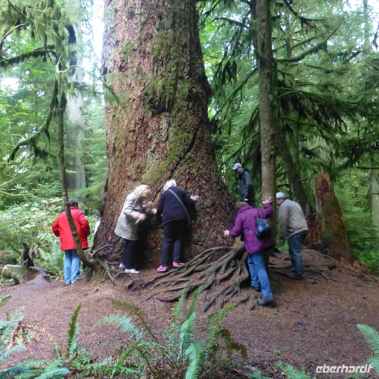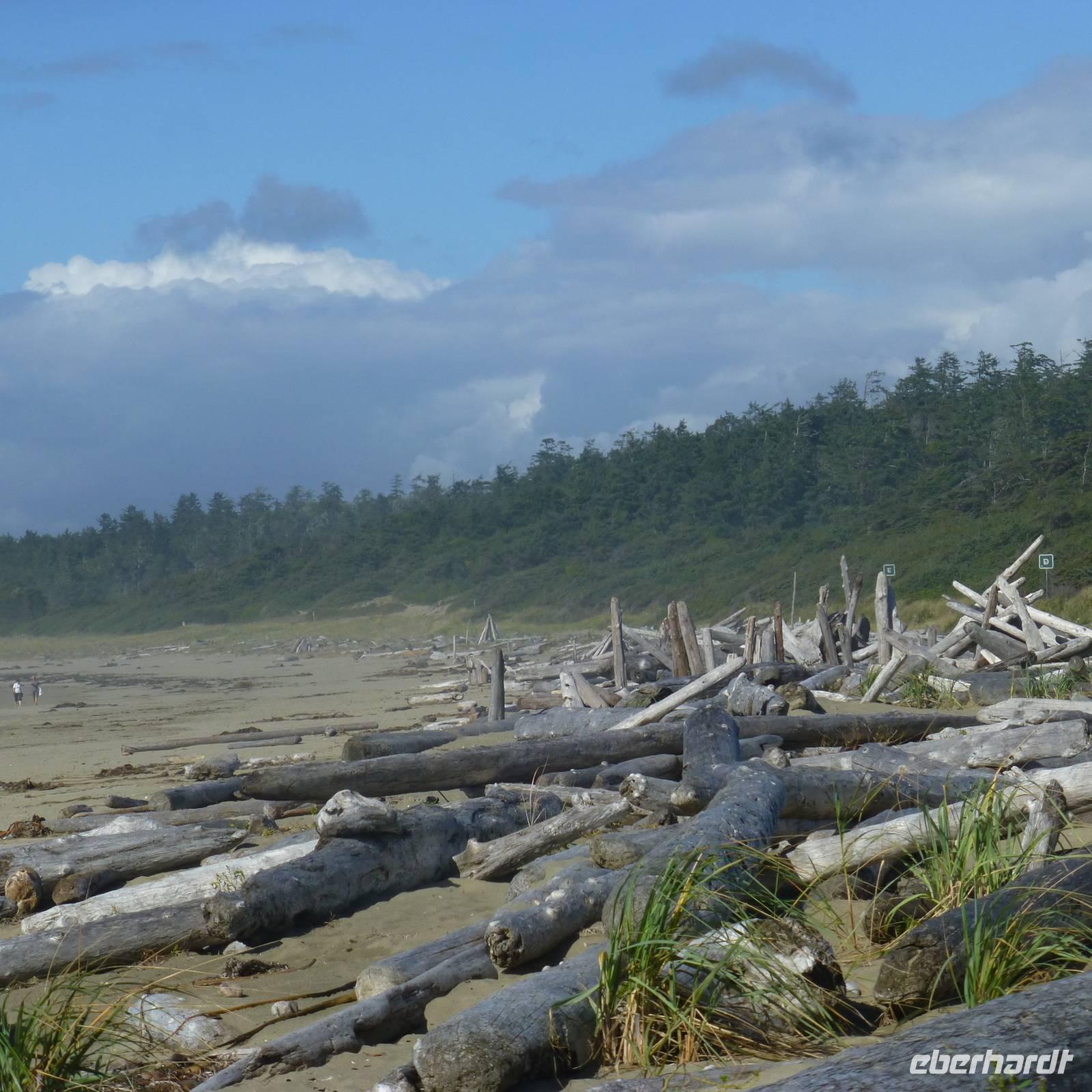 Es erwartete uns ein schönes Wetter mit Sonnenschein. Wir fuhren nach Cooms. In einem urigen Laden mit Ziegen auf dem Dach kauften wir uns etwas zum Mittagessen ein. Vorbei am Cameron Lake und durch den Mac Millen Provinz Park - wo es noch viel Forstwirtschaft gibt, erreichten wir Alberni Valley. Wie setzten unsere Reise durch Wälder und den Vancouver Ilands Mountains fort. Wieder eine große Aufregung, am Fluss war ein Bär beim Lachs fangen zu sehen. Doch keiner konnte ihn so schnell auf das Bild bekommen. Anschließend fuhren wir zum Kennedy Lake und erreichten den Pacifik Rim Nationalpark wo wir im Informations Centrum einen Stopp einlegten. Auf dem Weg nach Torfino sahen wir überall Warnschilder, wir befanden uns im Sunamigebiet. Nach unserem Aufenthalt in Torfino fuhren wir an den Pazifik. Am Strand stießen wir mit einem Glas Wein auf den Geburtstag von Boris an. Wir spazierten am Strand entlang und ließen uns die frische Brise um die Nase wehen. Einige Muscheln wurden gesammelt oder es wurde einfach nur gefaulenzt. Ein Höhepunkt bestand noch bevor der Besuch im Cathedral Grove. Der 300 ha große Park ist durch seine über 800 Jahre alte Douglasien bekannt. Auch die größte Tanne mit einem Umfang von 9 m konnten wir bestaunen. Ein sehr schönes Erlebnis in dem naturbelassenen Regenwald zu wandeln.