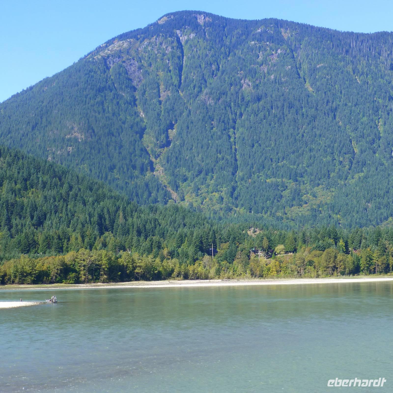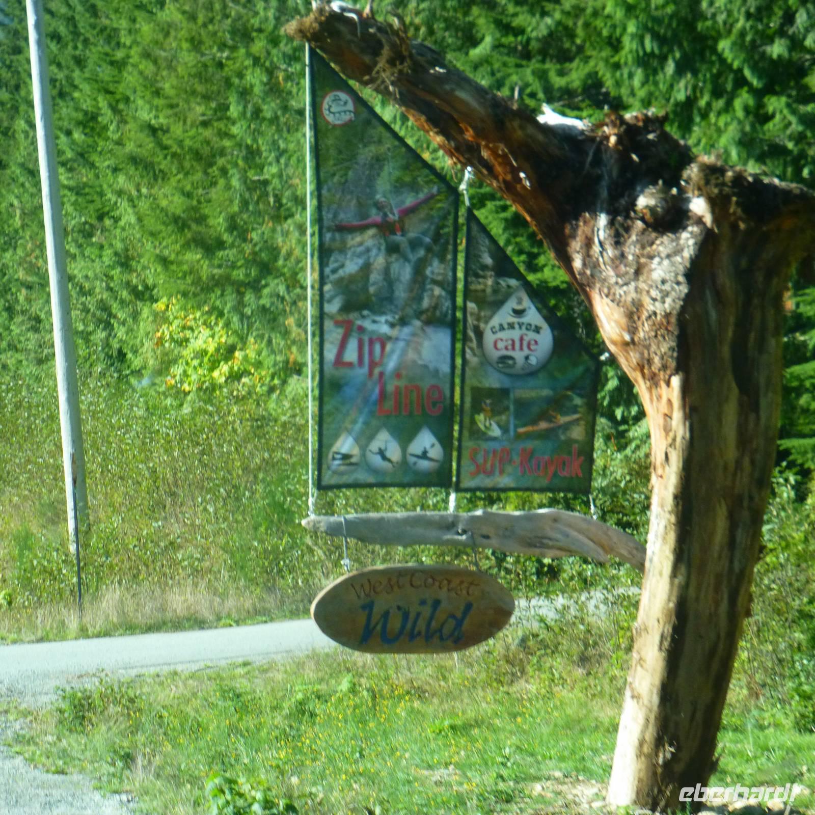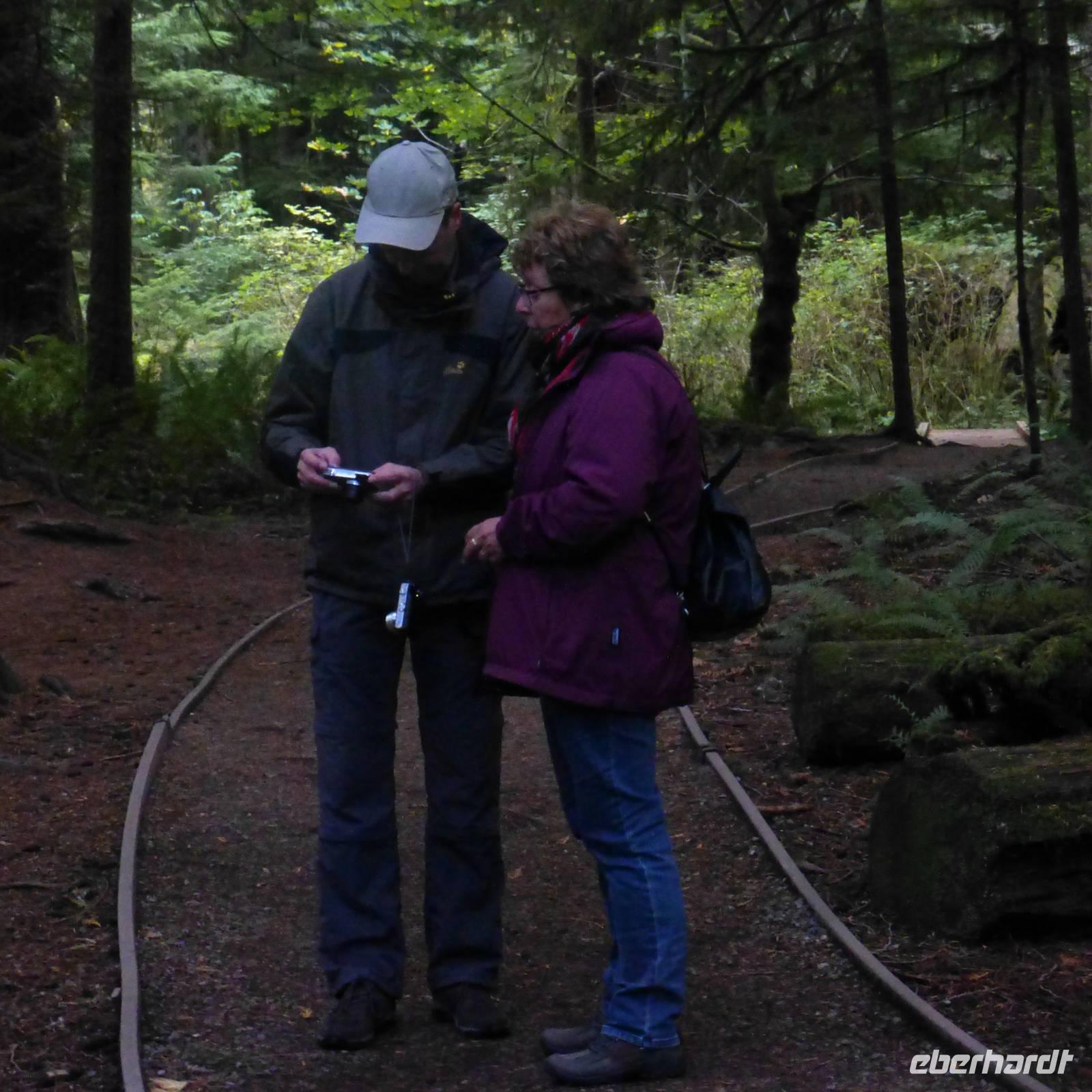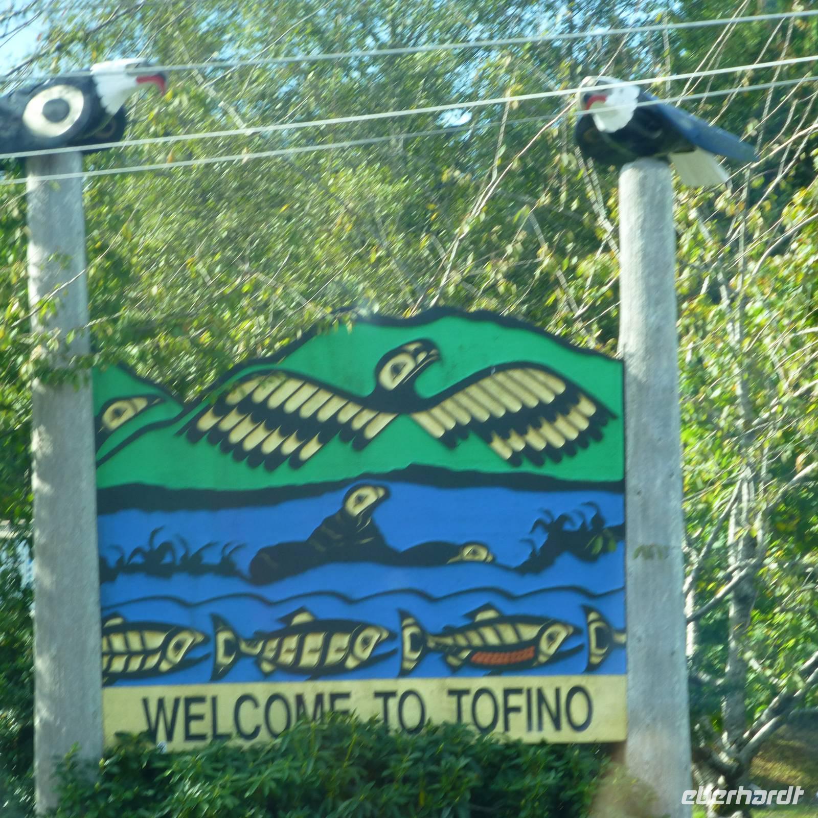 Es erwartete uns ein schönes Wetter mit Sonnenschein. Wir fuhren nach Cooms. In einem urigen Laden mit Ziegen auf dem Dach kauften wir uns etwas zum Mittagessen ein. Vorbei am Cameron Lake und durch den Mac Millen Provinz Park - wo es noch viel Forstwirtschaft gibt, erreichten wir Alberni Valley. Wie setzten unsere Reise durch Wälder und den Vancouver Ilands Mountains fort. Wieder eine große Aufregung, am Fluss war ein Bär beim Lachs fangen zu sehen. Doch keiner konnte ihn so schnell auf das Bild bekommen. Anschließend fuhren wir zum Kennedy Lake und erreichten den Pacifik Rim Nationalpark wo wir im Informations Centrum einen Stopp einlegten. Auf dem Weg nach Torfino sahen wir überall Warnschilder, wir befanden uns im Sunamigebiet. Nach unserem Aufenthalt in Torfino fuhren wir an den Pazifik. Am Strand stießen wir mit einem Glas Wein auf den Geburtstag von Boris an. Wir spazierten am Strand entlang und ließen uns die frische Brise um die Nase wehen. Einige Muscheln wurden gesammelt oder es wurde einfach nur gefaulenzt. Ein Höhepunkt bestand noch bevor der Besuch im Cathedral Grove. Der 300 ha große Park ist durch seine über 800 Jahre alte Douglasien bekannt. Auch die größte Tanne mit einem Umfang von 9 m konnten wir bestaunen. Ein sehr schönes Erlebnis in dem naturbelassenen Regenwald zu wandeln.