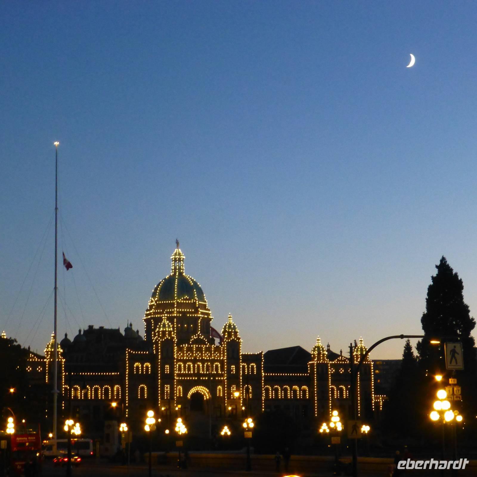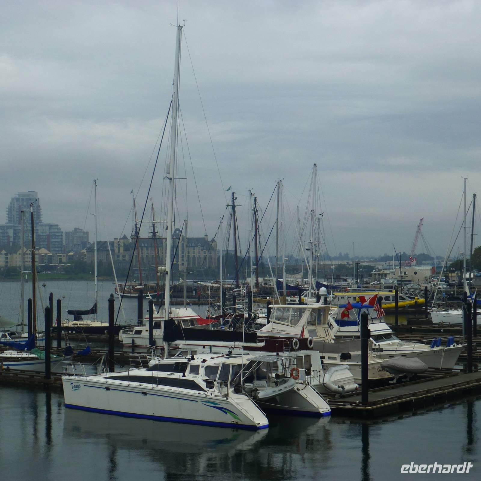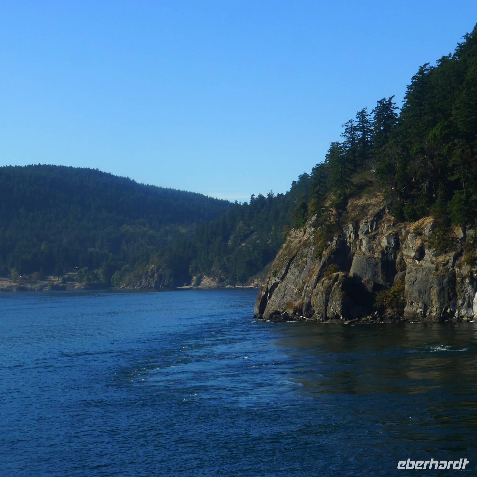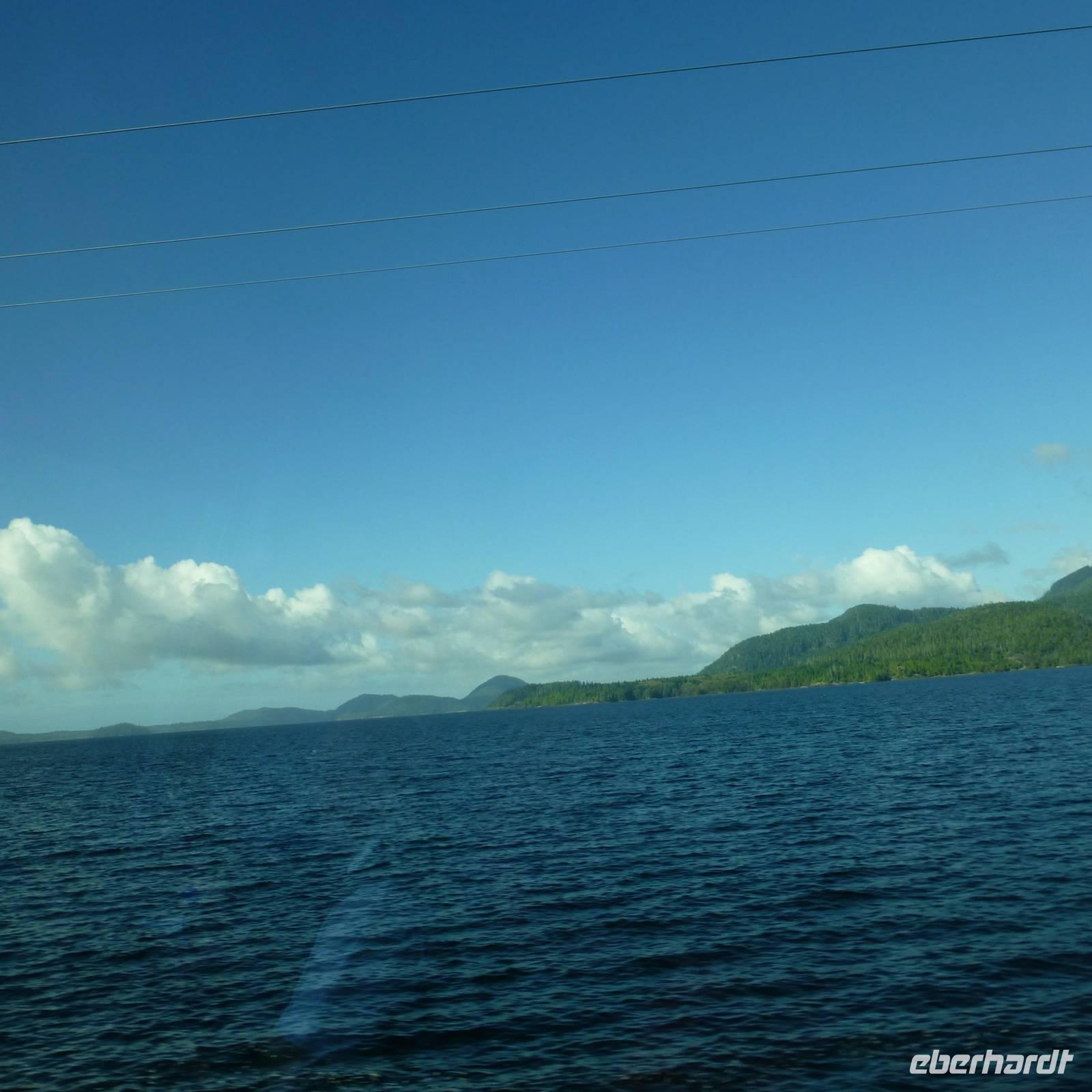 Heute stand eine lange Fahrt bevor. Bei schönem Wetter mit blauer Himmel und Sonnenschein fuhren wir 411km nach Tsawassen zur Fähre nach Vancouver Island. Wir erreichten Korumeus - die letzte Stadt des Obstanbaus. Auch hier gab es viele Obststände. Unsere weitere Reise führte uns hinein in die Kaskadenberge nach Hedley, die frühere Goldstadt. Auch jetzt kann man in den Flüssen noch Gold waschen. Weiter ging es nach Princeton. Diese Stadt besitzt eines der größten Sägewerke Kanadas. Auch der Roter Oker -rote Farbe - wird dort noch abgebaut. Auf einer sehr kurvenreichen Straße fuhren wir bis auf 1300 m Höhe. Durch den Manninge Park - benannt nach einem Premierminister - erreichten wir das Ski Gebiet. In diesem Naturbelassenen Park wurden zu den Winterspielen in Vancouver etliche Laster mit Schnee nach Vancouver gefahren. In der Manning Lodge legten wir eine Pause ein. Endlich konnten die begehrten Bärenglocken gekauft werden. Wir fuhren über den Allision Pass 1290 m weiter nach Hope. Am Fräserfluss befand sich eine schöne Parkanlage mit verschiedenen geschnitzten Figuren. Es wurde wieder etwas bergig. Die Kaskadenberge begleiten uns wieder. Das Tal wird immer breiter und auch der Fräserfluss breitet sich aus. Bald sehen wir rechts schon die Küstenberge. Wir erreichen den Fährhafen in Twarwansen und konnten sofort auf die Fähre nach Vancouver Island. Als wir los fuhren war alles im Nebel. Doch dann lichtete er sich und wir hatten einen schönen Blick auf die Golf Inseln. Ein Stück wurden wir sogar von Robben begleitet. Die Überfahrt dauert fast 2 Stunden bis nach Schwarz Bay. Wir erreichten unser Hotel in Viktoria und nutzten die Zeit bis zum Abendessen für die ersten Fotos. Das Restaurant befand sich direkt am Hafen. Doch vorher besichtigten wir noch das Empire Hotel und bestaunten das schön beleuchtete Parlament. Nach dem Abendessen kehrten wir noch in einem urigen Pub ein.