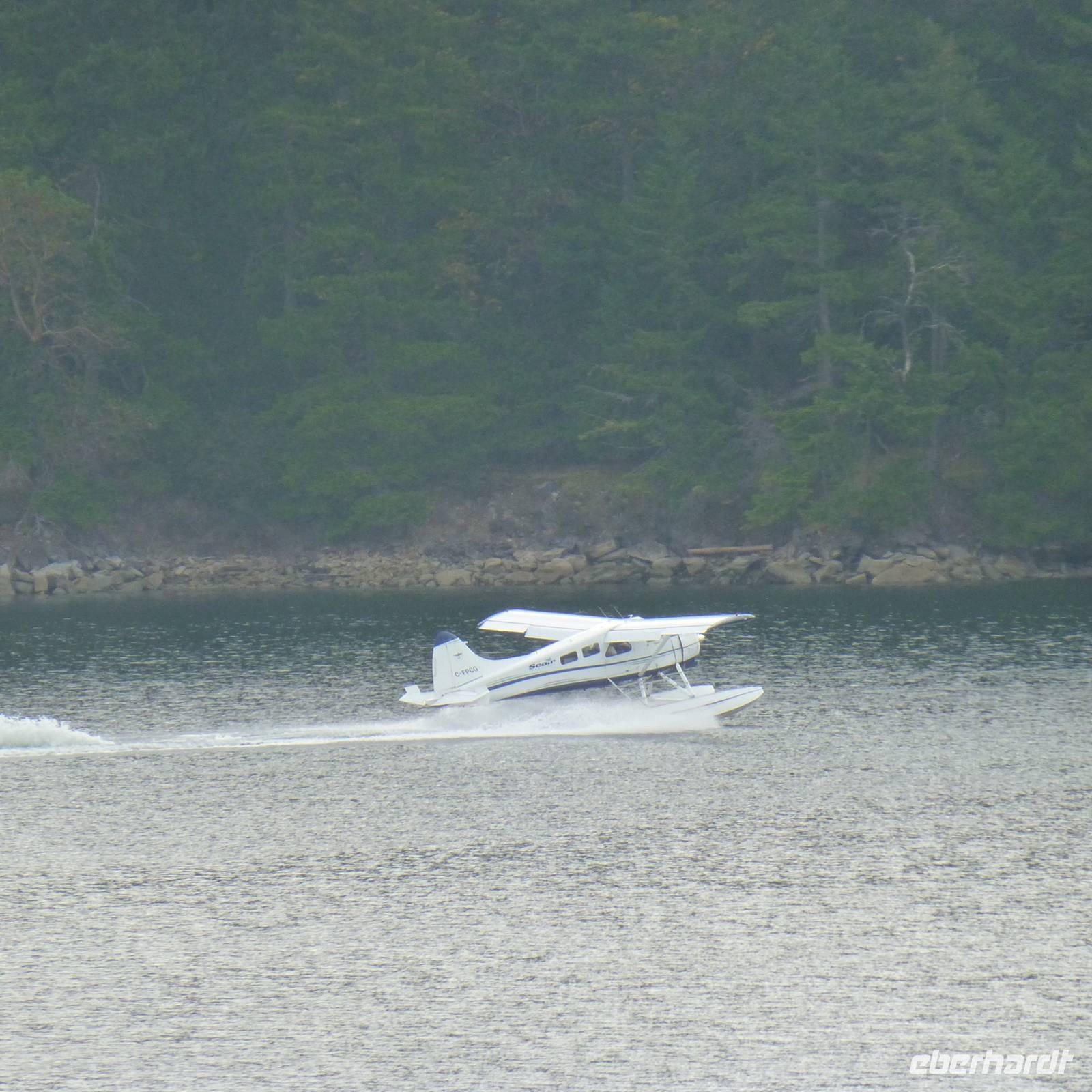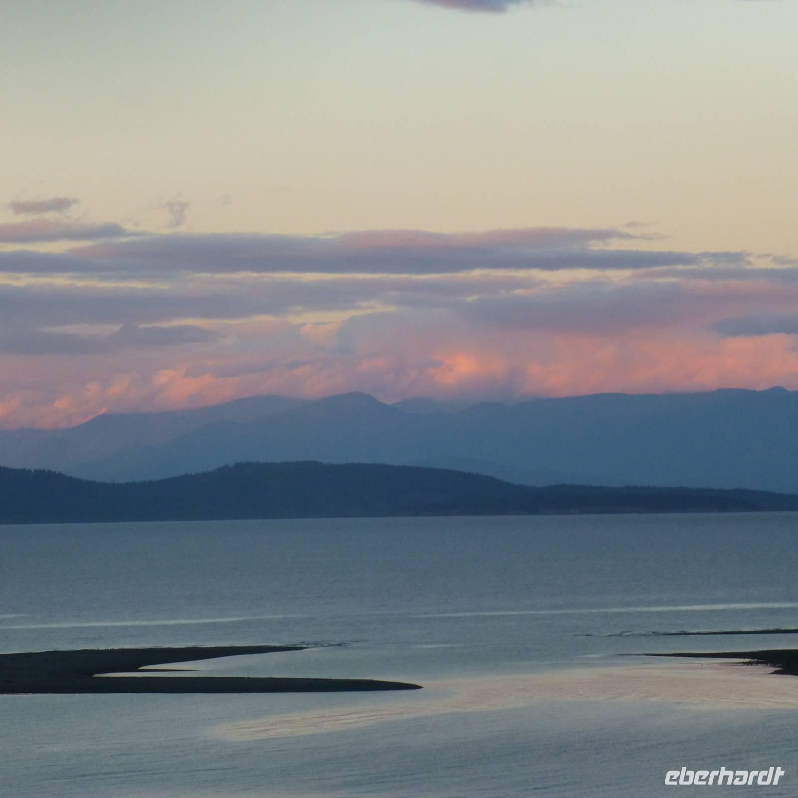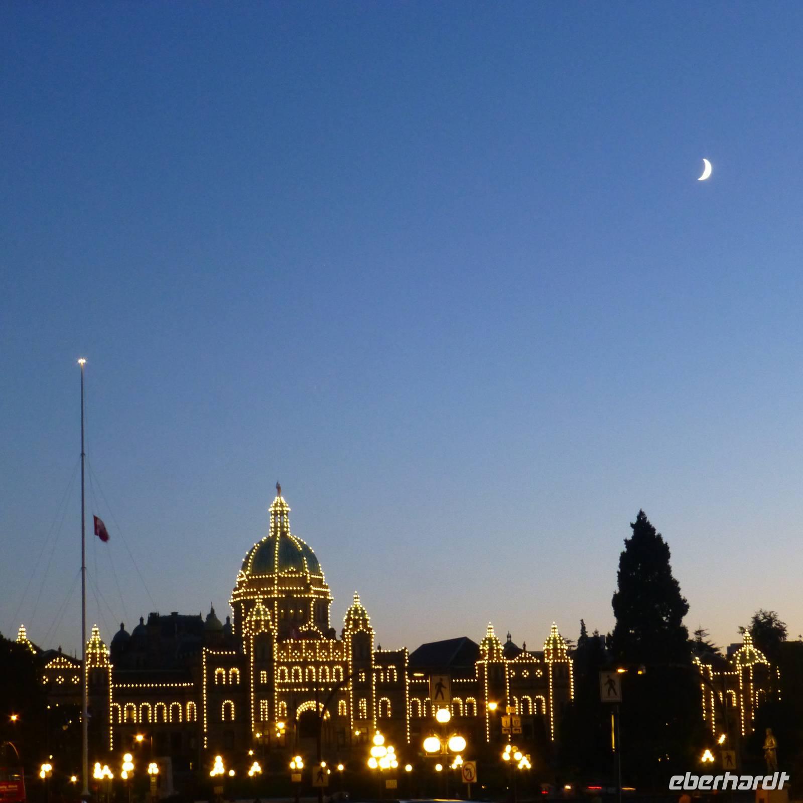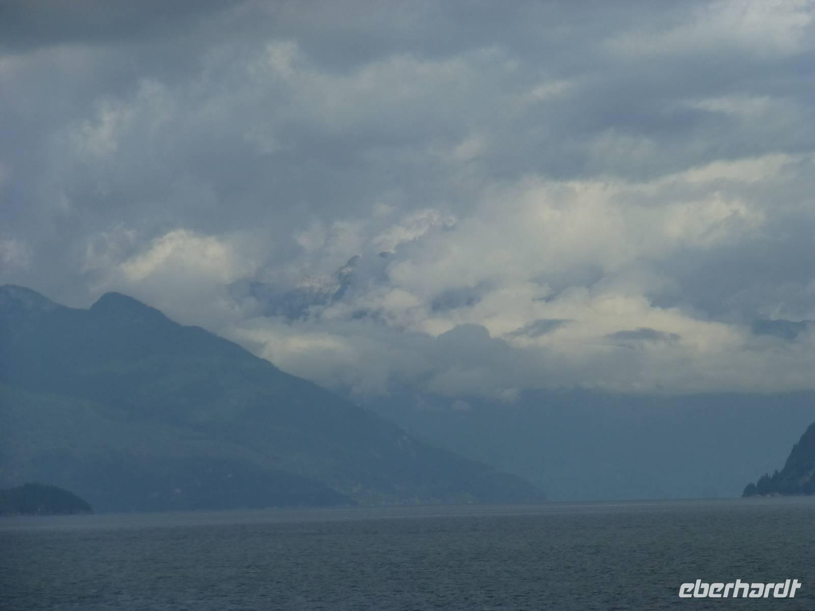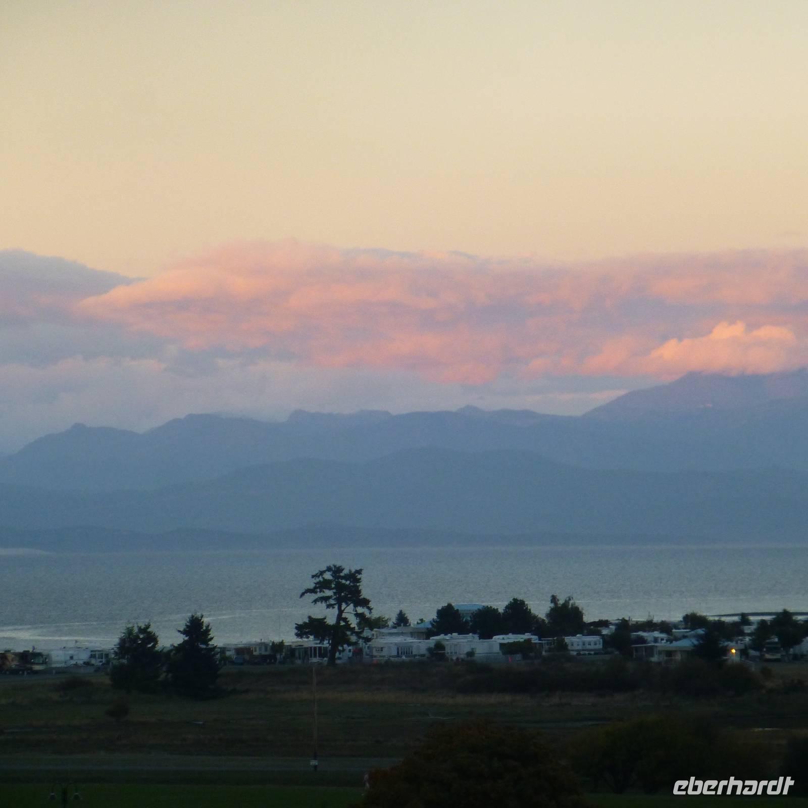 Heute stand eine lange Fahrt bevor. Bei schönem Wetter mit blauer Himmel und Sonnenschein fuhren wir 411km nach Tsawassen zur Fähre nach Vancouver Island. Wir erreichten Korumeus - die letzte Stadt des Obstanbaus. Auch hier gab es viele Obststände. Unsere weitere Reise führte uns hinein in die Kaskadenberge nach Hedley, die frühere Goldstadt. Auch jetzt kann man in den Flüssen noch Gold waschen. Weiter ging es nach Princeton. Diese Stadt besitzt eines der größten Sägewerke Kanadas. Auch der Roter Oker -rote Farbe - wird dort noch abgebaut. Auf einer sehr kurvenreichen Straße fuhren wir bis auf 1300 m Höhe. Durch den Manninge Park - benannt nach einem Premierminister - erreichten wir das Ski Gebiet. In diesem Naturbelassenen Park wurden zu den Winterspielen in Vancouver etliche Laster mit Schnee nach Vancouver gefahren. In der Manning Lodge legten wir eine Pause ein. Endlich konnten die begehrten Bärenglocken gekauft werden. Wir fuhren über den Allision Pass 1290 m weiter nach Hope. Am Fräserfluss befand sich eine schöne Parkanlage mit verschiedenen geschnitzten Figuren. Es wurde wieder etwas bergig. Die Kaskadenberge begleiten uns wieder. Das Tal wird immer breiter und auch der Fräserfluss breitet sich aus. Bald sehen wir rechts schon die Küstenberge. Wir erreichen den Fährhafen in Twarwansen und konnten sofort auf die Fähre nach Vancouver Island. Als wir los fuhren war alles im Nebel. Doch dann lichtete er sich und wir hatten einen schönen Blick auf die Golf Inseln. Ein Stück wurden wir sogar von Robben begleitet. Die Überfahrt dauert fast 2 Stunden bis nach Schwarz Bay. Wir erreichten unser Hotel in Viktoria und nutzten die Zeit bis zum Abendessen für die ersten Fotos. Das Restaurant befand sich direkt am Hafen. Doch vorher besichtigten wir noch das Empire Hotel und bestaunten das schön beleuchtete Parlament. Nach dem Abendessen kehrten wir noch in einem urigen Pub ein.