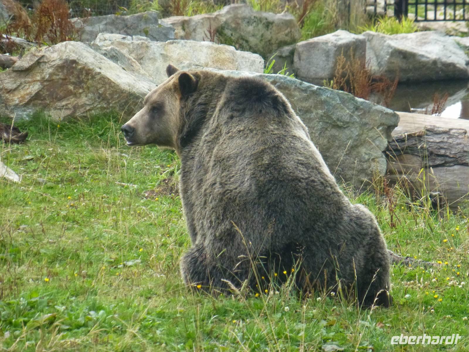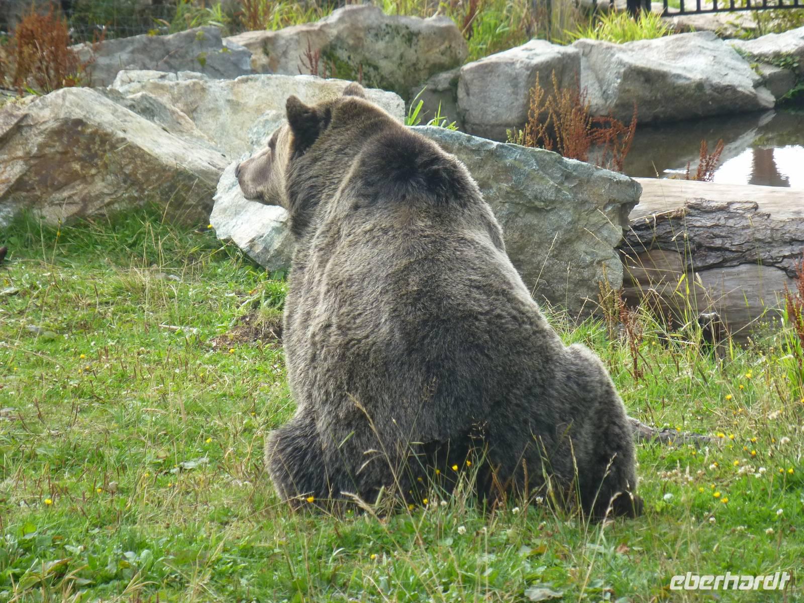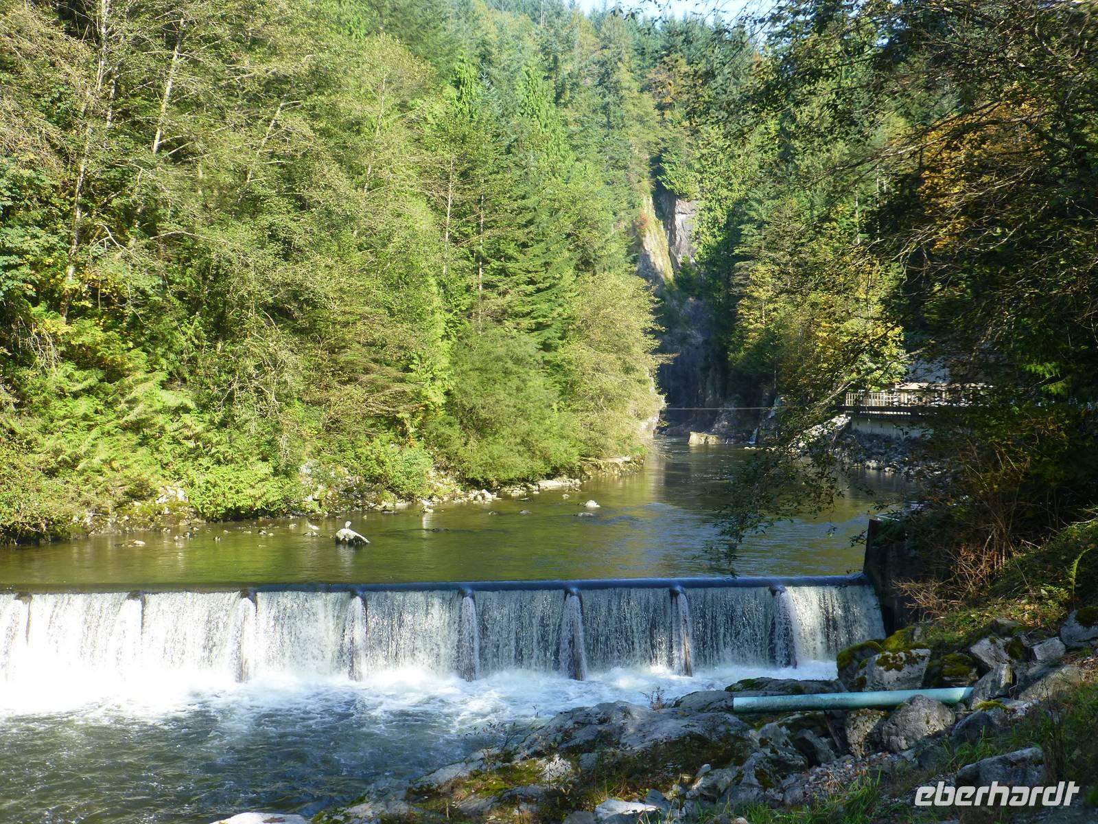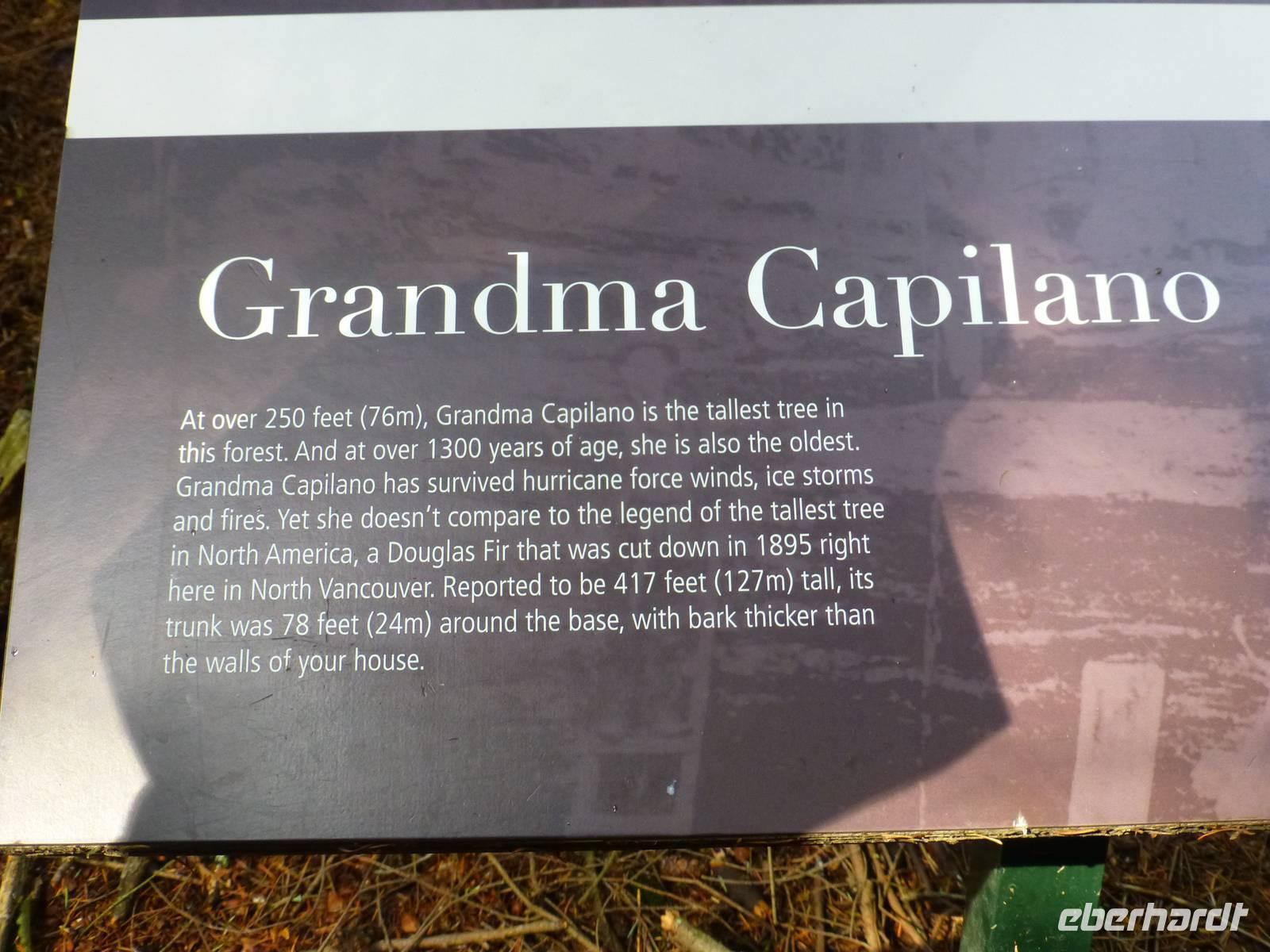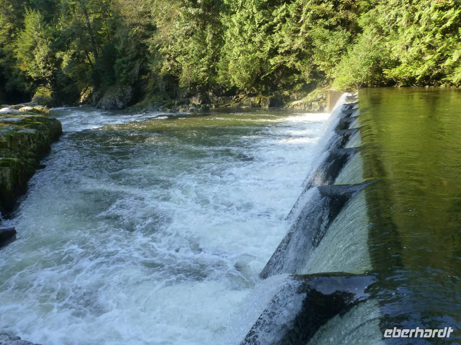 Der heutige Ausflug führte uns in den Norden von Vancouver. Doch erst fuhren wir in den Stanlay Park. An den Totempfählen der Westküsten Indianer legten wir einen Stopp ein und bestaunten die Skyline von Vancouver. Anschließend besuchten wir die Capilano Salmon Hatchery, eine Lachszuchtanstalt, wo der Lebenskreis der Lachse demonstriert wird. Über eine Lachstreppe überwinden Sie Lachse die Stromschnellen und springen Stromaufwärts. Im Anschluss daran besuchten wir den Capilano Suspension Bridge Park. Als erstes überquerten wir mutig die Capilano Suspension Bridge, die längste und höchste Fußgängerhängebrücke der Welt! Es schaukelte schon etwas. Auf dem Baumlehrpfad konnten wir auf sieben Hängebrücken entlang wandeln. Auch den neuen Cliffwalk liefen wir entlang. Anschließend fuhren wir mit Nordamerikas größter Luftseilbahn auf den Hausberg von Vancouver, den Grouse Mountain. Wir genießen bei einem Picknick den Blick über Vancouver. Auch wenn wir schon Schwarzbeeren gesehen haben, fehlte noch der Besuch der Grizzly Bären. Einer der Bären hatte sich im Wald schlafen gelegt. Doch der andere stellte sich gern als Fotomotiv zur Verfügung. Die Holzfäller Show Lumber Jacks' war lustig und amüsant.