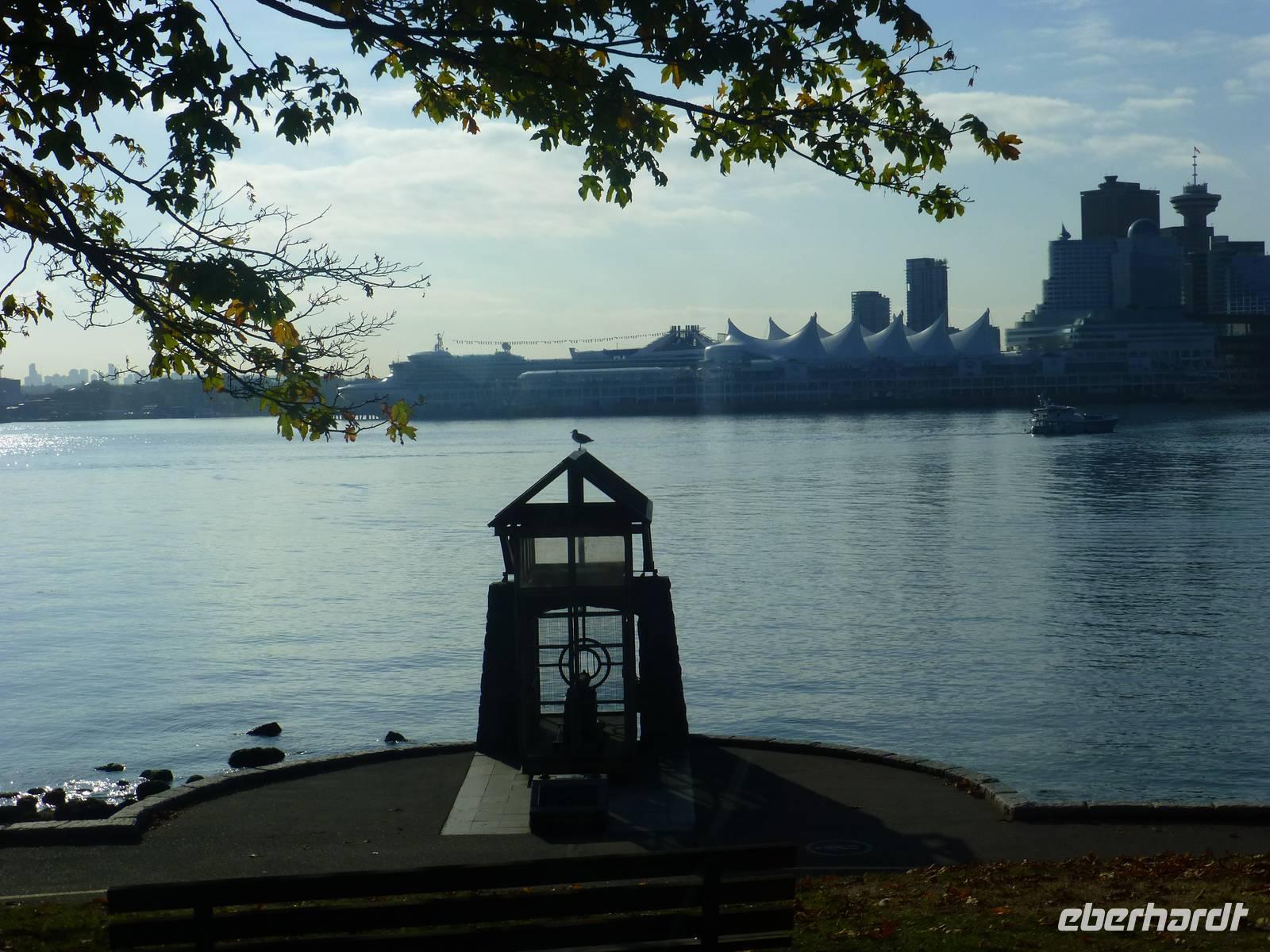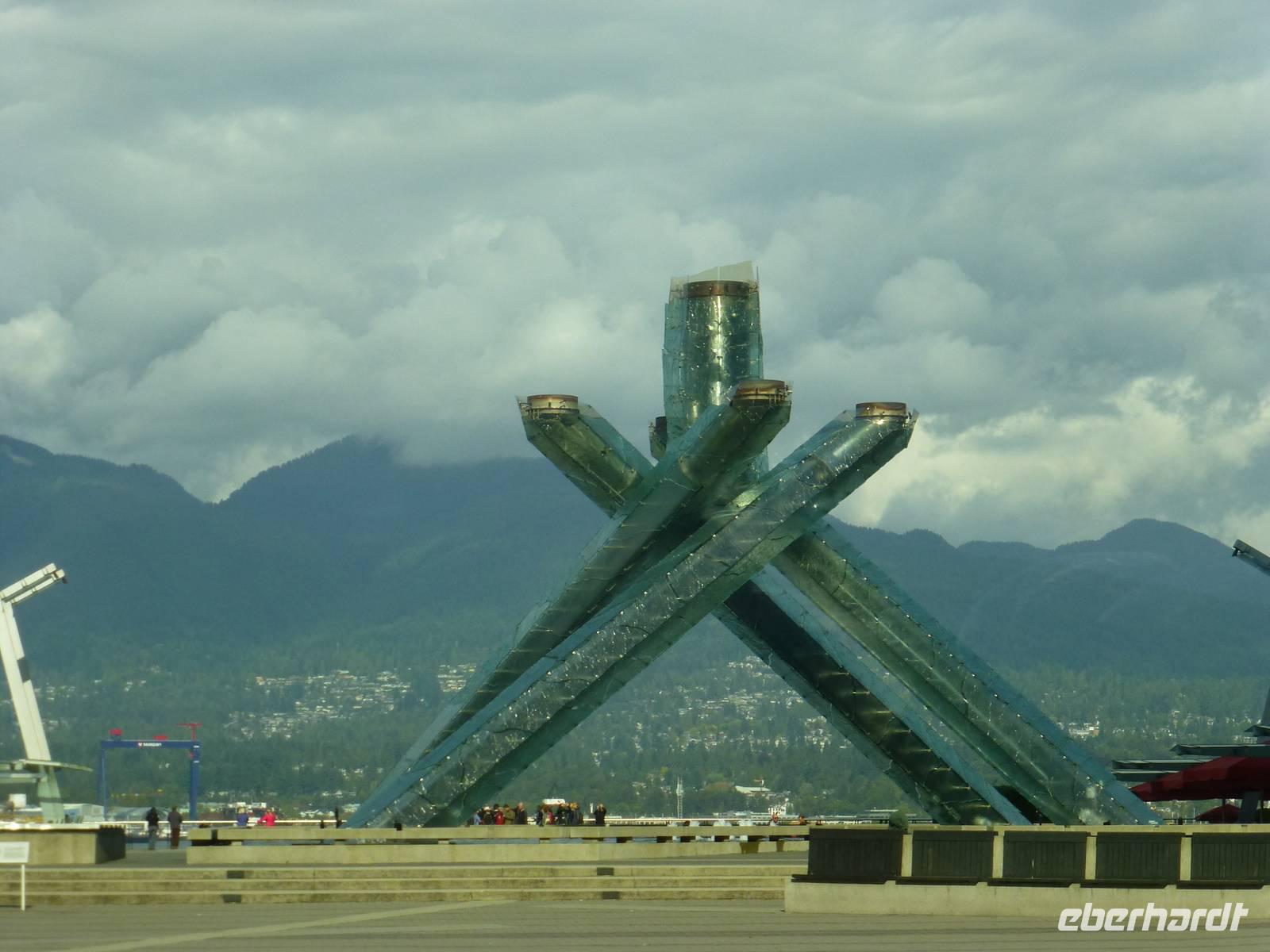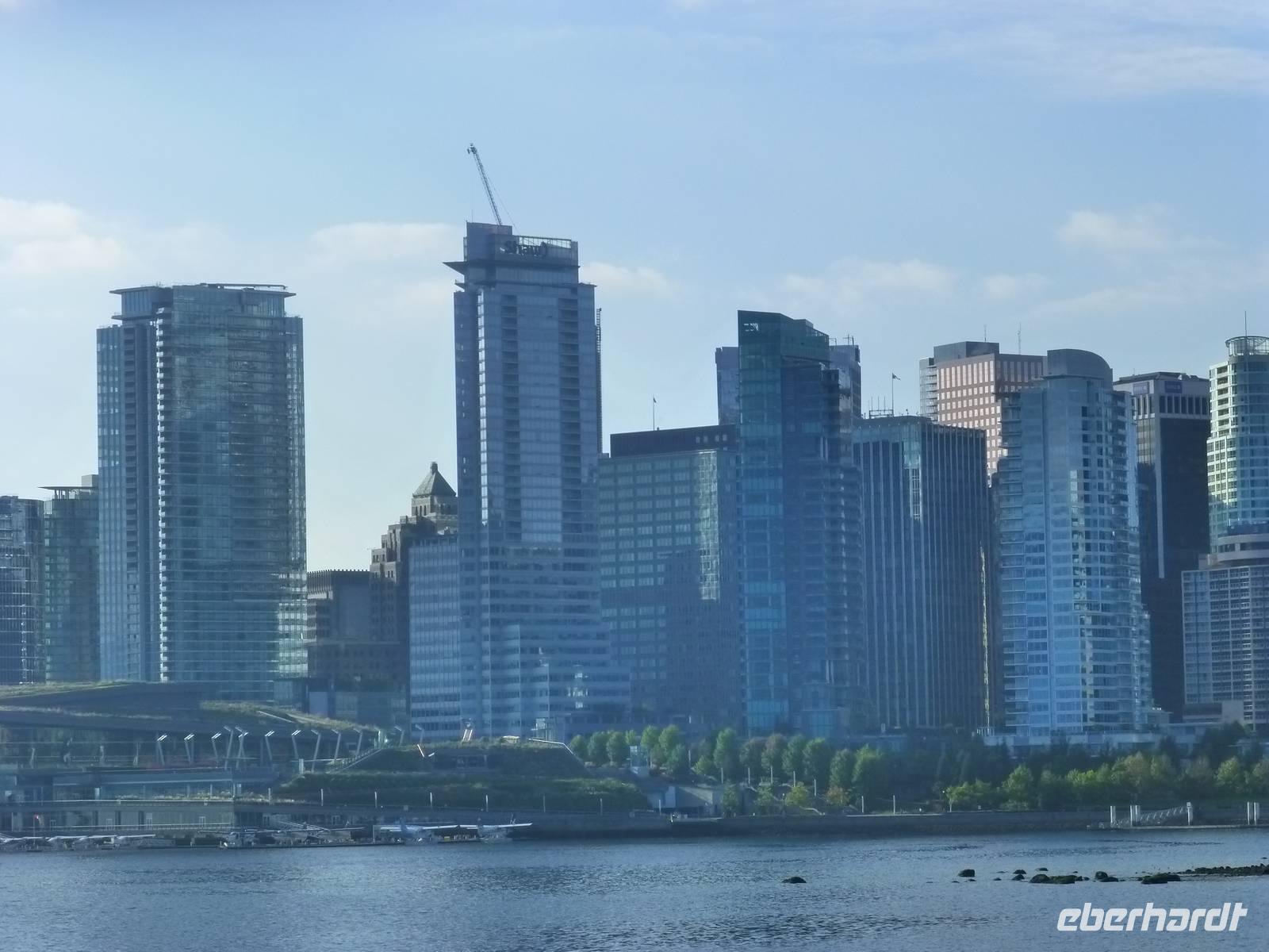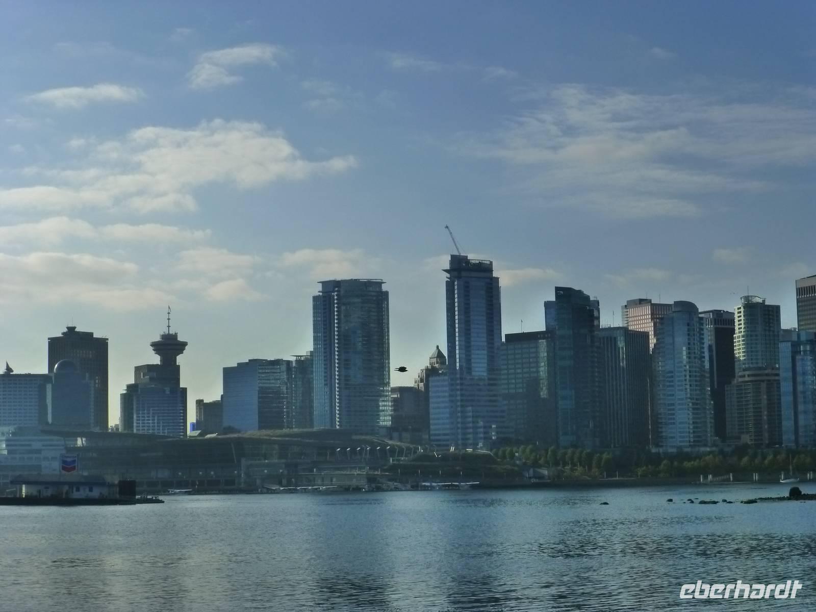 Am Vormittag legte unsere Fähre in Naimo nach Vancouver ab. Es war etwas windig und so saßen wir während der Fährüberfahrt unter Deck. Nach einer kurzen Fahrt durch den Stanley Park erreichten wir das Stadtzentrum. Durch Chinatown hindurch fuhren wir nach Gastown, den ältesten Stadtteil. Dem Namensgeber „Gassy Jack" ist auch in einem Denkmal gewidmet. Wir besuchten die berühmte Steam Clock. Die Uhr wird mit einer Dampfmaschine betrieben und stößt jede viertel Stunde eine Melodie durch die dampfenden Pfeifen aus. Unser nächstes Ziel ist der Canada Place, wo 2010 das olympische Feuer brannte und die Olympiasieger geehrt wurden. Gleichzeitig legen hier die großen Kreuzfahrtschiffe an und ab. Unser letztes Ziel war Granville Island, ein belebtes Künstlerviertel, mit vielen Geschäften Galerien und Restaurants. Wir erreichten unser Hotel und nutzten die Zeit für einen Stadtbummel oder einen Spaziergang am Hafen. Den Tag ließen wir auch dort ausklingen, den Anett lud uns zu Ihrem Geburtstag zu einem Whisky ein.
