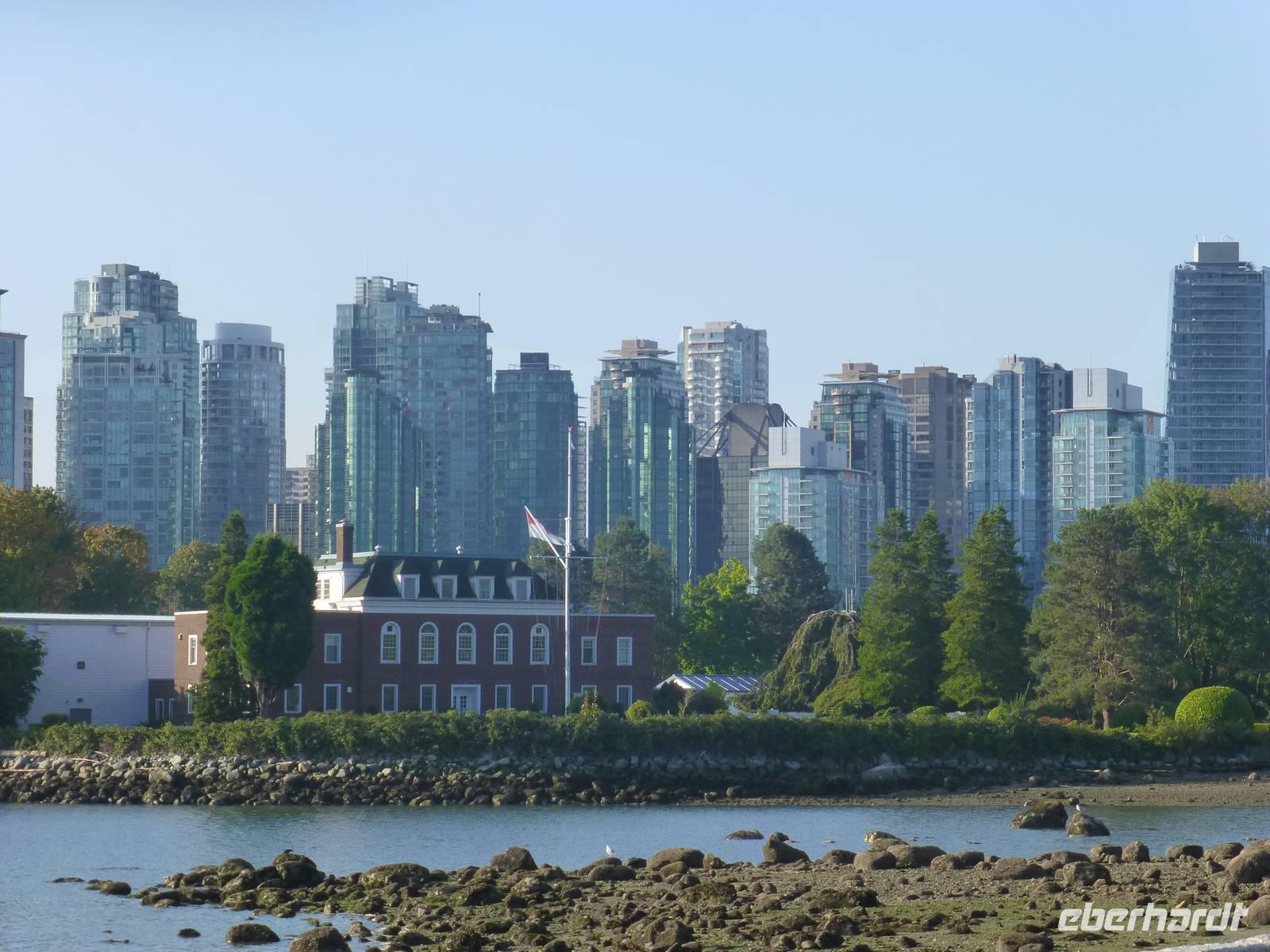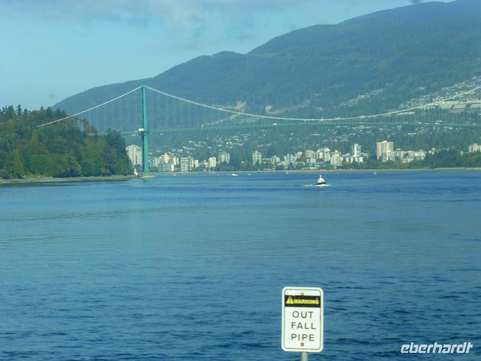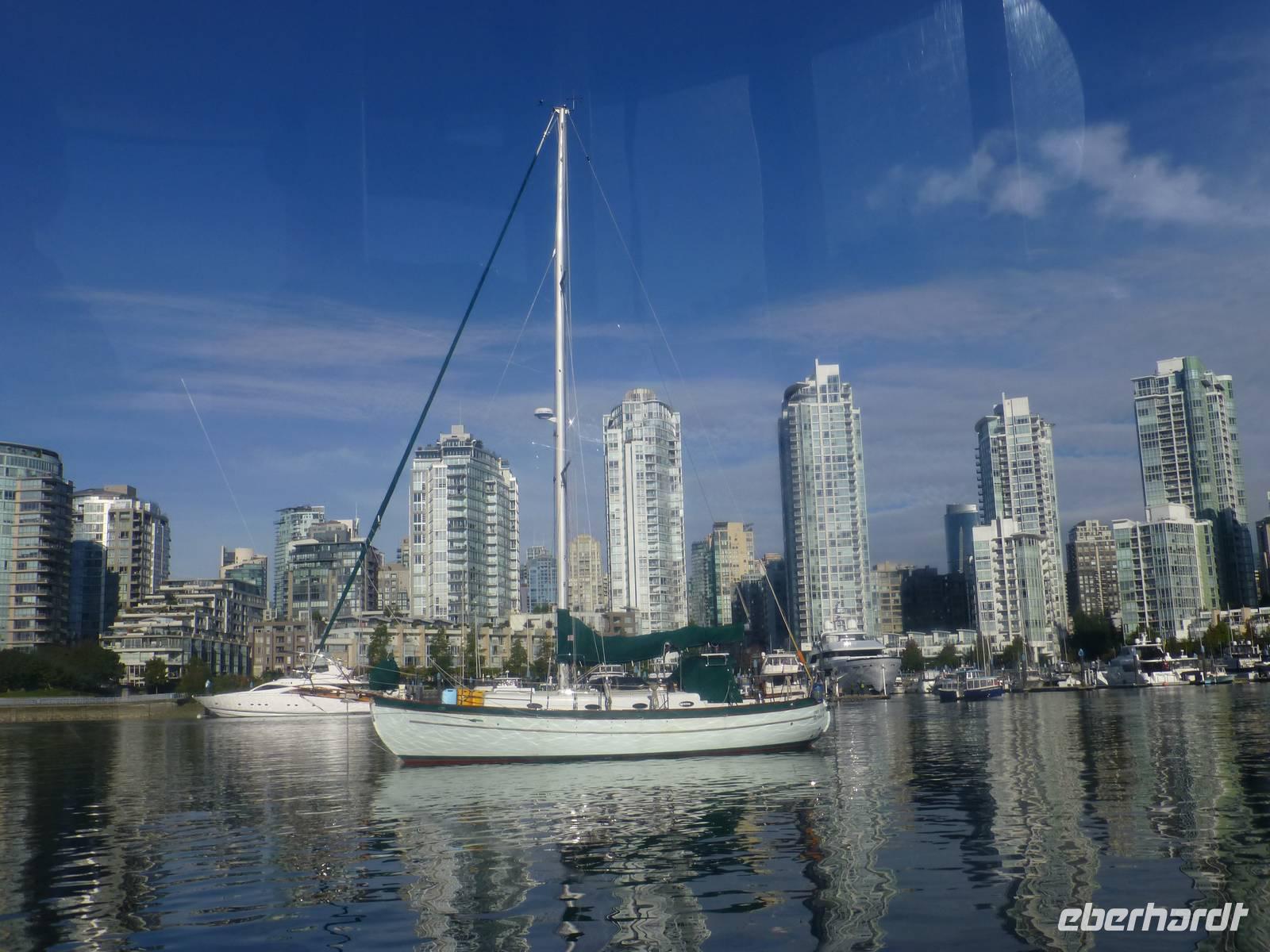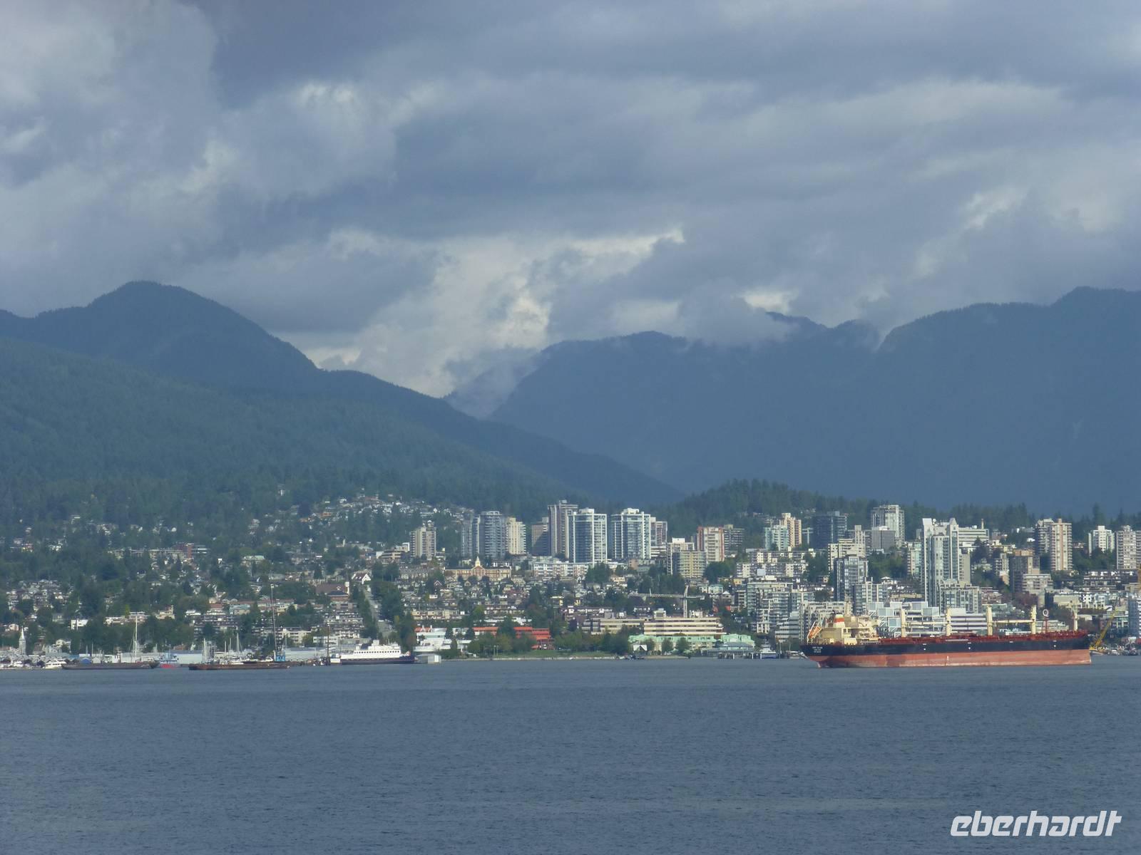 Am Vormittag legte unsere Fähre in Naimo nach Vancouver ab. Es war etwas windig und so saßen wir während der Fährüberfahrt unter Deck. Nach einer kurzen Fahrt durch den Stanley Park erreichten wir das Stadtzentrum. Durch Chinatown hindurch fuhren wir nach Gastown, den ältesten Stadtteil. Dem Namensgeber „Gassy Jack" ist auch in einem Denkmal gewidmet. Wir besuchten die berühmte Steam Clock. Die Uhr wird mit einer Dampfmaschine betrieben und stößt jede viertel Stunde eine Melodie durch die dampfenden Pfeifen aus. Unser nächstes Ziel ist der Canada Place, wo 2010 das olympische Feuer brannte und die Olympiasieger geehrt wurden. Gleichzeitig legen hier die großen Kreuzfahrtschiffe an und ab. Unser letztes Ziel war Granville Island, ein belebtes Künstlerviertel, mit vielen Geschäften Galerien und Restaurants. Wir erreichten unser Hotel und nutzten die Zeit für einen Stadtbummel oder einen Spaziergang am Hafen. Den Tag ließen wir auch dort ausklingen, den Anett lud uns zu Ihrem Geburtstag zu einem Whisky ein.