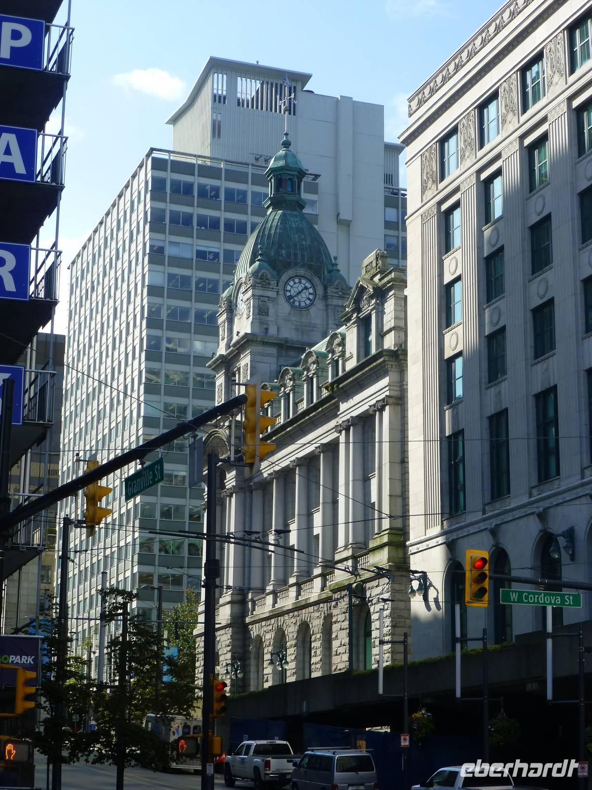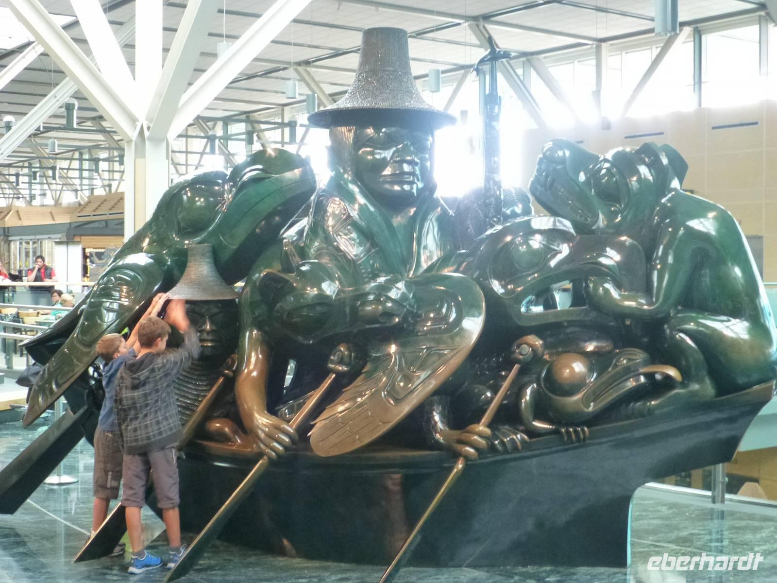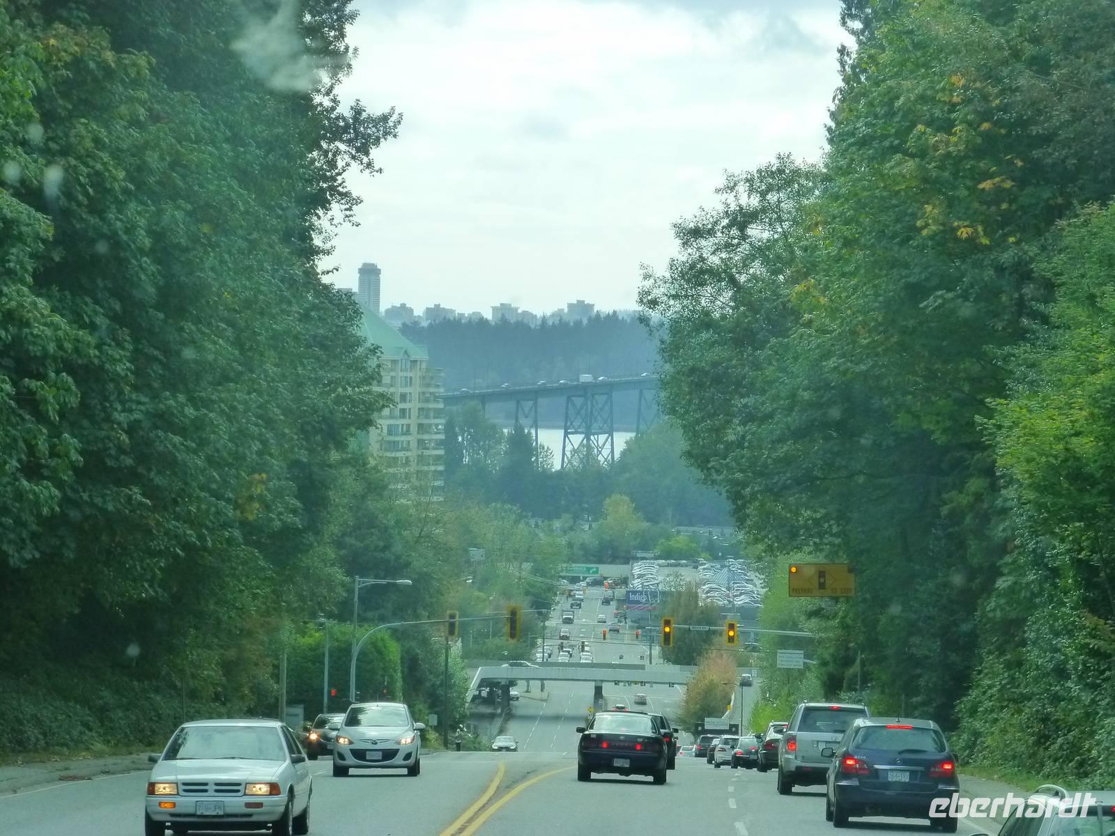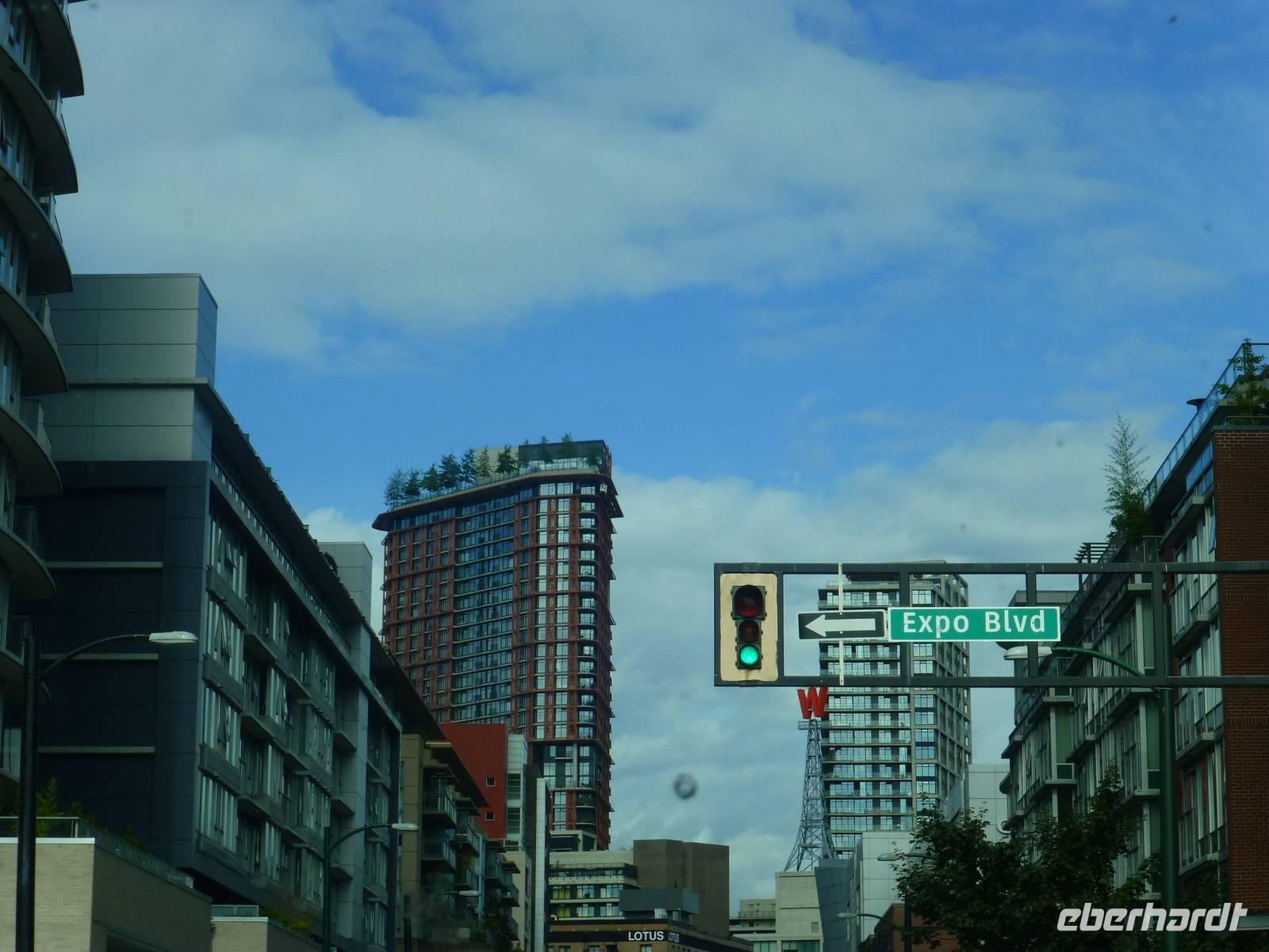 Am Vormittag legte unsere Fähre in Naimo nach Vancouver ab. Es war etwas windig und so saßen wir während der Fährüberfahrt unter Deck. Nach einer kurzen Fahrt durch den Stanley Park erreichten wir das Stadtzentrum. Durch Chinatown hindurch fuhren wir nach Gastown, den ältesten Stadtteil. Dem Namensgeber „Gassy Jack" ist auch in einem Denkmal gewidmet. Wir besuchten die berühmte Steam Clock. Die Uhr wird mit einer Dampfmaschine betrieben und stößt jede viertel Stunde eine Melodie durch die dampfenden Pfeifen aus. Unser nächstes Ziel ist der Canada Place, wo 2010 das olympische Feuer brannte und die Olympiasieger geehrt wurden. Gleichzeitig legen hier die großen Kreuzfahrtschiffe an und ab. Unser letztes Ziel war Granville Island, ein belebtes Künstlerviertel, mit vielen Geschäften Galerien und Restaurants. Wir erreichten unser Hotel und nutzten die Zeit für einen Stadtbummel oder einen Spaziergang am Hafen. Den Tag ließen wir auch dort ausklingen, den Anett lud uns zu Ihrem Geburtstag zu einem Whisky ein.