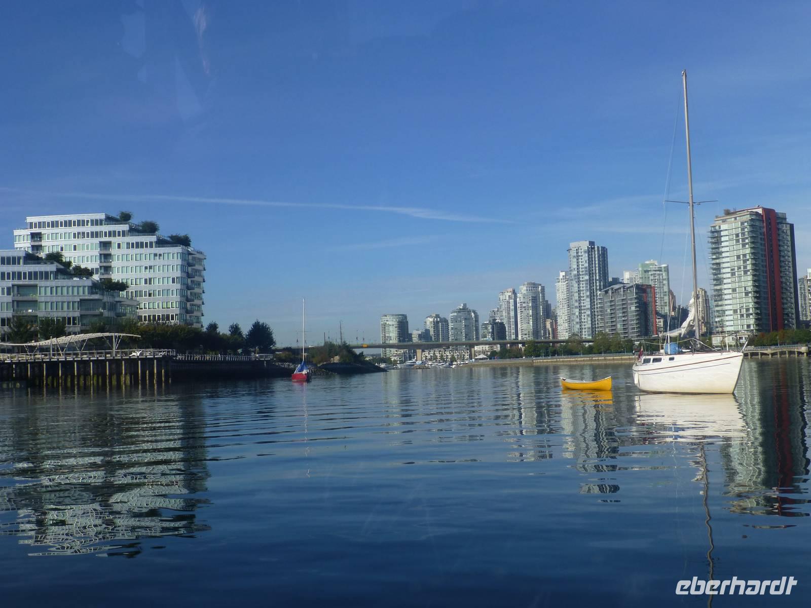 Bis zur Abreise hatten wir noch etwas Zeit für eigene Entdeckungen. Einige unternahmen einen Spaziergang zum Vancouver Tower und konnten bei schönem Sonnenschein den Blick über die Stadt bis hin zu den Bergen genießen. Andere fuhren auf dem toten Nebenarm mit einem der kleinen Boote. Es war eine sehr schöne Fahrt, wobei sich die Häuser im Wasser wiederspiegelten. Nun hieß es Abschied nehmen. Der Bus brachte uns zum Flughafen. Obwohl unsere Maschine etwas Verspätung hatte landeten wir fast pünktlich in Frankfurt. Unsere Anschlussflüge und die Transferfahrzeuge brachten uns sicher nach Hause.