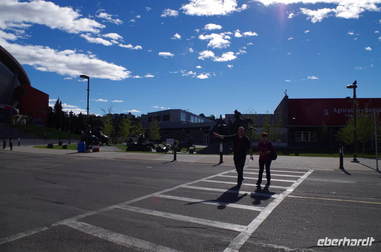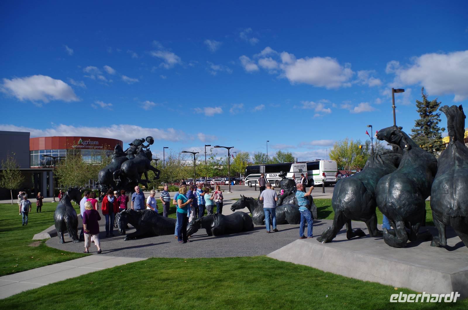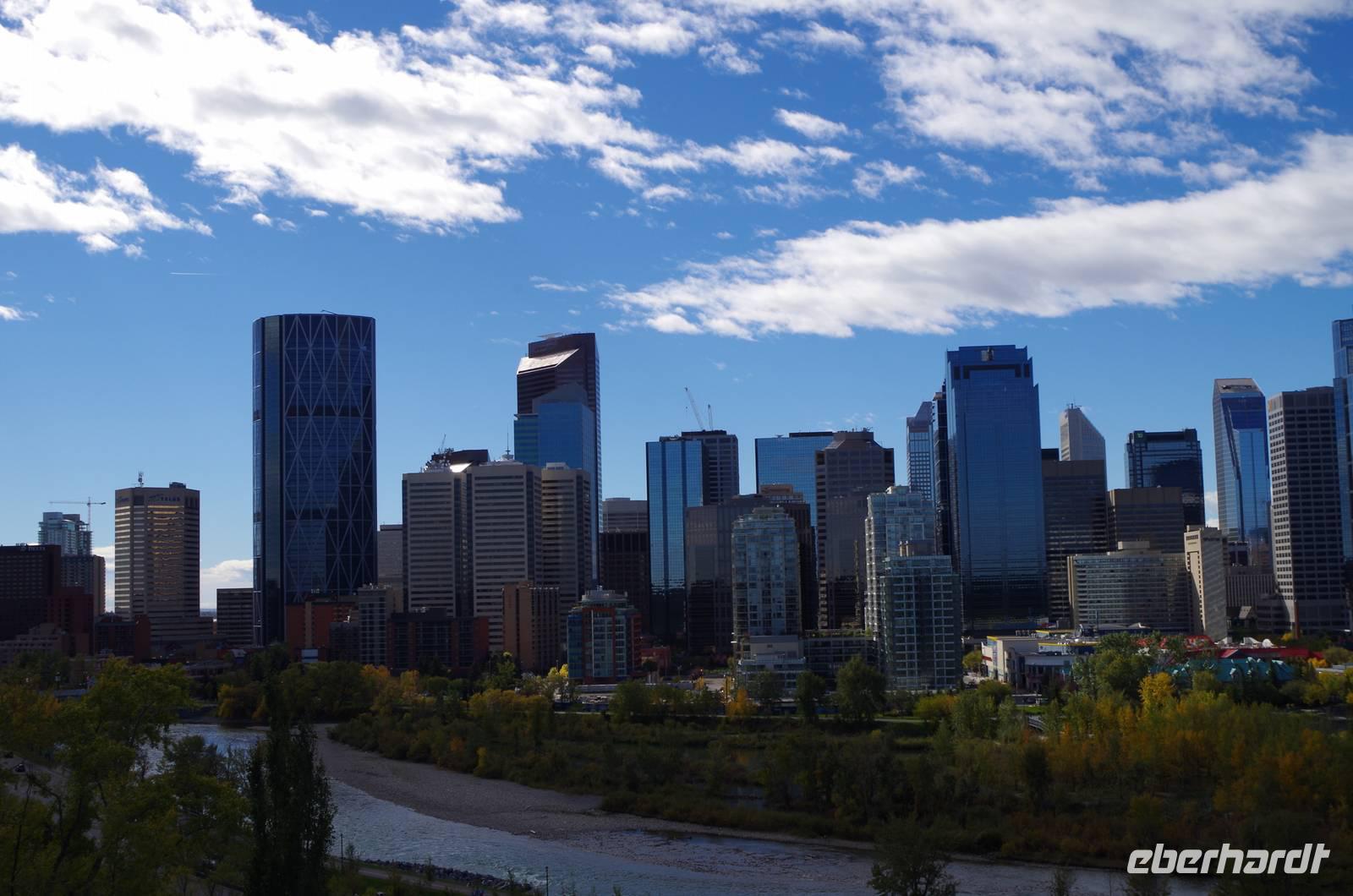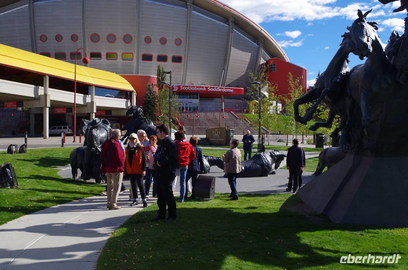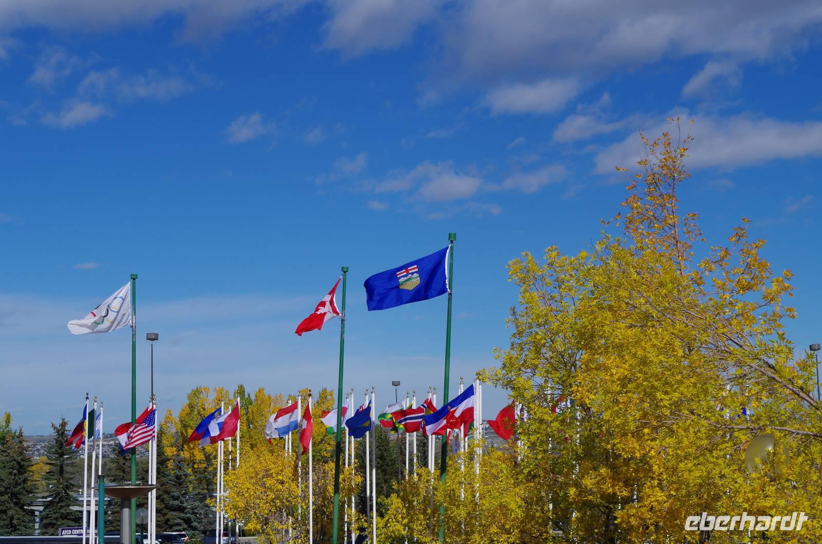 Mit unserem Transfer erreichten alle pünktlich die Flughäfen in Dresden, Leipzig und Berlin. In Frankfurt trafen wir auf den Rest unserer Reisegruppe und einige Gäste erhielten hier noch ihre Bordkarte nach Calgary. Der Flug verging ganz schnell, da man es kaum erwarten konnte, was von Kanda zu sehen.Der Service an Bord war sehr gut. Unser Stuart Charles kümmerte sich mit brittischem Charme liebevoll um uns. Am Nachmittag erreichten wir die ehemalige Olympia Stadt Calgery. Marion, unsere Reiseleiterin erwartete uns schon. Wir nutzten die Zeit für einen Spaziergang durch Calgary. Wir fahren in die Innenstadt und besuchten den Platz wo zu den Olympischen Winterspielen 1988 die Siegerehrungen stattfanden. Alle Medaillen Gewinner sind dort verewigt. Auch wenn die Geschäfte nicht lang geöffnet waren bummelten wir die Stephen Avenue entlang und besuchten den Devonian Garten. Eine schöne Anlage mit einem tropischen Garten, wo sich die Besucher erholen und entspannen können. Wir erreichen unser Hotel und sind froh unter die Dusche zu kommen. Ein gutes Buffet verwöhnte unseren Gaumen. Nach einer kleinen Vorstellungsrunde konnten wir uns endlich schlafen legen.