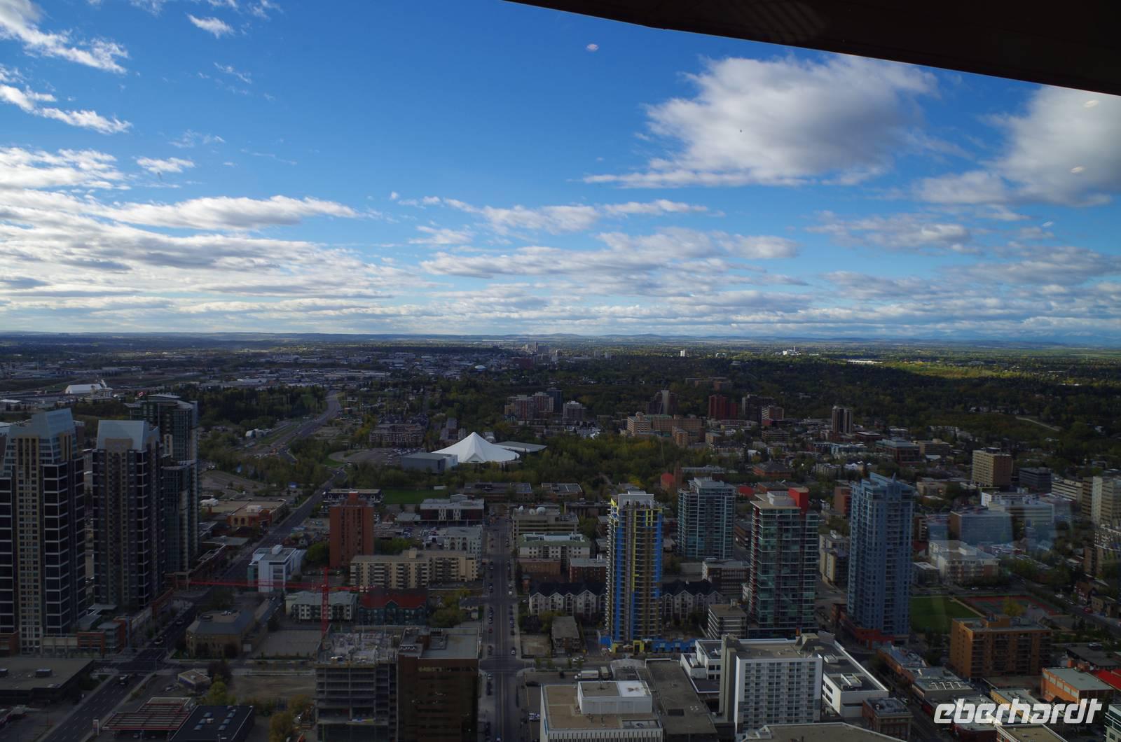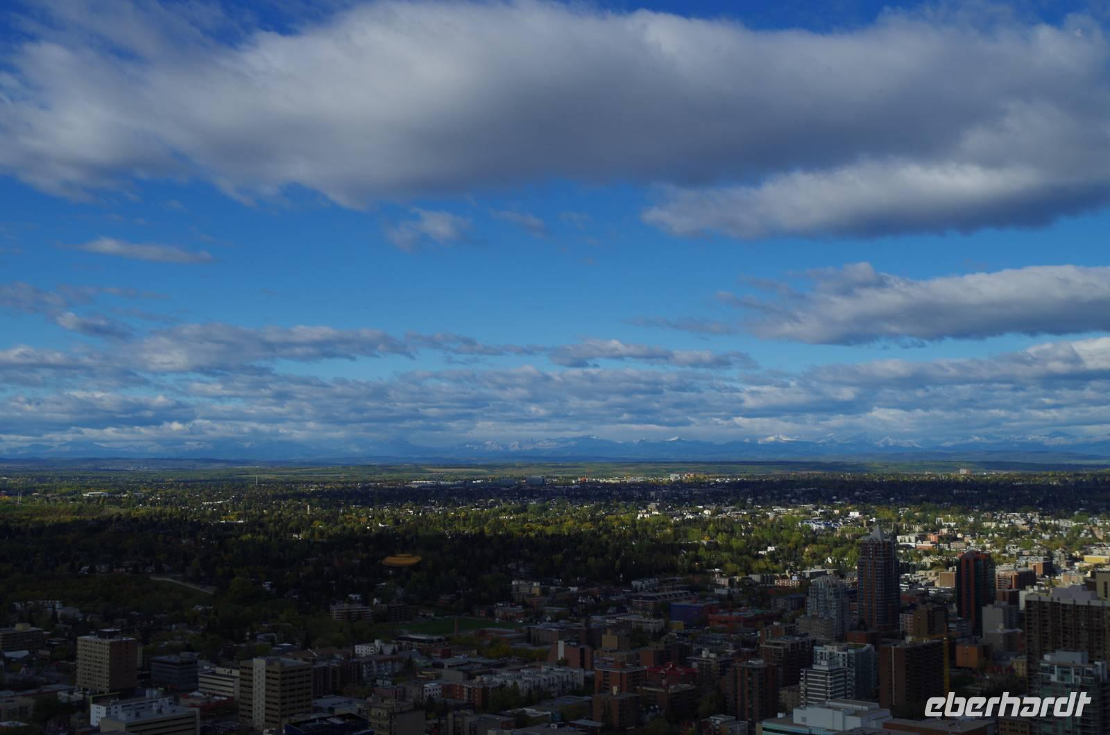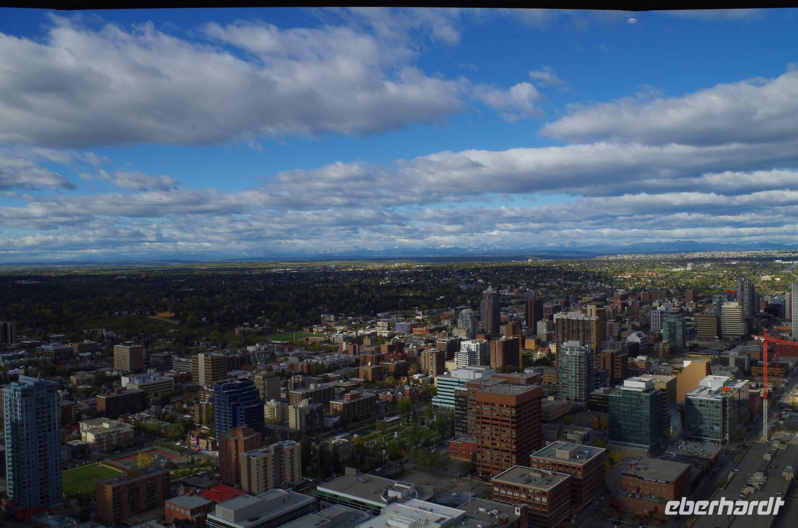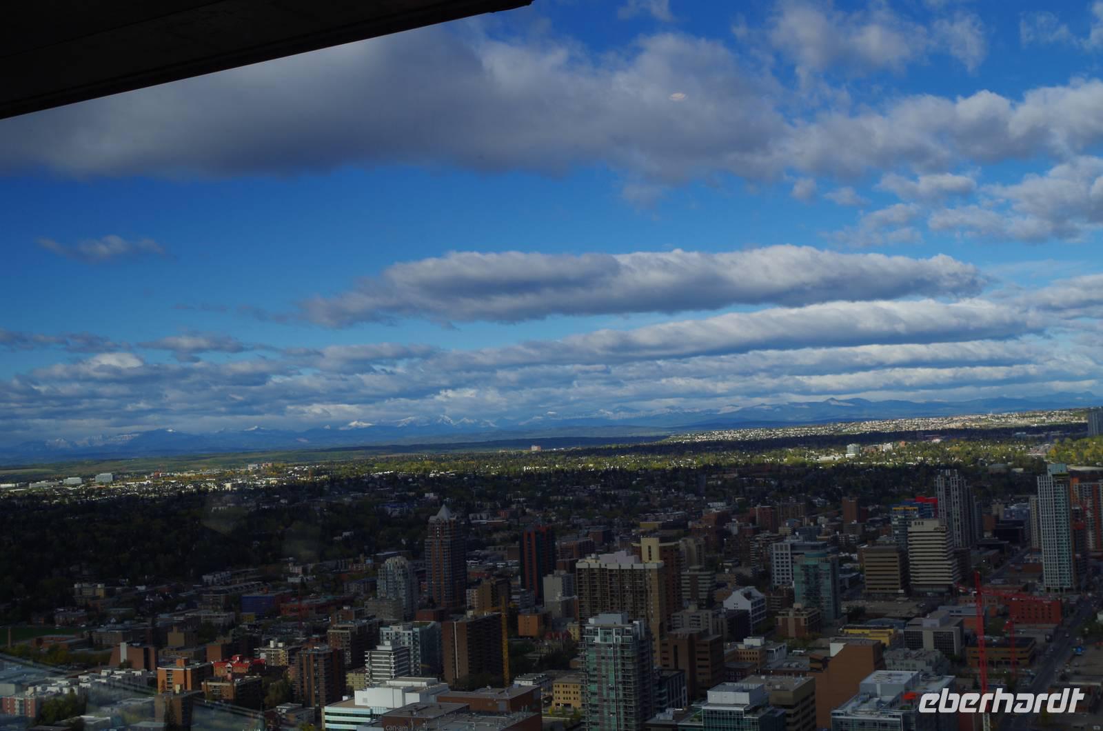 Mit unserem Transfer erreichten alle pünktlich die Flughäfen in Dresden, Leipzig und Berlin. In Frankfurt trafen wir auf den Rest unserer Reisegruppe und einige Gäste erhielten hier noch ihre Bordkarte nach Calgary. Der Flug verging ganz schnell, da man es kaum erwarten konnte, was von Kanda zu sehen.Der Service an Bord war sehr gut. Unser Stuart Charles kümmerte sich mit brittischem Charme liebevoll um uns. Am Nachmittag erreichten wir die ehemalige Olympia Stadt Calgery. Marion, unsere Reiseleiterin erwartete uns schon. Wir nutzten die Zeit für einen Spaziergang durch Calgary. Wir fahren in die Innenstadt und besuchten den Platz wo zu den Olympischen Winterspielen 1988 die Siegerehrungen stattfanden. Alle Medaillen Gewinner sind dort verewigt. Auch wenn die Geschäfte nicht lang geöffnet waren bummelten wir die Stephen Avenue entlang und besuchten den Devonian Garten. Eine schöne Anlage mit einem tropischen Garten, wo sich die Besucher erholen und entspannen können. Wir erreichen unser Hotel und sind froh unter die Dusche zu kommen. Ein gutes Buffet verwöhnte unseren Gaumen. Nach einer kleinen Vorstellungsrunde konnten wir uns endlich schlafen legen.