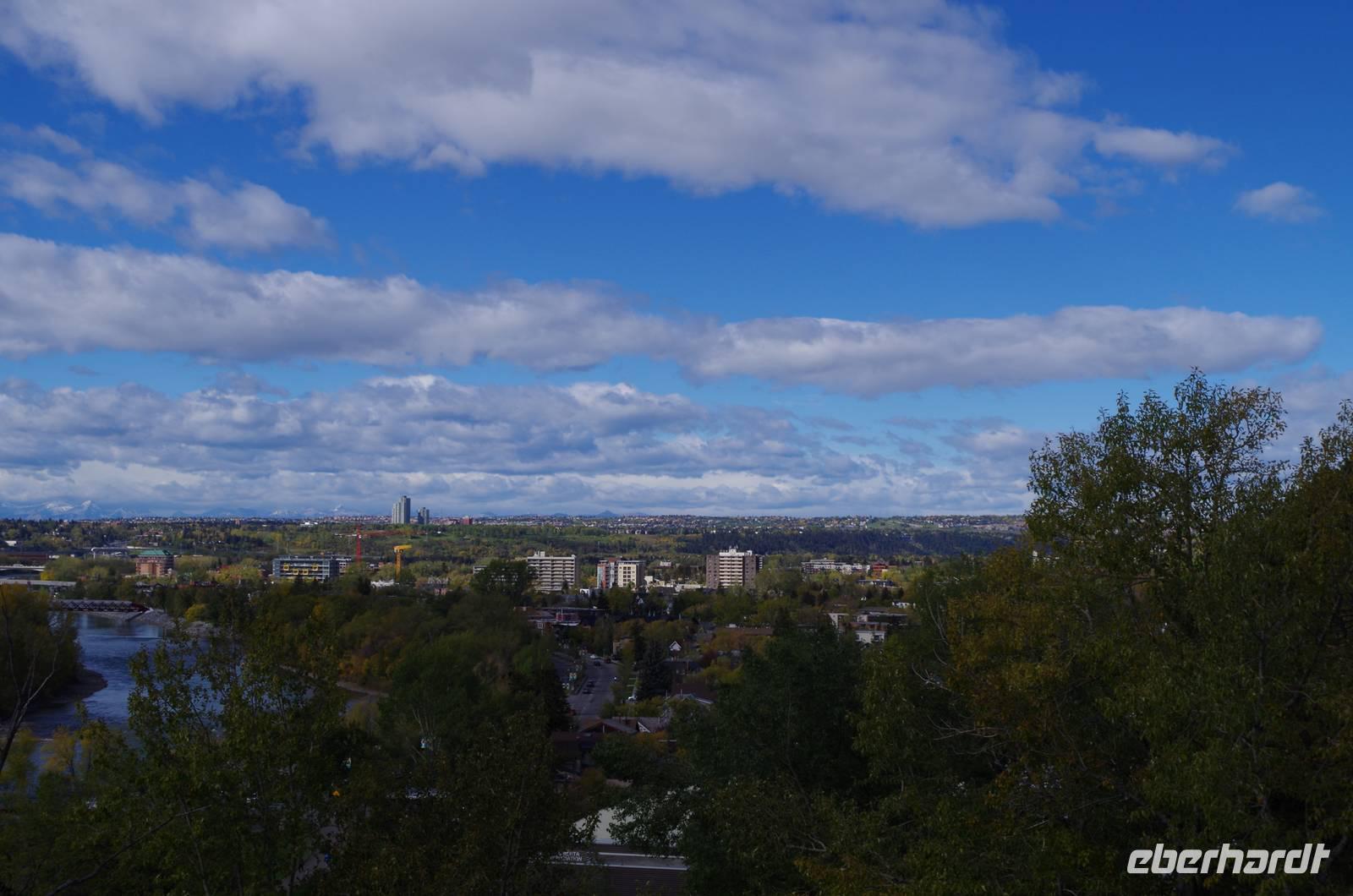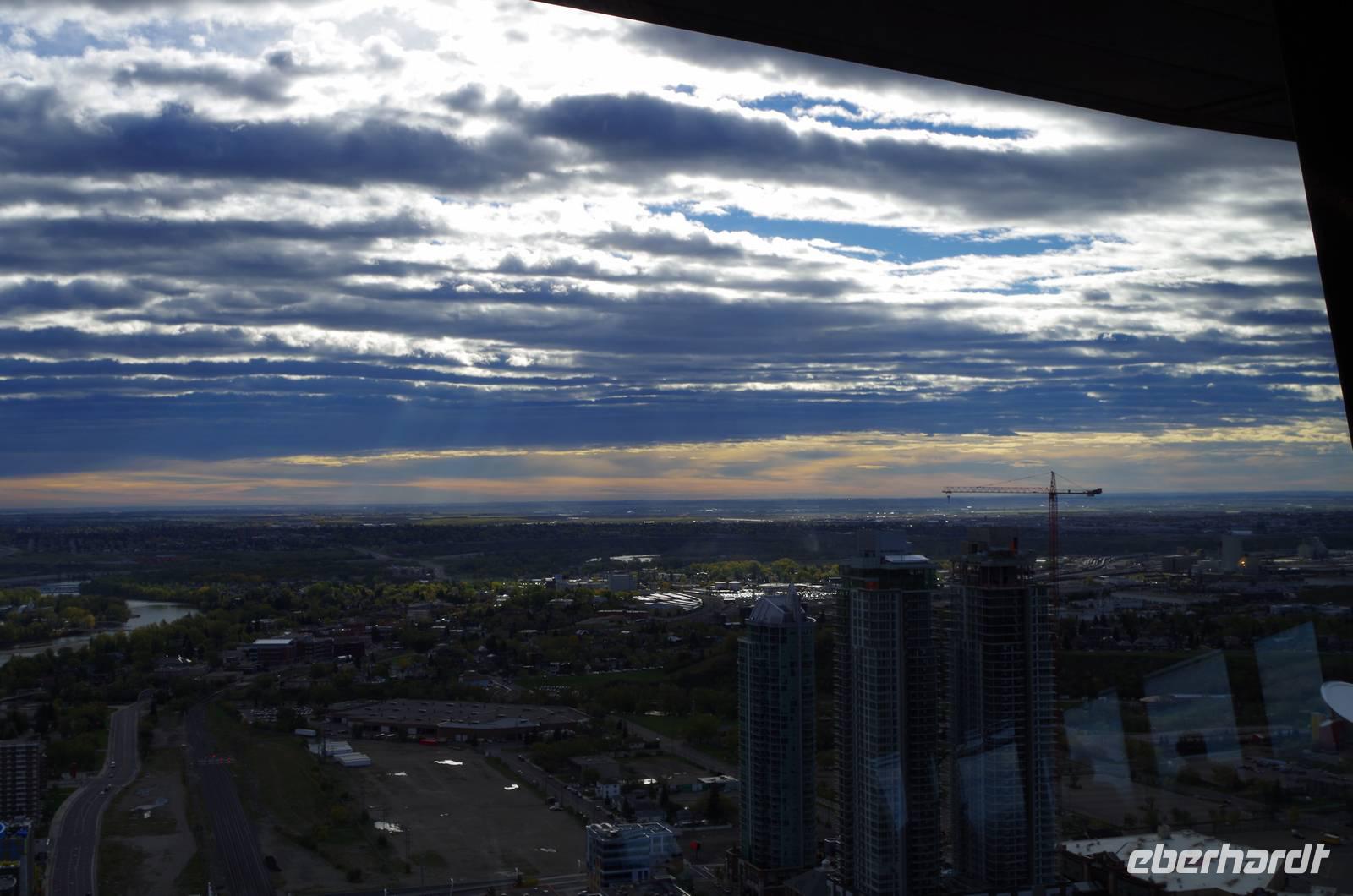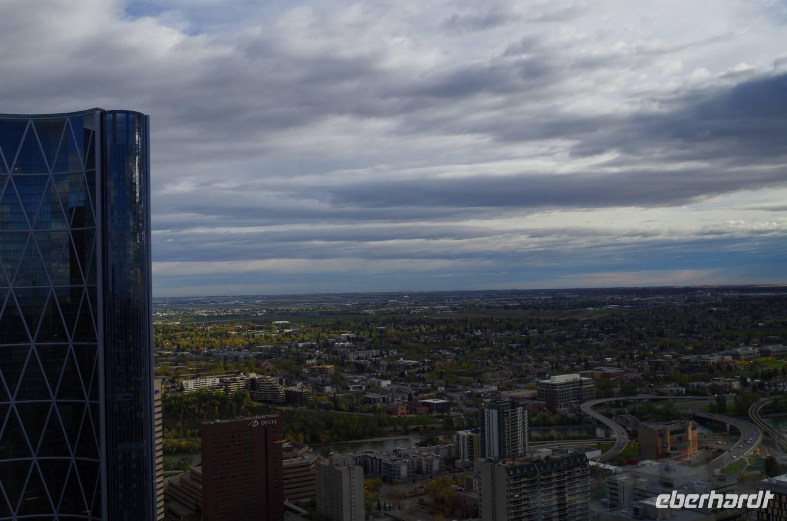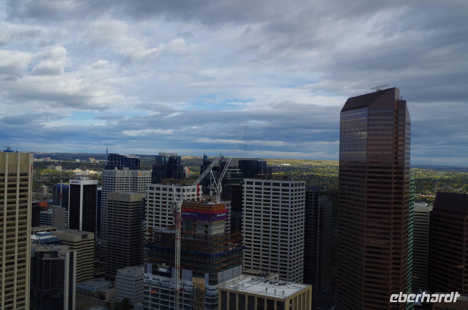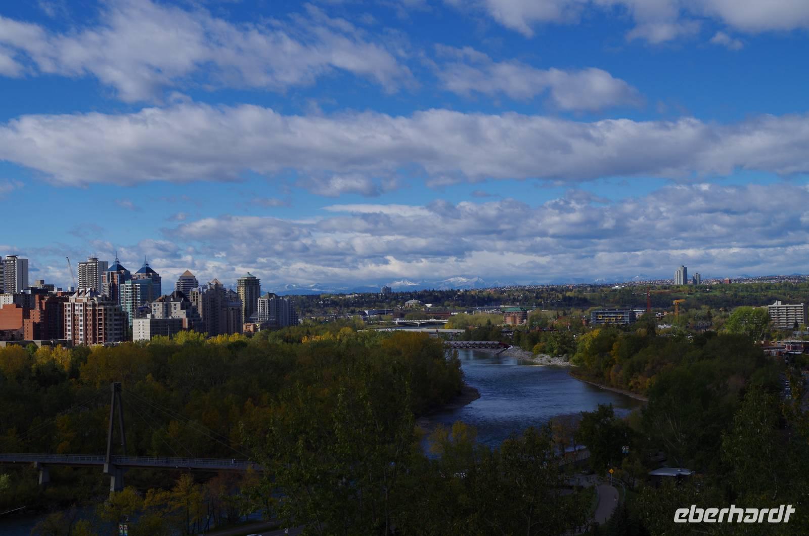 Mit unserem Transfer erreichten alle pünktlich die Flughäfen in Dresden, Leipzig und Berlin. In Frankfurt trafen wir auf den Rest unserer Reisegruppe und einige Gäste erhielten hier noch ihre Bordkarte nach Calgary. Der Flug verging ganz schnell, da man es kaum erwarten konnte, was von Kanda zu sehen.Der Service an Bord war sehr gut. Unser Stuart Charles kümmerte sich mit brittischem Charme liebevoll um uns. Am Nachmittag erreichten wir die ehemalige Olympia Stadt Calgery. Marion, unsere Reiseleiterin erwartete uns schon. Wir nutzten die Zeit für einen Spaziergang durch Calgary. Wir fahren in die Innenstadt und besuchten den Platz wo zu den Olympischen Winterspielen 1988 die Siegerehrungen stattfanden. Alle Medaillen Gewinner sind dort verewigt. Auch wenn die Geschäfte nicht lang geöffnet waren bummelten wir die Stephen Avenue entlang und besuchten den Devonian Garten. Eine schöne Anlage mit einem tropischen Garten, wo sich die Besucher erholen und entspannen können. Wir erreichen unser Hotel und sind froh unter die Dusche zu kommen. Ein gutes Buffet verwöhnte unseren Gaumen. Nach einer kleinen Vorstellungsrunde konnten wir uns endlich schlafen legen.