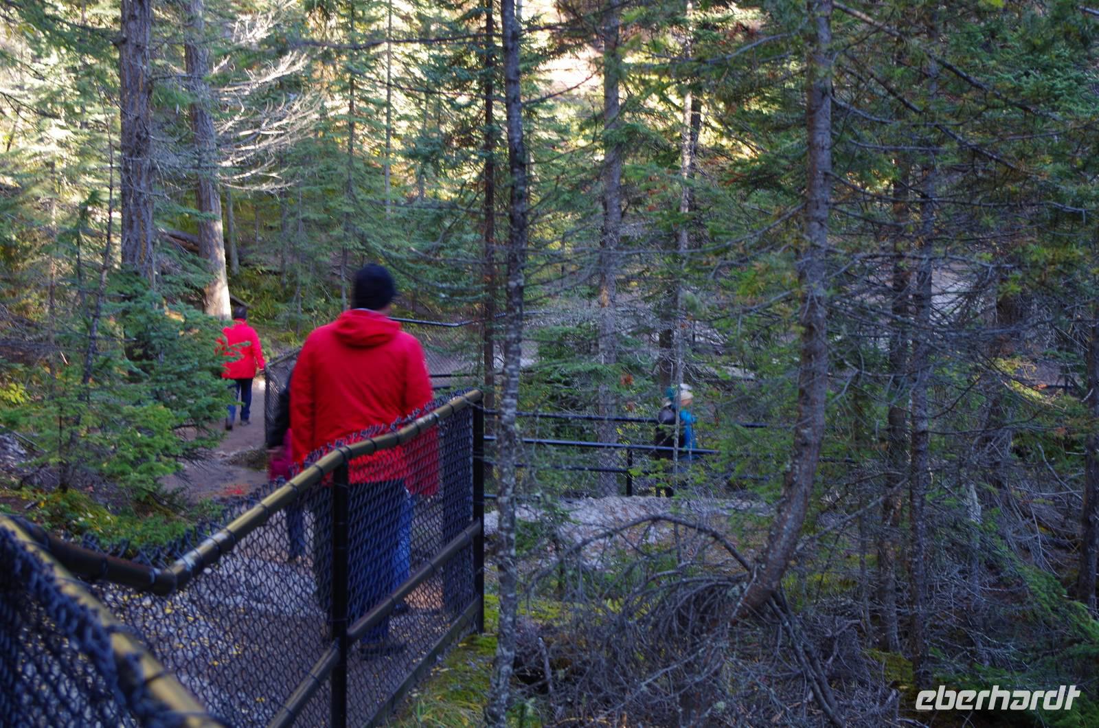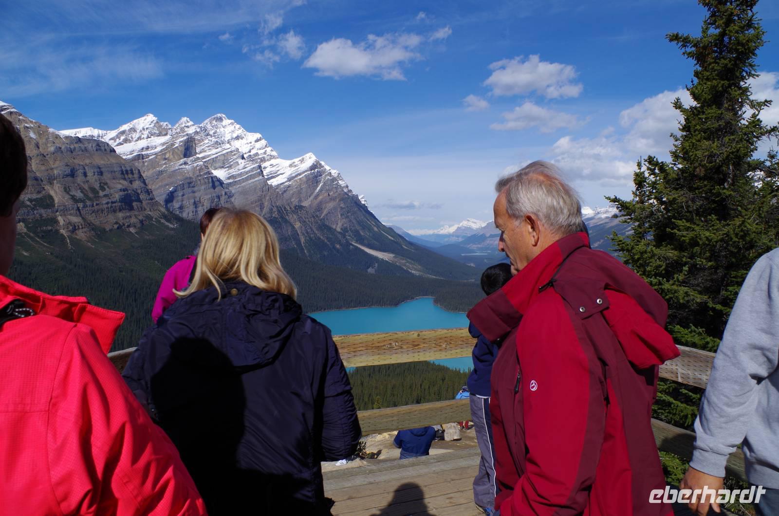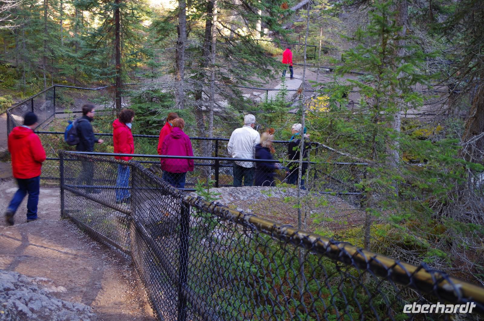 Unser Ausflug führte uns in den Banff Nationalpark. Wir unternahmen einen Spaziergang im Johnston Canyon zum unteren Wasserfall. Vorbei am Tempel Mountain erreichten wir über den Waschbeckensee und den Kicking Horse Pass1200m - den Spiraltunnel. Er wurde gebaut um die Steigungen zu minimieren. Wir hörten es donnert und wir hofften einen Zug zusehen. Wir hatten Glück. Ein einmaliges Schauspiel als der Zug aus einem Tunnel hinein fuhr und an einem anderen Tunnel wieder heraus. Alles sah aus wie auf einer Eisenbahnplatte. Weiter ging es in das Herz des Yoho Nationalpark in den kleinen Ort Field und an den Emerald Lake - Schmaragdsee. Die Bergkulisse und das Türkisblaue Wasser hatte uns begeistert. Ein besonderer Höhepunkt war der Besuch am Lake Louis - das meist fotographierte Motiv in Kanada. Nach einem Rundgang durch das Fairmont Chateau Lake Louise spazierten wir entlang des Sees. Viele Fotomotive erfreuten unser Gemüt. Besonders schön ist der Mount Victoria, dessen Gletscher weit bis an das Wasser reicht. Traumhafte Bergkulissen und klasklares Wasser - der Traum Kanadas und wir mittendrin.