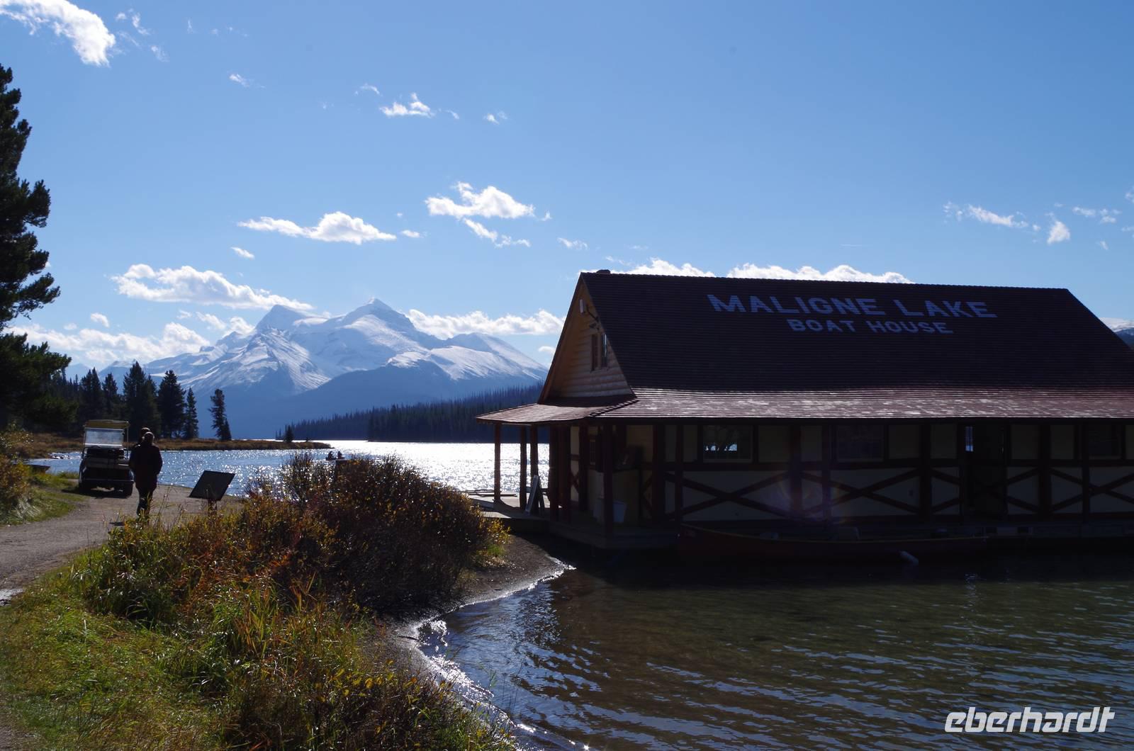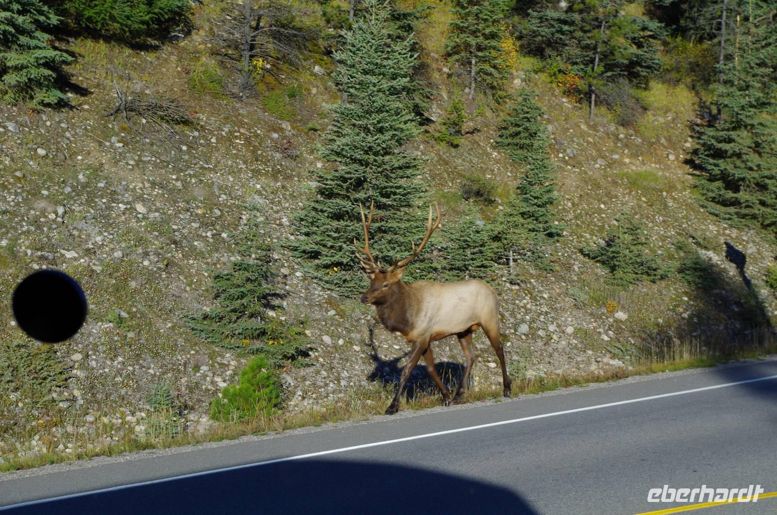Der Blick aus dem Zimmer versprach auch heute wieder Kaiserwetter. Wer schon früh aufstand konnte sich von der Wildnis und Unberührtheit der Rockys am Morgen verzaubern lassen. Die Bergspitzen wurden in eine rote Farbe gehüllt - fantastisch. Entlang des Athabasca Rivers fuhren wir in die Eisenbahnerstadt Jasper. Es wurde langsam heller und der blaue Himmel kam zum Vorschein. Wir sahen unzählige Wapitihirsche am Straßenrand. Auf der Maligne Lake Road erreichten wir den Maligne Canyon. Er ist 50 Meter tief. Wir unternahmen einen Spaziergang auf dem Rundweg bis zum Teehaus. Endlich konnten wir wieder zum Shopping gehen. Weiter ging unsere Reise vorbei am Medizinsee zum Maligne Lake. Der Medizinsee verdankt seinen Namen der First Nations, da er unregelmäßig Wasser hatte, tauften die Indians ihn auf diesen Namen. Beeindruckend war der im Juli dort stattgefundene natürliche Waldbrand. Alle sahen, was für Folgen und doch auch Chancen so ein Brand für die Natur hatte. Der Maligne Lake überraschte uns mit seinem traumhaften Antlitz. Wir spazierten entlang des Sees und im Restaurant legten wir unsere Mittagspause ein. Und wieder folgte ein weiteres Highlight - auf der Fahrt sahen wir den ersten Bären unserer Reise. Unglaublich das gefühl dieses Tier in freier Wildbahn zu erleben. Zurück in Jasper bummelten wir durch die Stadt. Auf der Rückfahrt in unsere Lodge hatten wir wieder Glück. Einige Wapitihirsche tummelten sich am Straßenrand. Den Abend ließen wir bei einem gemeinsamen Zusammensein in der Lodge ausklingen.