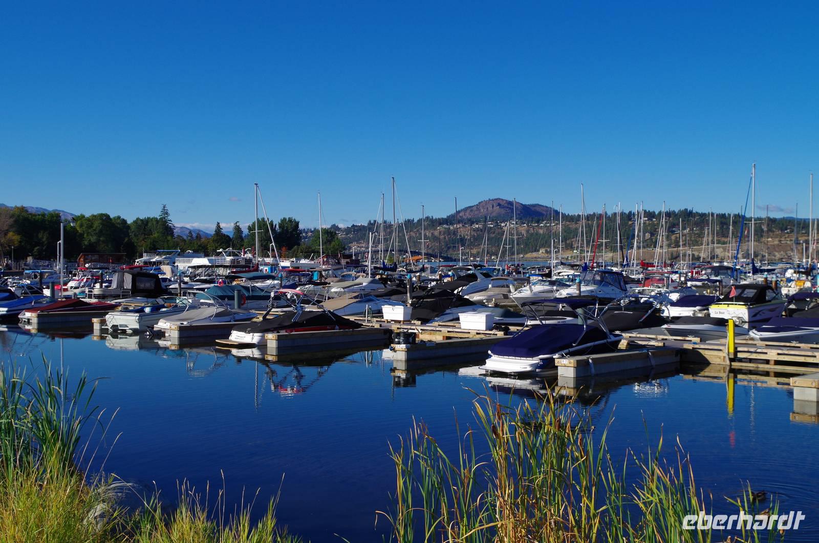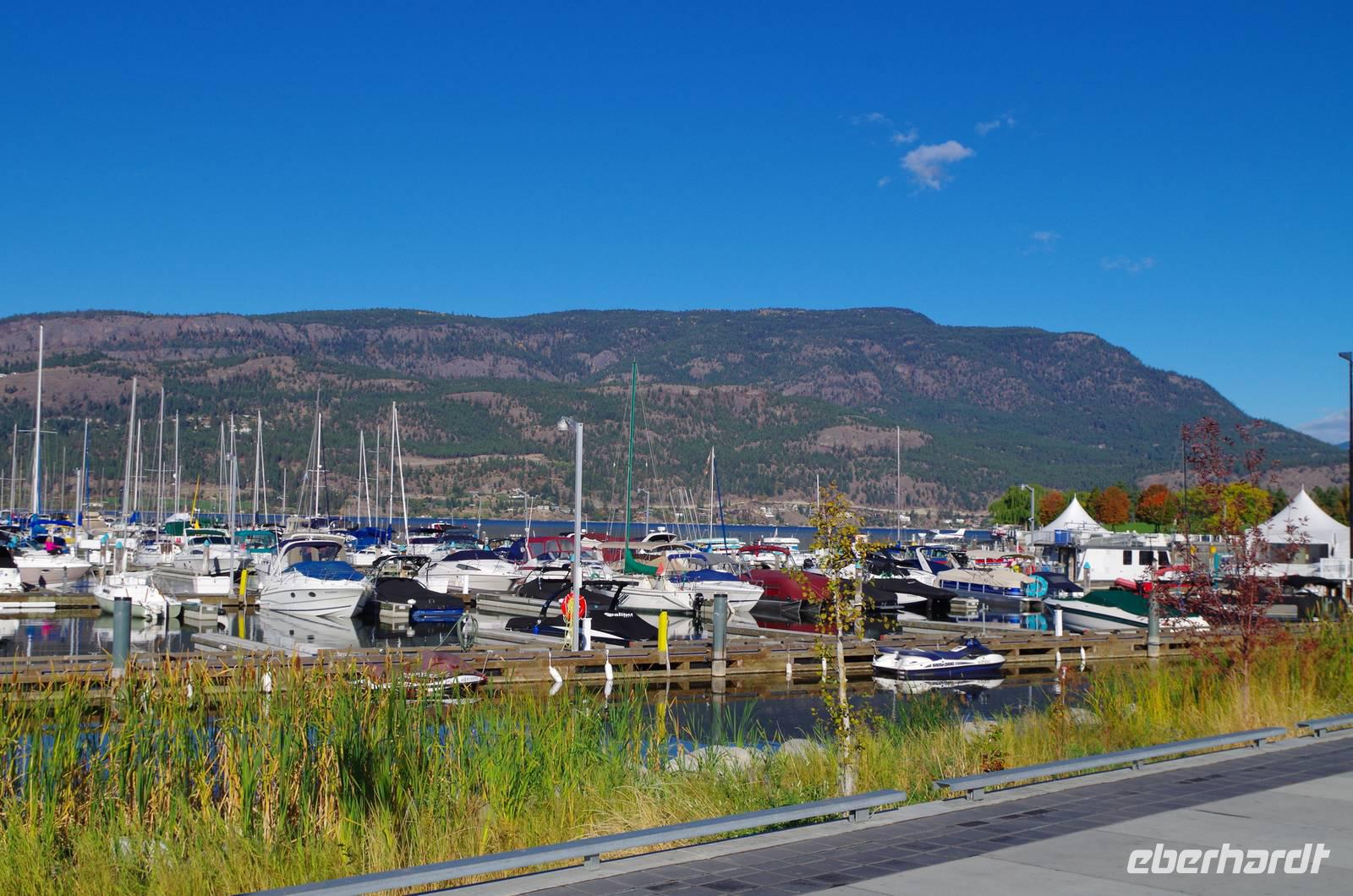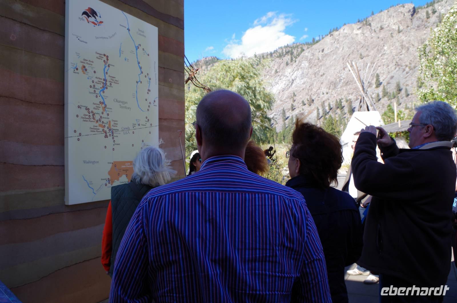 Am Morgen unternahmen wir einen Spaziergang am Okanakan See. Nach einer schönen Fahrt entlang des Sees waren wir schon in der Okanakan Wein Region. Passend dazu kam die Sonne zum Vorschein. Wir fuhren weiter auf der Weinroute nach Penticton, der Hauptstadt des Pfirsichs. Vorbei am Skaha See - der durch einen Kanal mit dem Okanakansee verbunden ist, und einer sehr schönen hügelichen Landschaft mit vielen Weinbergen und Weingütern, sowie dem Okanakan Falls und dem Vaseux See erreichten wir Oliver die Weinhauptstadt Kanadas. Es ging weiter in die einzige Wüste Kanadas. Wir besuchten das Nk'mip Desert Cultur Center. Sarah, eine Indianerin, führte uns durch das Indianerzentrum. Dabei erfuhren wir einiges über die Lebensweise der Indianer damals und heute sowie über einige Pflanzen und Tiere.In Nk'mip Weingut wurden wir schon zu einer Führung und einer Weinverkostung erwartet. Jeweils zwei Weiß- und zwei Rotweine sowie einen Eiswein ließen wir uns munden. Auf der Terrasse des Restaurants wurde uns das Abendessen, mit einem fantastischen Blick über den Oosyoos See, gereicht. Im hoteleigenen Pub ließen wir den Tag ausklingen.