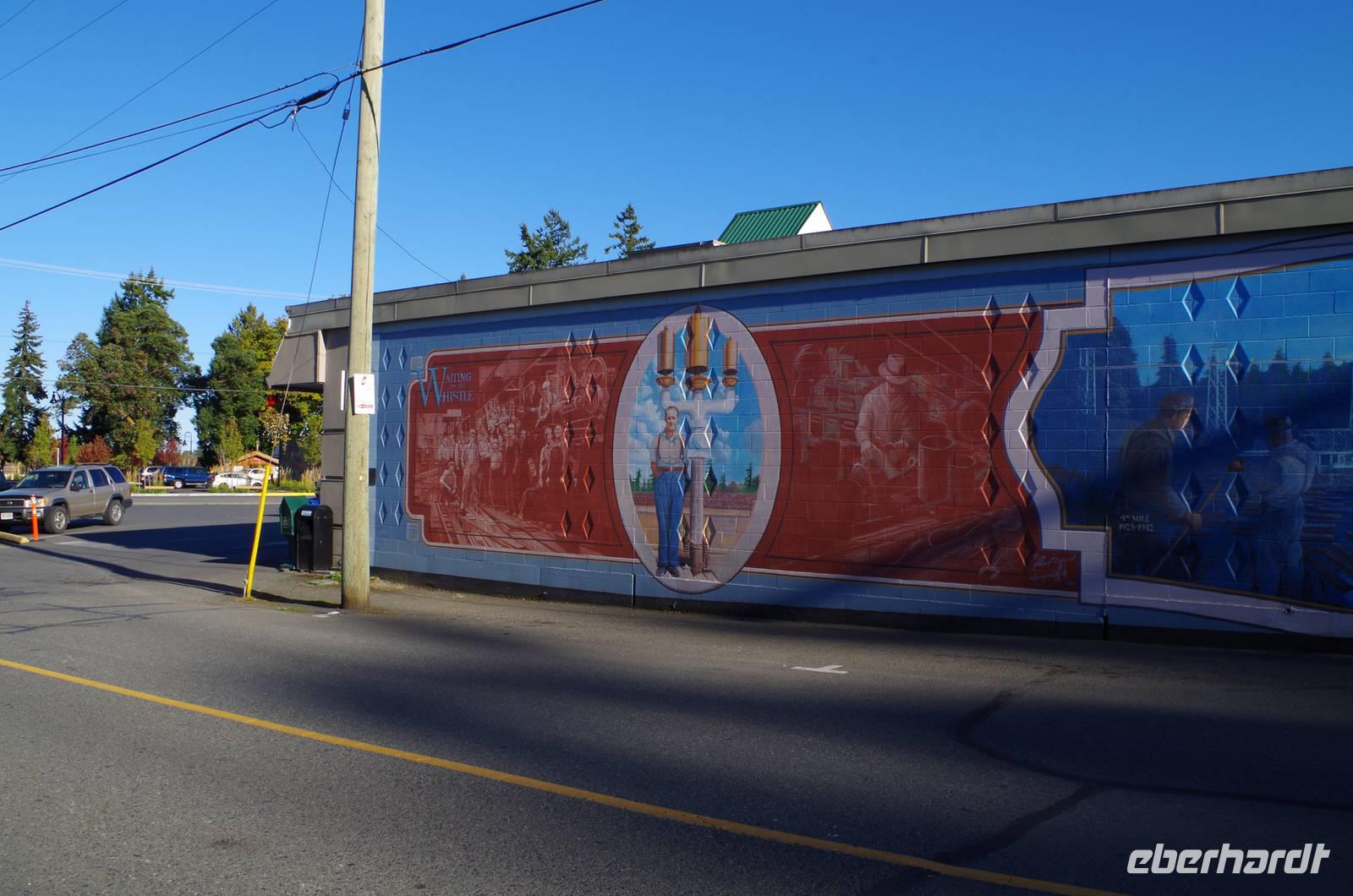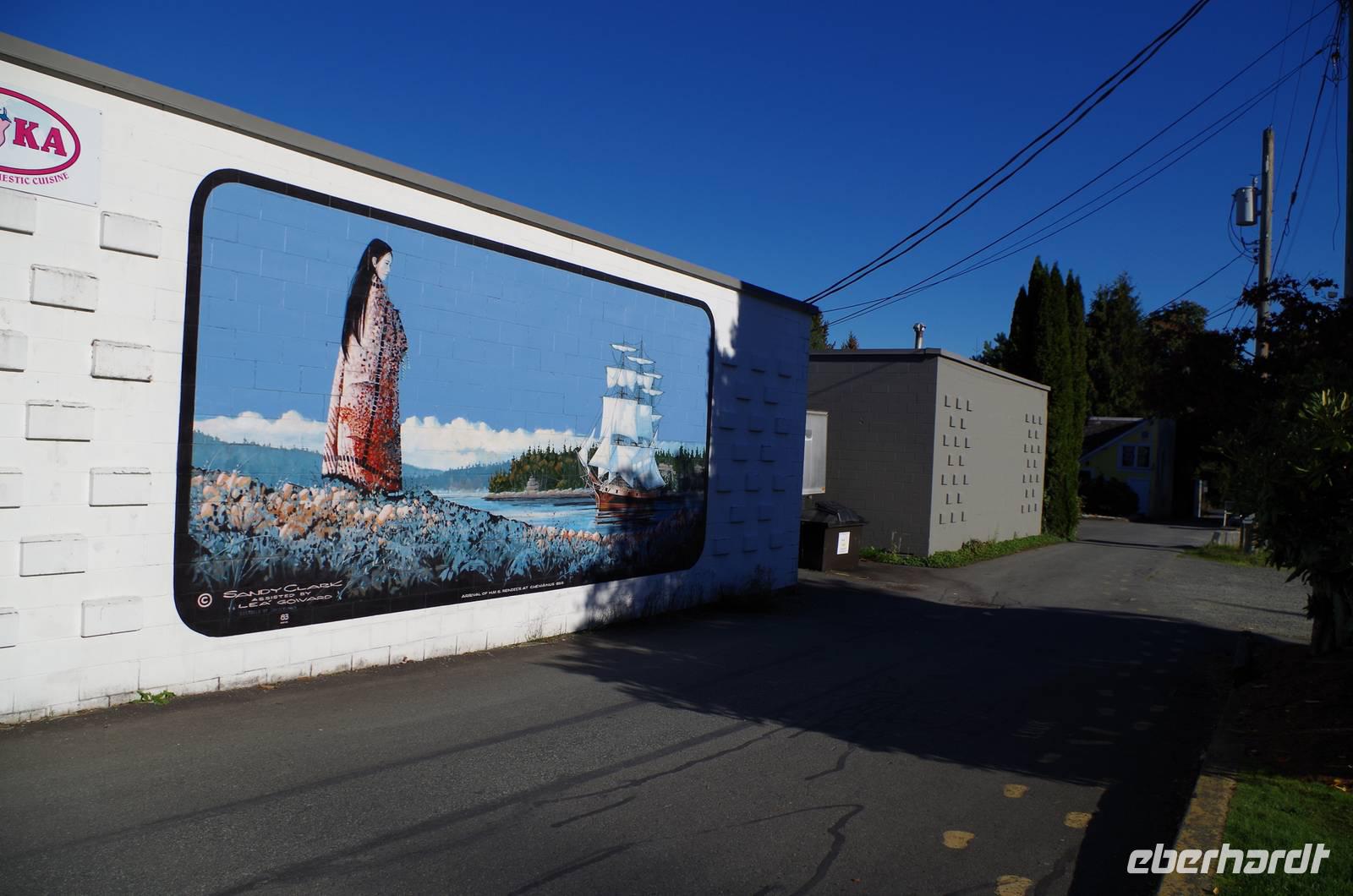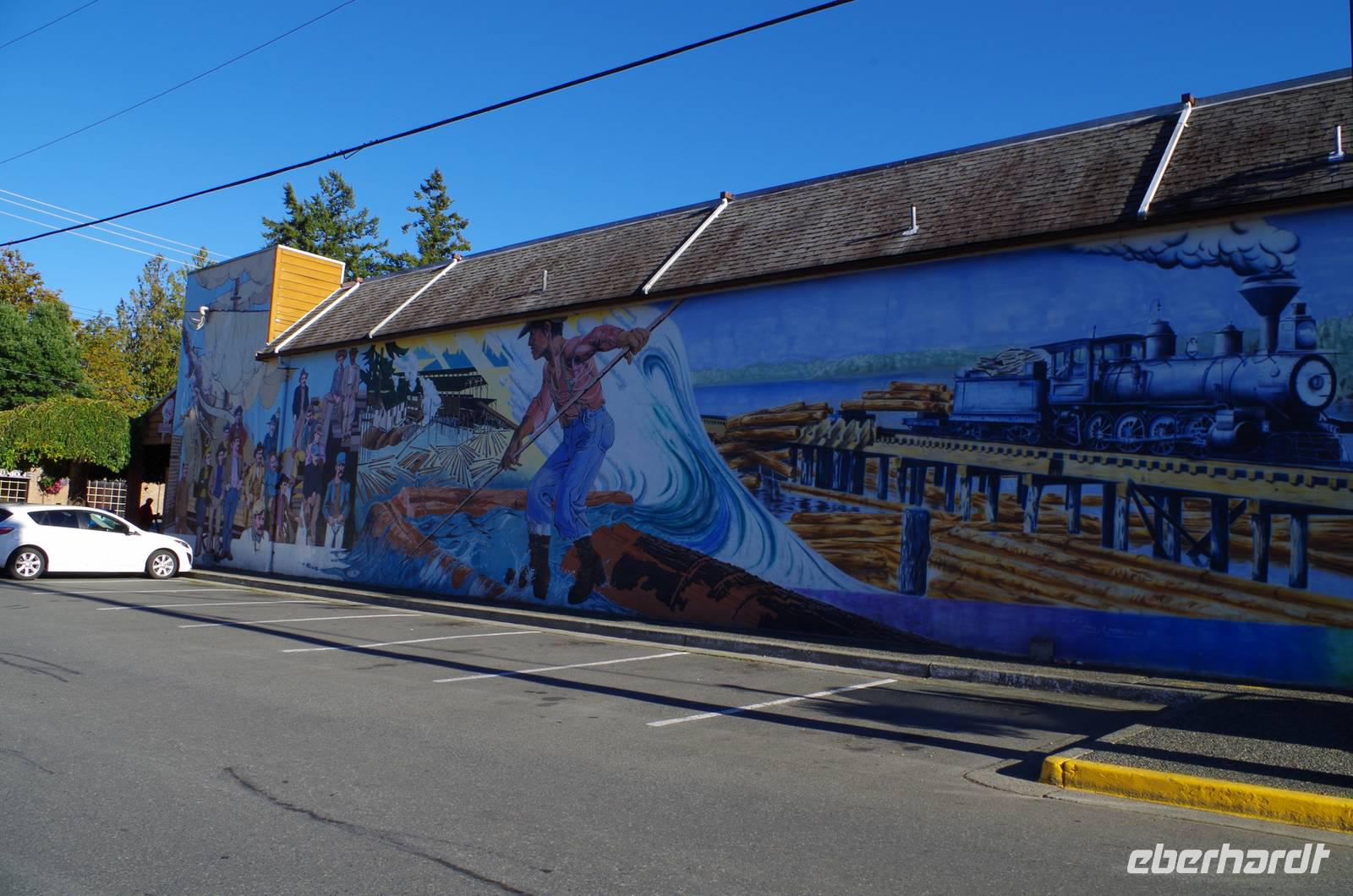 Heute besichtigten wir die schöne Stadt Victoria oder machten uns auf die Spuren der Wale. Alle Teilnehmer des Ausflugs kamen mit strahlenden Augen zum Treffpunkt zuzrück. Mit dem Bus fuhren wir durch das Villenviertel und erreichten den Null Punkt.Hier an der Mile 0 beginnt der Highway No. 1 - der sogenannten Transkanda. Entlang der Küste auf einer Straße wo sehr schöne Häuser zu sehen waren, fuhren wir auf der Malahat Strasse - eine schöne Bergstraße nach Chamain. Wir bewunderten die 38 Wandgemälde, die das Leben in der Vergangenheit zeigten. Wir fuhren auch an Mill Bay vorbei in das sehr fruchtbare Cowichan Tal und waren überrascht, dass auch hier Wein angebaut wird. Benannt wird das Tal nach den Cowichan Indianer. Immerhin leben hier noch 6000 Indianer. Über Duncan, die Stadt der Totempfähle und Nanaimo erreichten wir unser Hotel in Parksville.