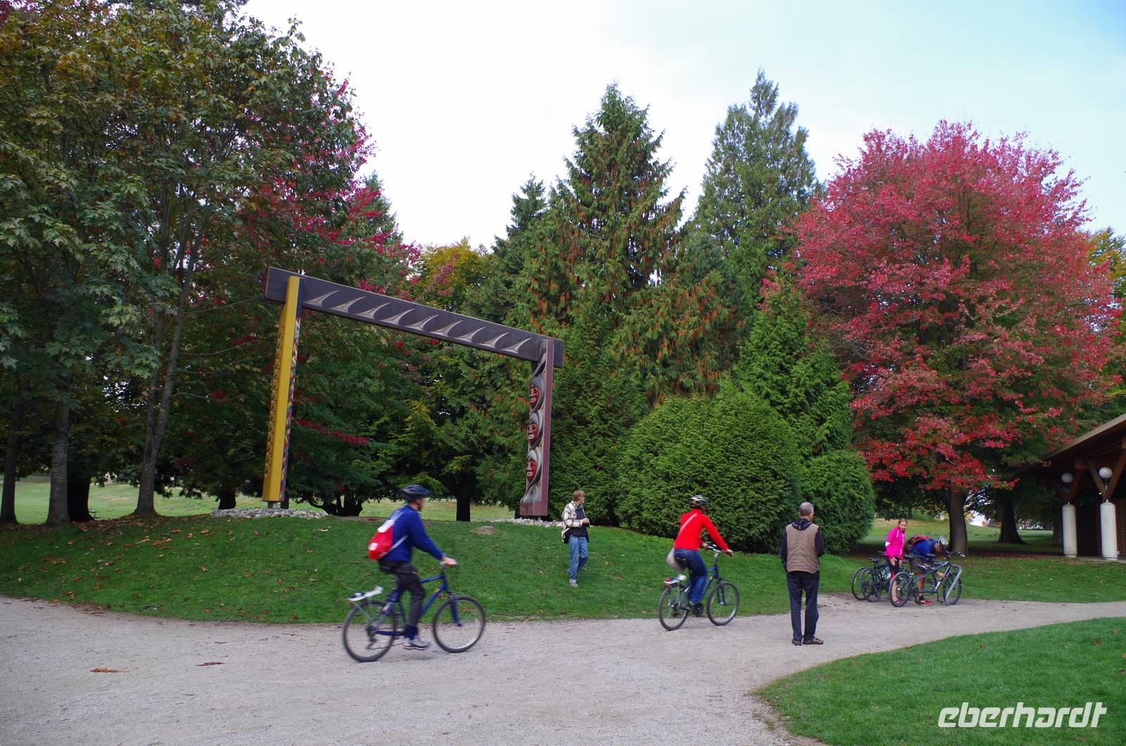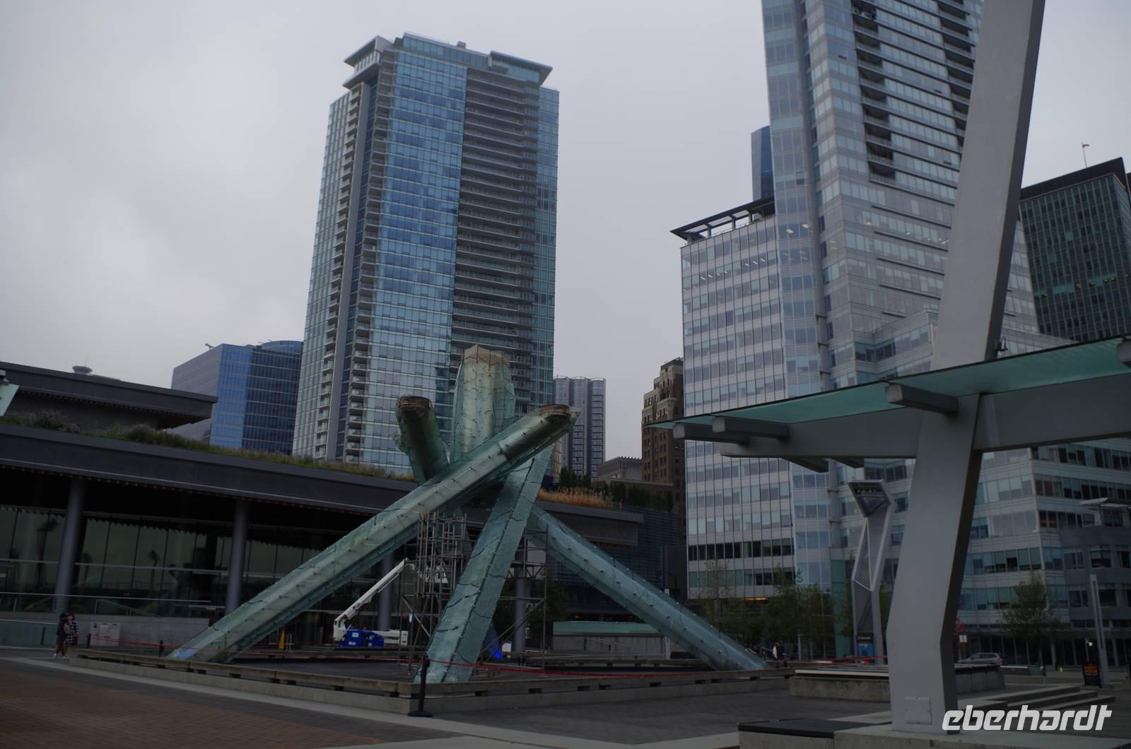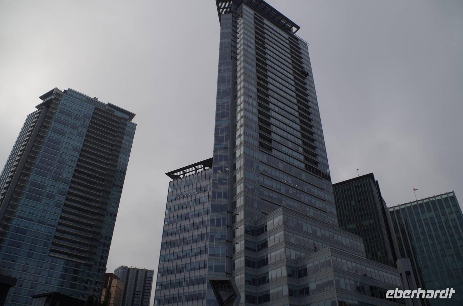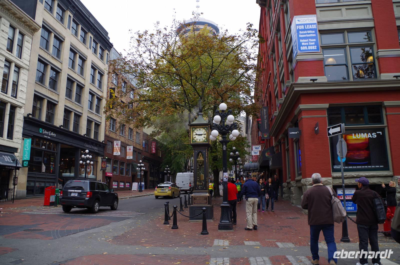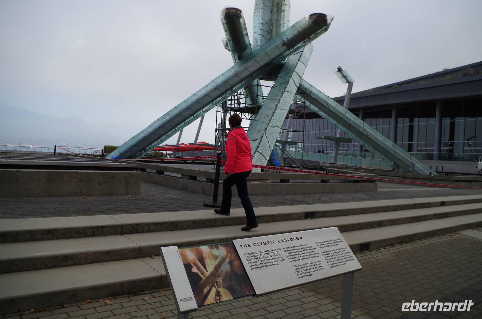 Am Vormittag legte unsere Fähre in Nanaimo nach Vancouver ab. Es war etwas windig und so saßen wir während der Fährüberfahrt unter Deck. Nach einer kurzen Fahrt durch den Stenley Park erreichten wir das Stadtzentrum. Durch Chinatown hindurch fuhren wir nach Gastown, den ältesten Stadtteil. Dem Namensgeber „Gassy Jack" ist auch in einem Denkmal gewidmet. Wir besuchten die berühmte Steam Clock. Die Uhr wird mit einer Dampfmaschine betrieben und stößt jede viertel Stunde eine Melodie durch die dampfenden Pfeifen aus. Unser nächstes Ziel ist der Canada Place, wo 2010 das olympische Feuer brannte und die Olympiasieger geehrt wurden. Gleichzeitig legen hier die großen Kreuzfahrtschiffe ab und an an. Unser letztes Ziel war Granville Island, ein belebtes Künstlerviertel, mit vielen Geschäften Galerien und Restaurants. Wir erreichten unser Hotel und nutzten die Zeit für einen Stadtbummel oder einen Spaziergang am Hafen. Den Tag ließen wir am Strand ausklingen und beobachteten einen Buckelwal, der sich in die Bucht verirrt hatte.
