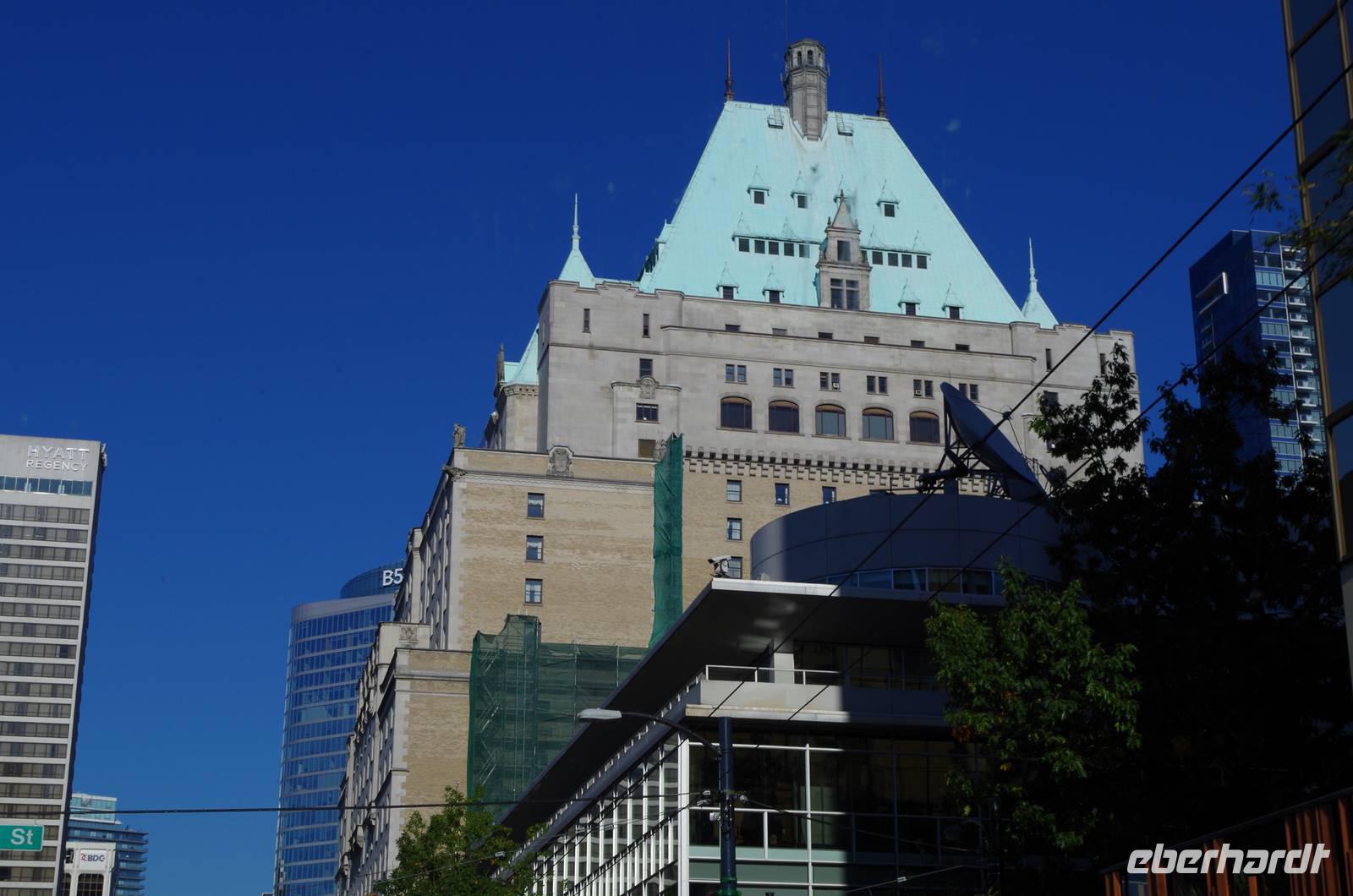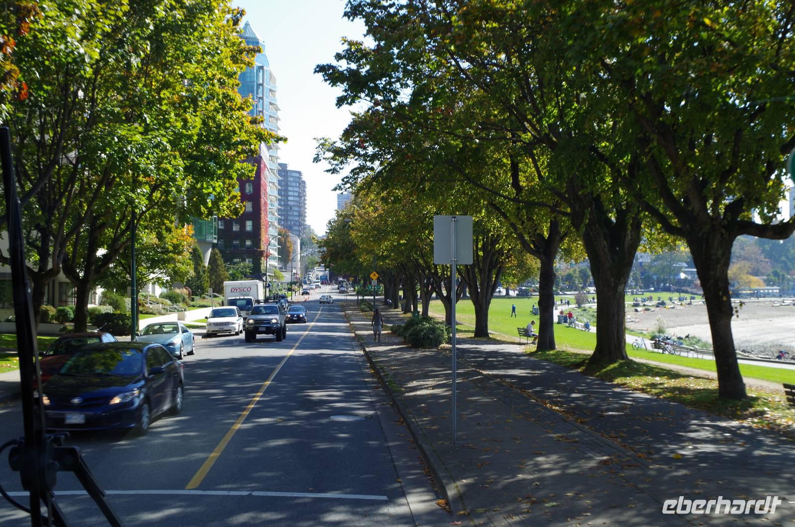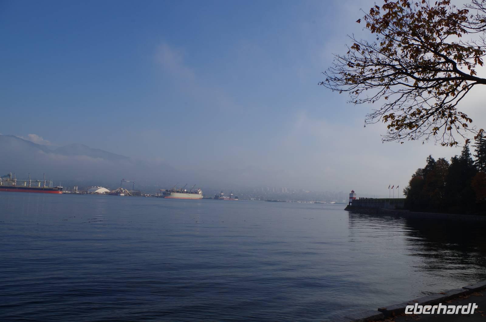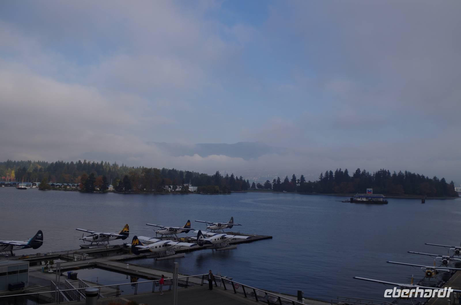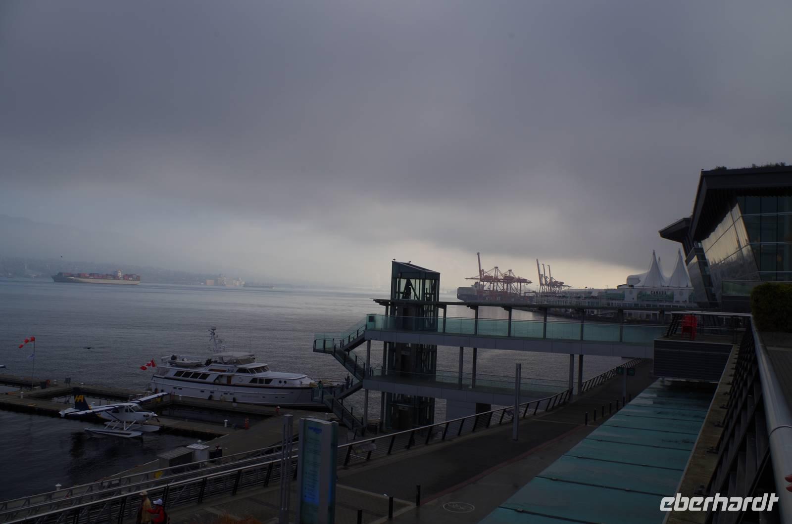 Am Vormittag legte unsere Fähre in Nanaimo nach Vancouver ab. Es war etwas windig und so saßen wir während der Fährüberfahrt unter Deck. Nach einer kurzen Fahrt durch den Stenley Park erreichten wir das Stadtzentrum. Durch Chinatown hindurch fuhren wir nach Gastown, den ältesten Stadtteil. Dem Namensgeber „Gassy Jack" ist auch in einem Denkmal gewidmet. Wir besuchten die berühmte Steam Clock. Die Uhr wird mit einer Dampfmaschine betrieben und stößt jede viertel Stunde eine Melodie durch die dampfenden Pfeifen aus. Unser nächstes Ziel ist der Canada Place, wo 2010 das olympische Feuer brannte und die Olympiasieger geehrt wurden. Gleichzeitig legen hier die großen Kreuzfahrtschiffe ab und an an. Unser letztes Ziel war Granville Island, ein belebtes Künstlerviertel, mit vielen Geschäften Galerien und Restaurants. Wir erreichten unser Hotel und nutzten die Zeit für einen Stadtbummel oder einen Spaziergang am Hafen. Den Tag ließen wir am Strand ausklingen und beobachteten einen Buckelwal, der sich in die Bucht verirrt hatte.