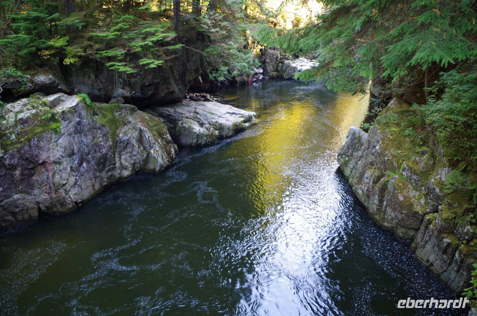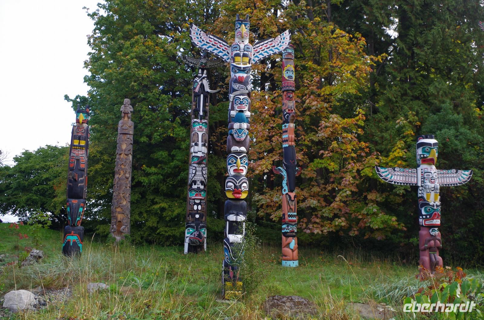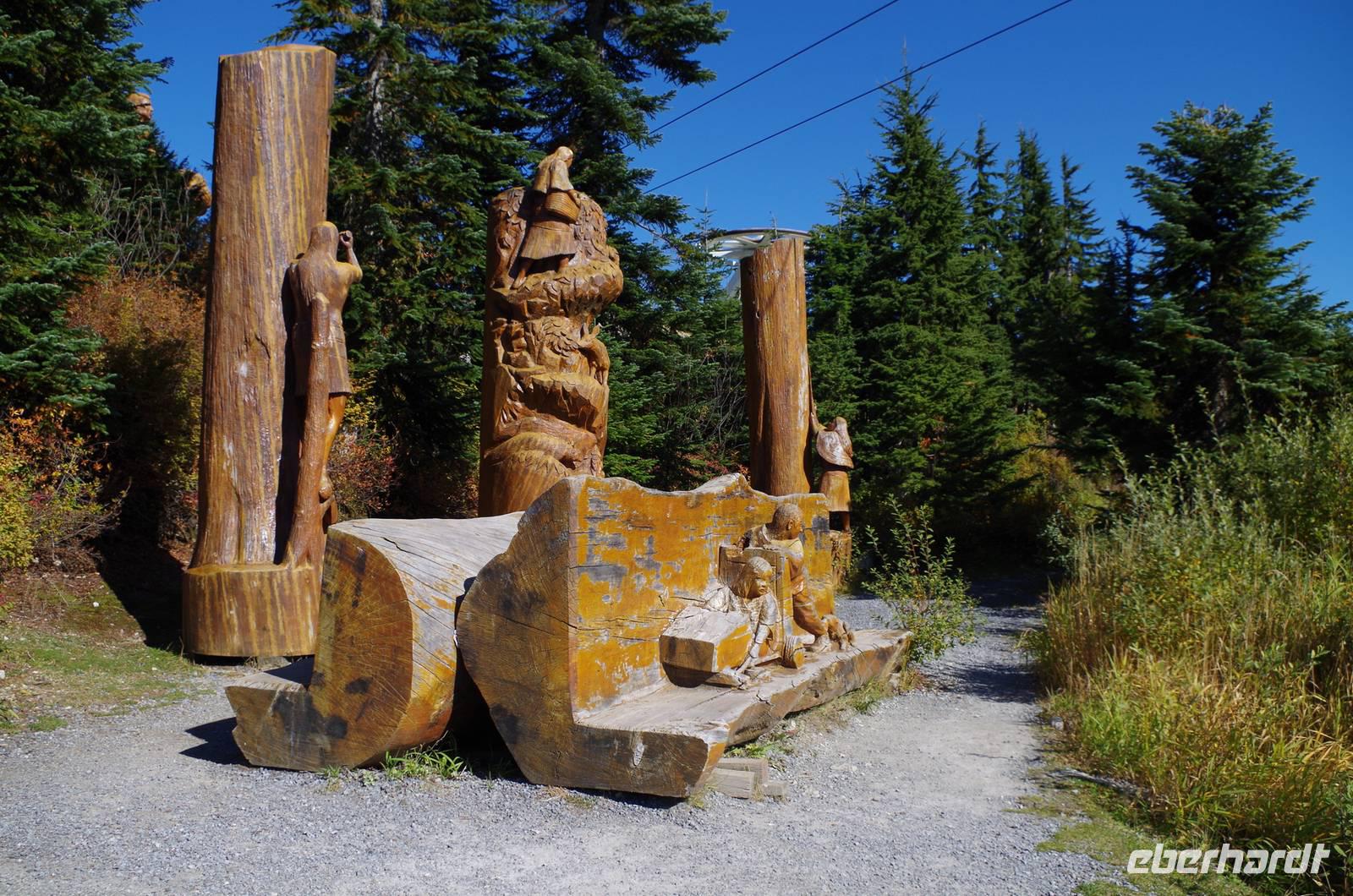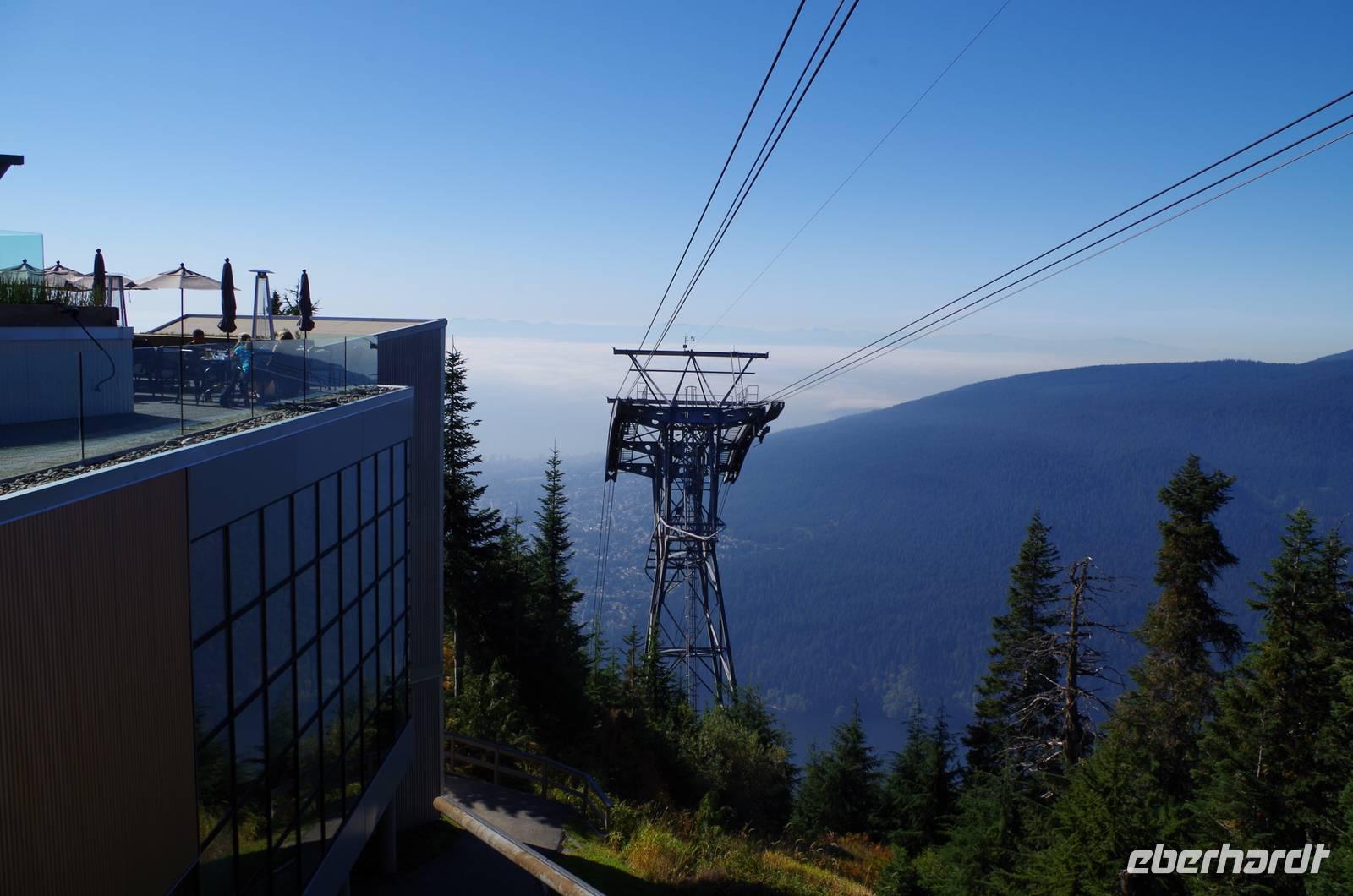 Der heutige Ausflug führte uns in den Norden von Vancouver. Doch erst fuhren wir in den Stenlay Park. An den Totempfählen der Westküsten Indianer legten wir einen Stopp ein und bestaunten die Skyline von Vancouver. Im Anschluss daran besuchten wir den Capilano Suspension Bridge Park. Als erstes überquerten wir mutig die Capilano Suspension Bridge, die längste und höchste Fußgängerhängebrücke der Welt! Es schaukelte schon etwas. Auf dem Baumlehrpfad konnten wir auf sieben Hängebrücken entlang wandeln. Auch den neuen Cliffwalk liefen wir entlang. Anschließend fuhren wir mit Nordamerikas größter Luftseilbahn auf den Hausberg von Vancouver, den Grouse Mountain. Wir genossen bei einem Picknick den Blick über Vancouver. Auch wenn wir schon Schwarzbeeren gesehen haben, fehlte noch der Besuch der Grizzly Bären. Einer der Bären hatte sich im Wald schlafen gelegt. Anschließend besuchten wir die Capilano Salmon Hatchery, eine Lachszuchtanstalt, wo der Lebenskreis der Lachse demonstriert wird. Über eine Lachstreppe überwinden die Lachse die Stromschnellen und springen Stromaufwärts. Ein ereignisreicher Tag in Vancouver ging zu Ende.