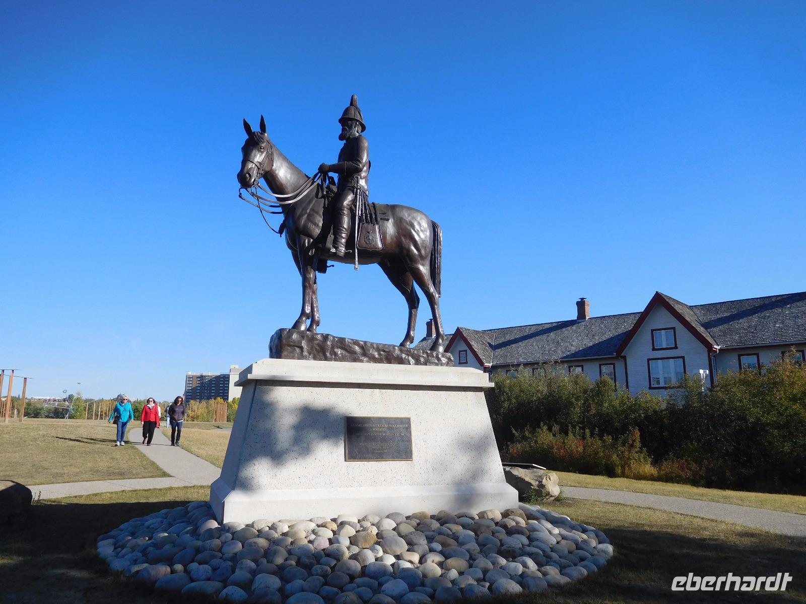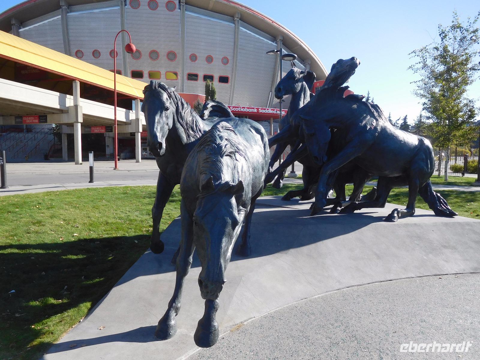 Nach dieser Mutprobe führte uns Marion zu einem ganz besonderen Mann, den sie uns vorstellen wollte: Colonel James Alexander Farquharson Macleod. Die Bronzestatue des Namensgebers von Calgary wacht bis heute über die Stadt. Von der Vergangenheit in die Zukunft führte uns Marion nun zum Gelände des Calgary Stampede. Der Begriff, der im Spanischen für eine plötzliche Bewegung von Tierherden steht, bezeichnet hier ein riesiges alljährliches Volksfest. Hier stellen Cowboys ihr Können im Rodeo und anderen Disziplinen zur Schau.