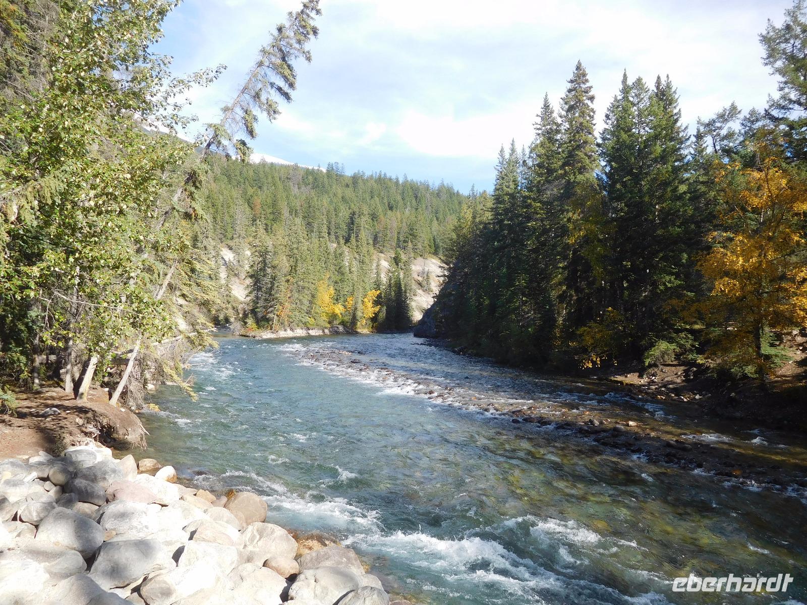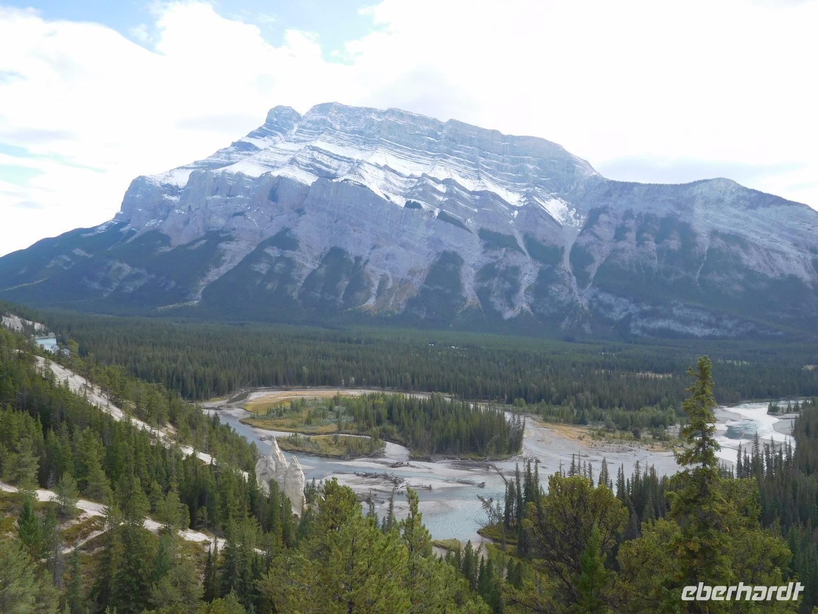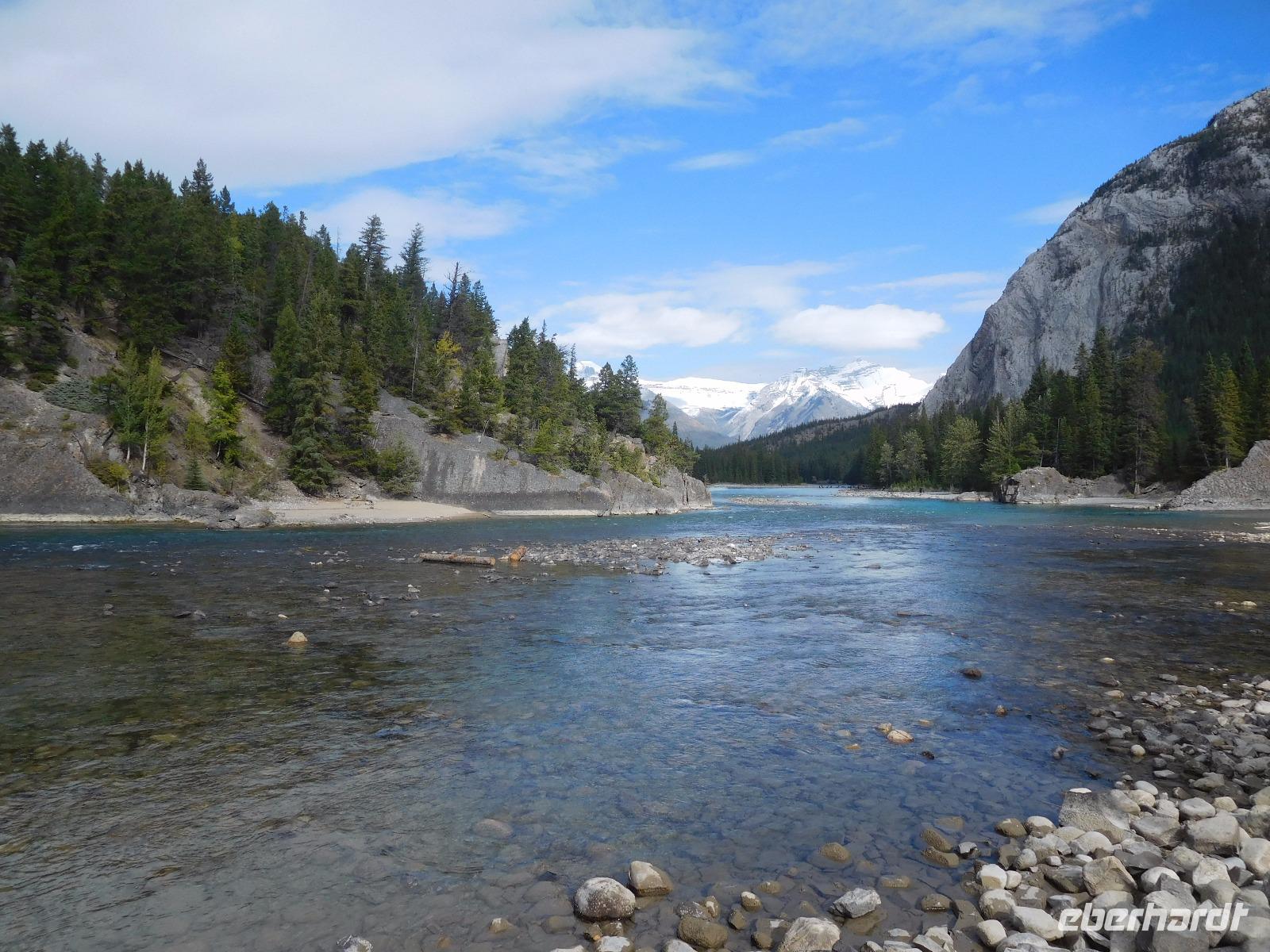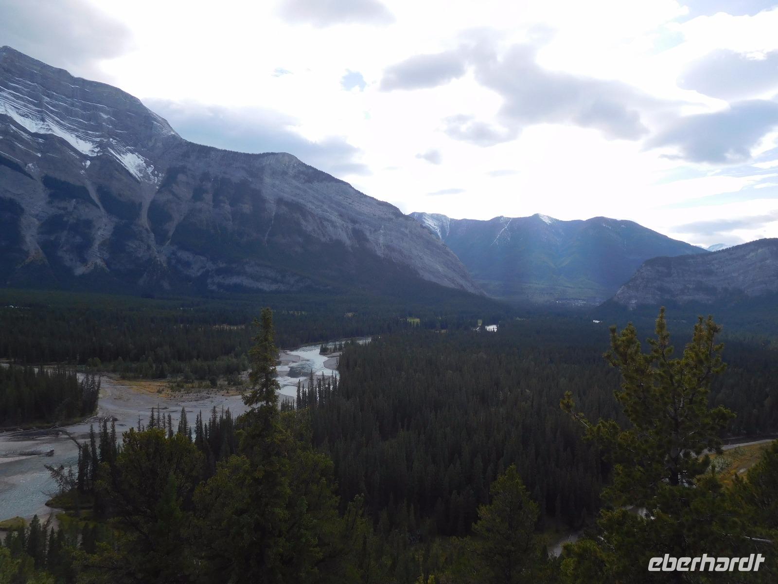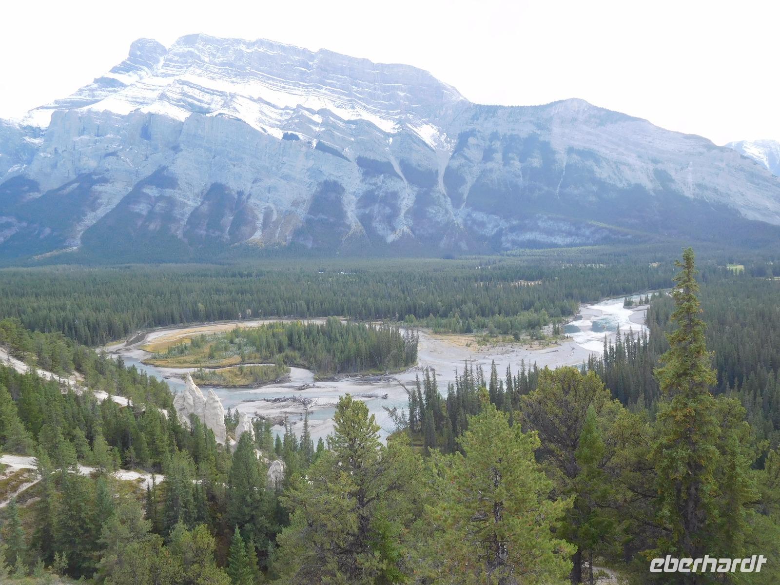 Ziel war das kleine Touristenstädtchen Banff, durch das wir erst fuhren, um das ehrwürdige "Plüsch"-Hotel Banff Springs Hotel, den "River of No Return", auf dem einst Marilyn Monroe auf dem Floß entlang fuhr, und weiter zu den schmalen Gesteinsformationen der Hoodoos.