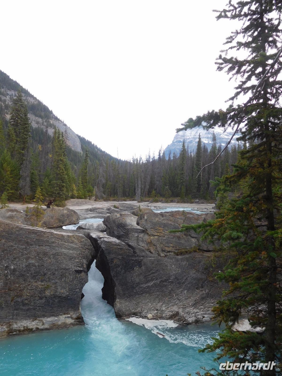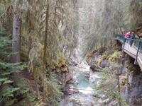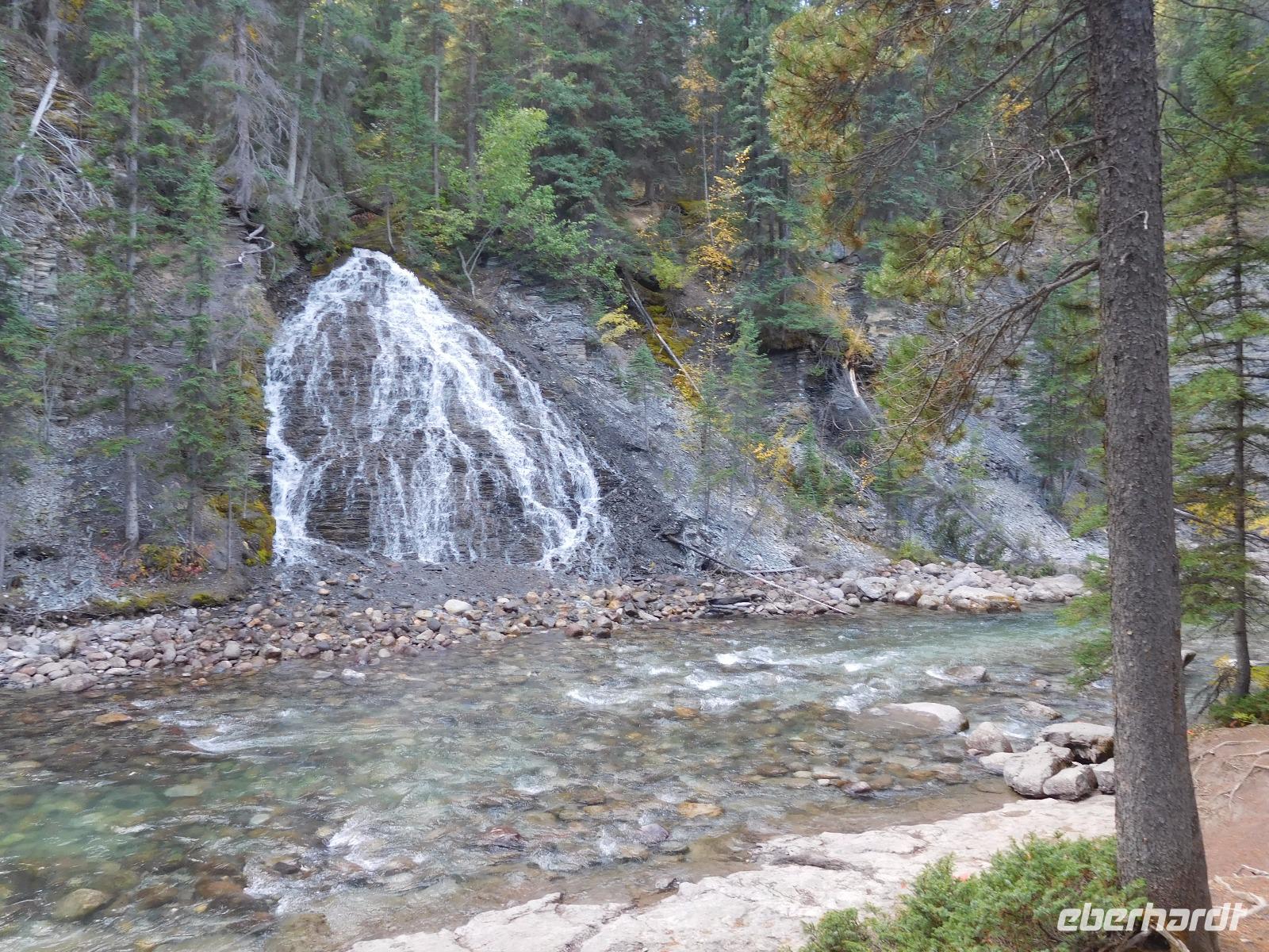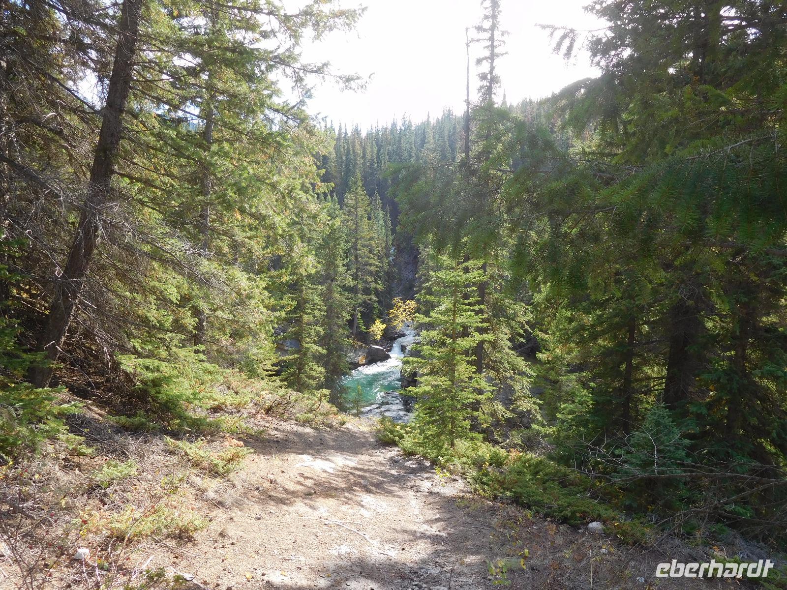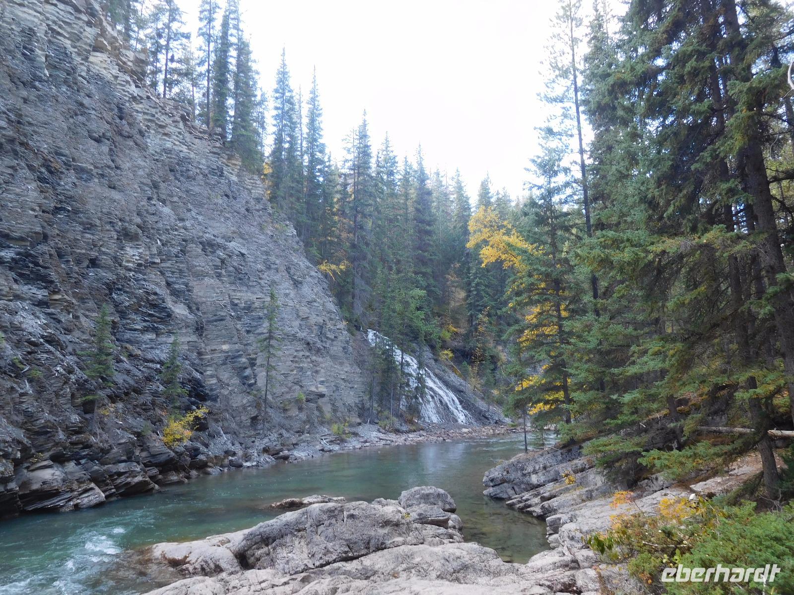 Eisige Erlebnisse standen heute auf dem Programm - bevor wir aber unsere Reise entlang der schönsten Gletscher der kanadischen Rocky Mountains antraten, spazierten wir den Johnston Canyon zum Wasserfall hinunter. Auch hier war die Wasserfarbe unglaublich intensiv smaragdgrün. Durch einen kleinen Tunnel hindurch konnten wir dem Wasser ganz nah kommen.