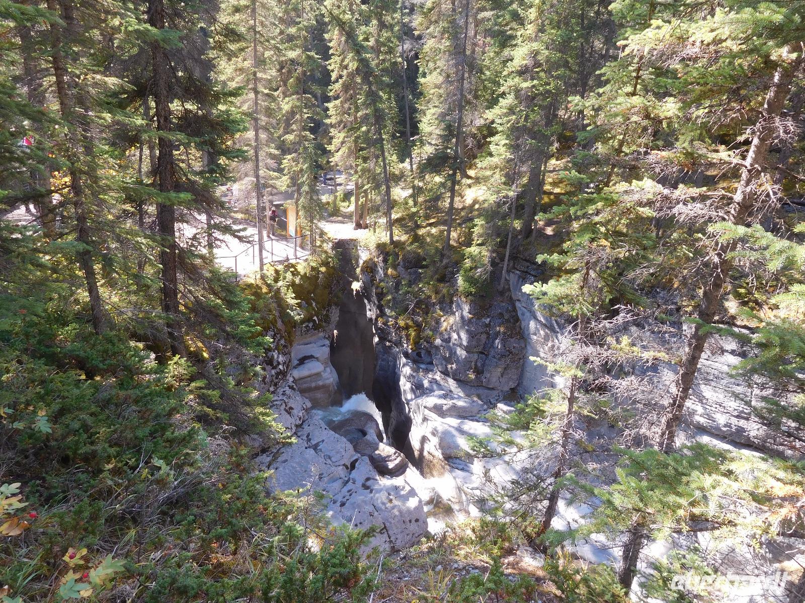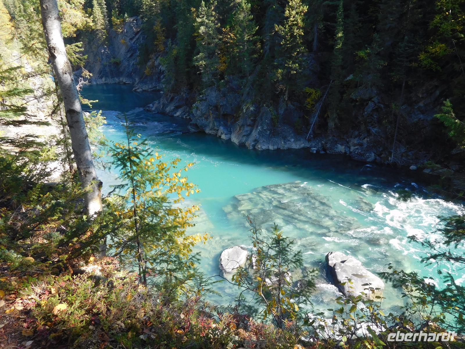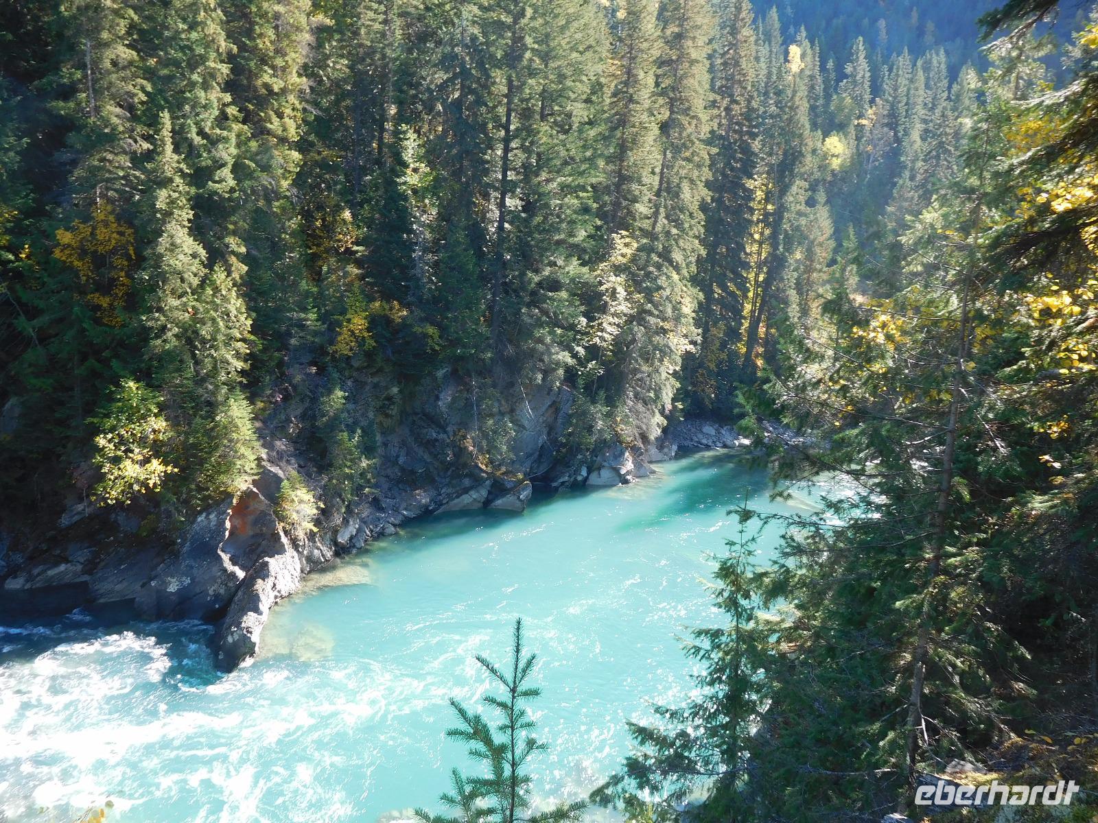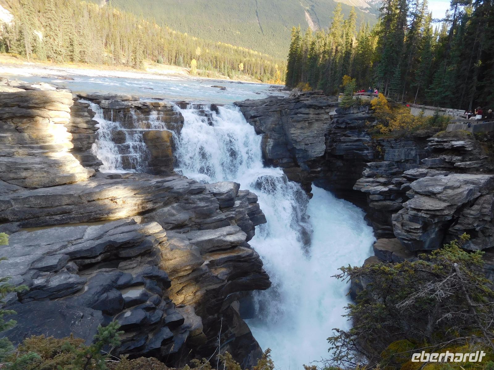 Eisige Erlebnisse standen heute auf dem Programm - bevor wir aber unsere Reise entlang der schönsten Gletscher der kanadischen Rocky Mountains antraten, spazierten wir den Johnston Canyon zum Wasserfall hinunter. Auch hier war die Wasserfarbe unglaublich intensiv smaragdgrün. Durch einen kleinen Tunnel hindurch konnten wir dem Wasser ganz nah kommen.