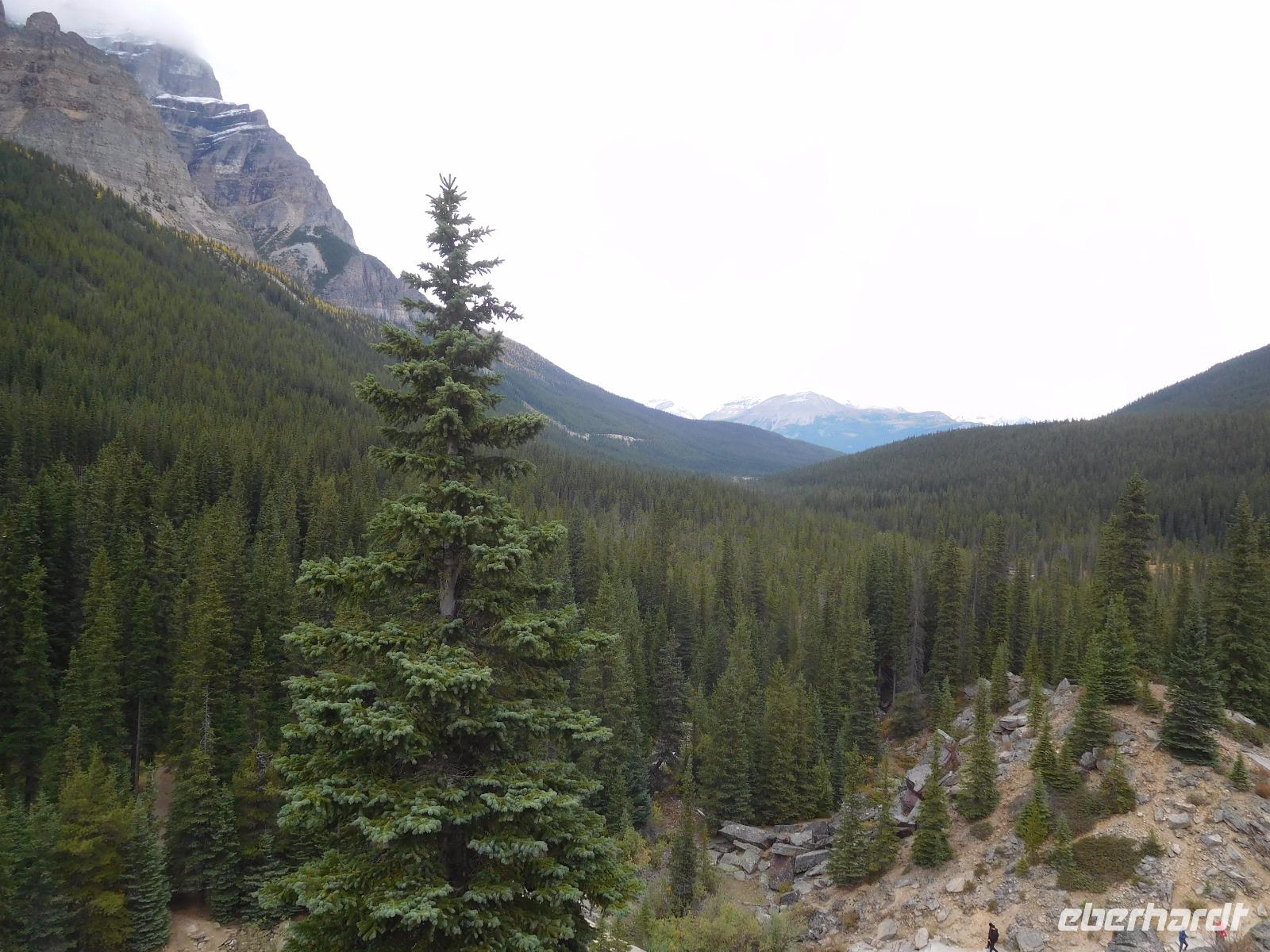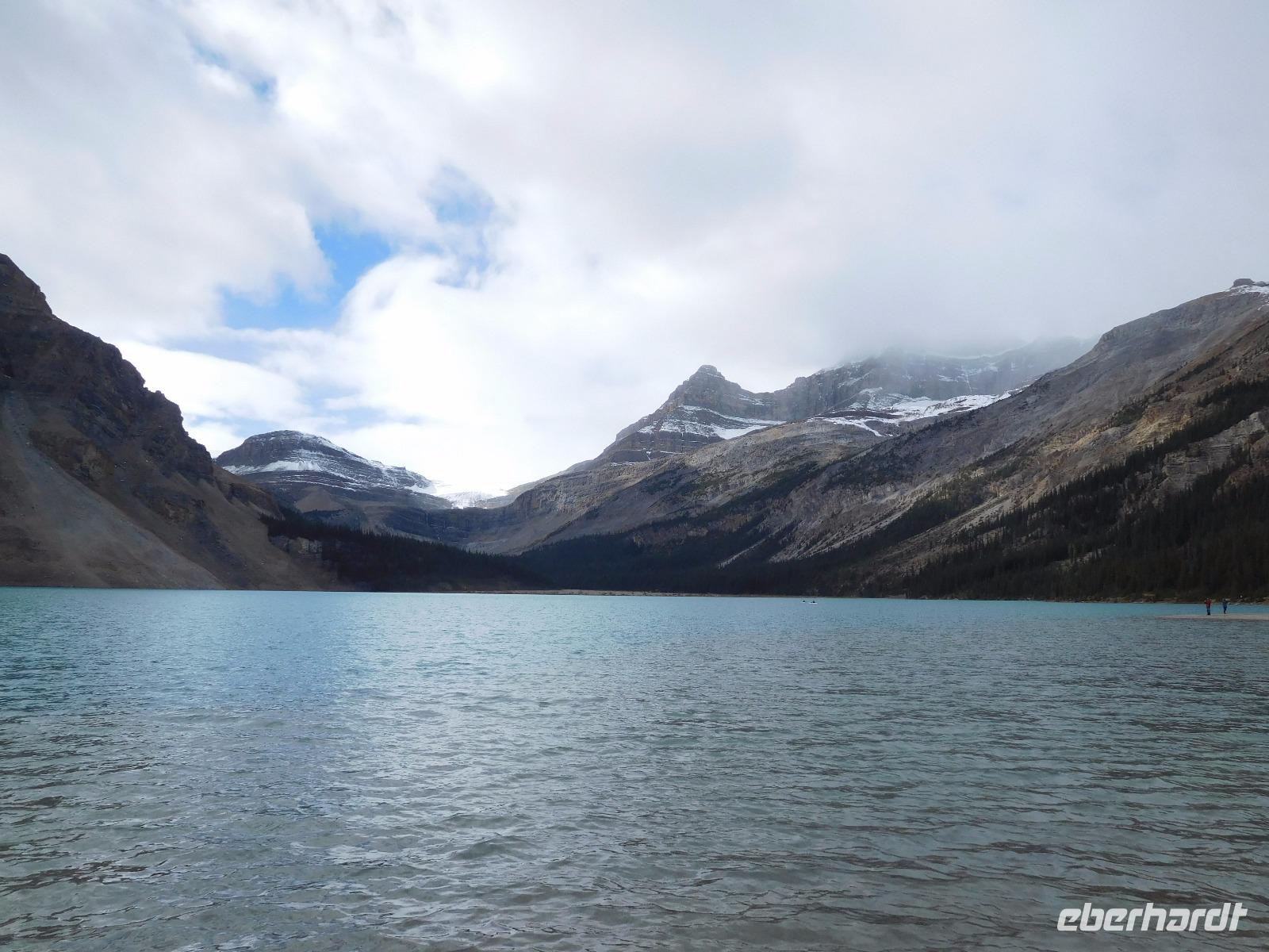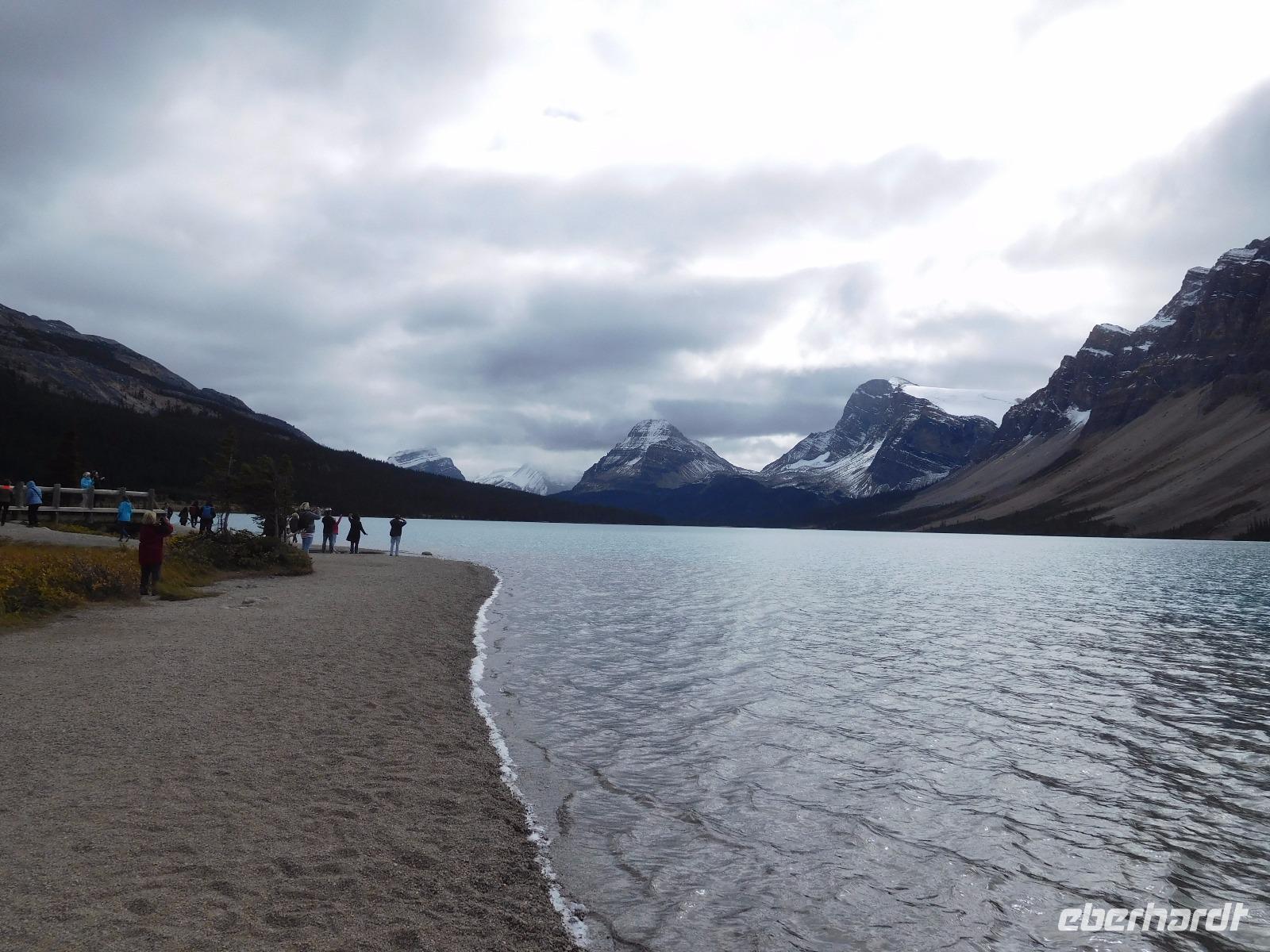 Weiter führte die Fahrt zum graublauen Bow Lake, dessen schützende Bergkuppen allmählich von den Wolken zugedeckt wurden. Schnell also mussten wir weiter, dem Regen bestmöglich entfliehen. Ein wenig abenteuerlich wurde es uns bei der Fahrt, bei der der Bus abermals nicht so wollte wie wir. Nach der Mittagspause war klar - der Bus wird ausgetauscht.