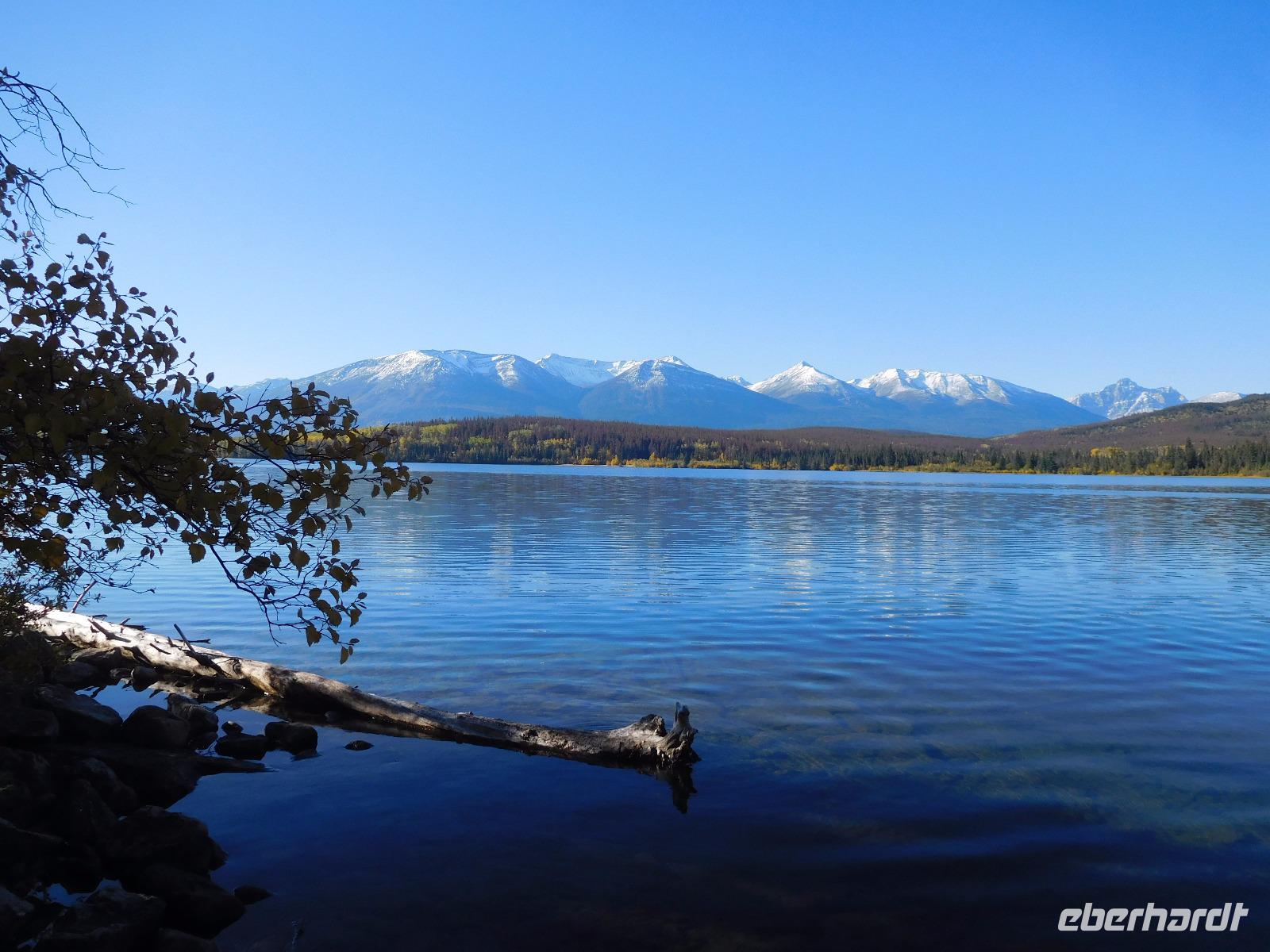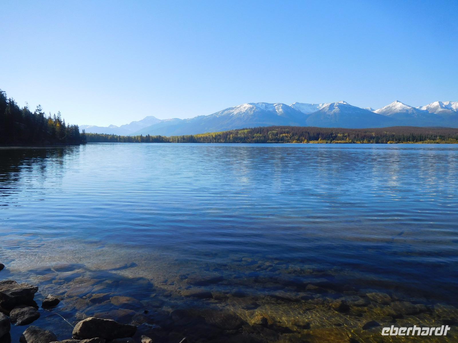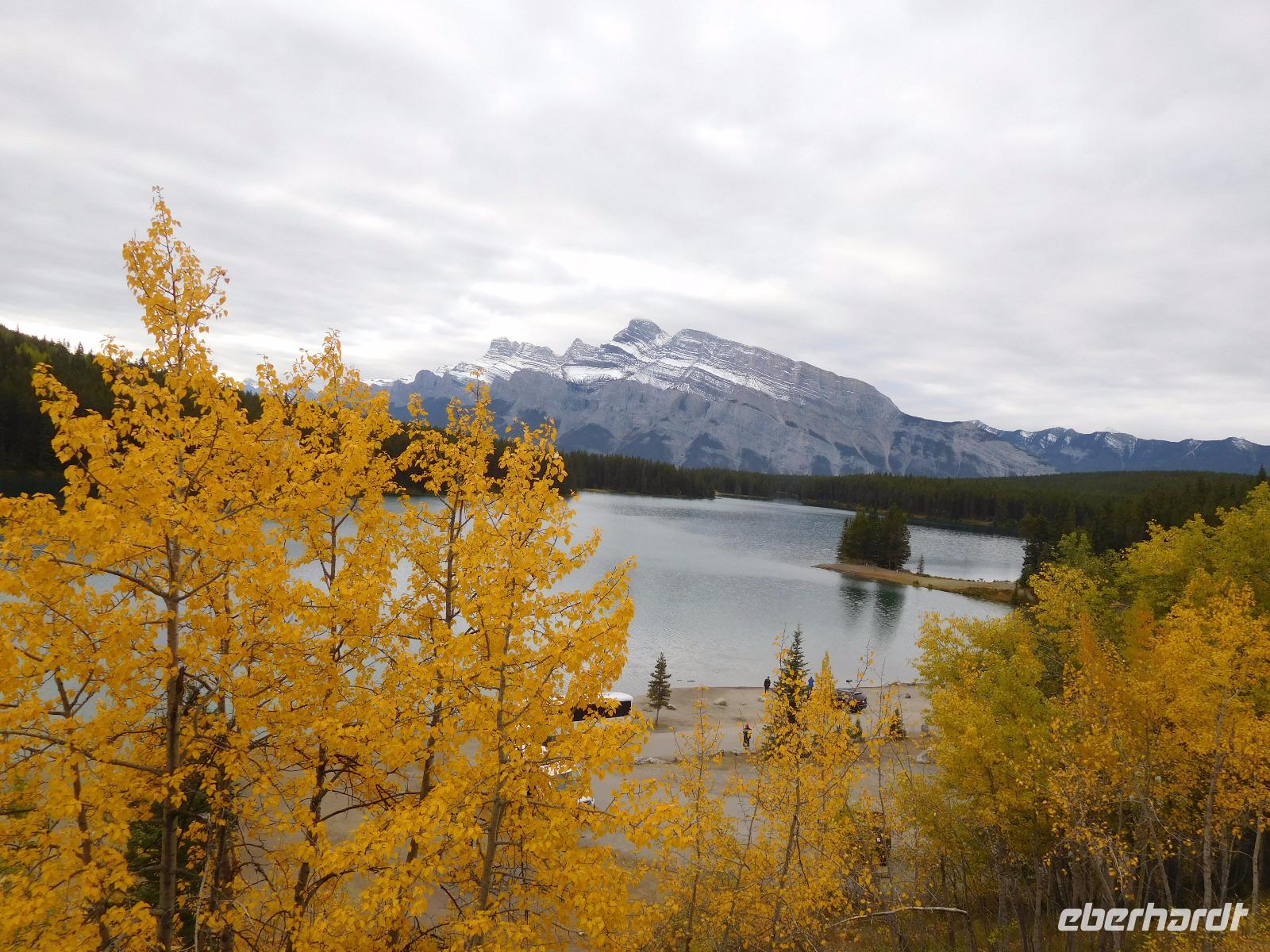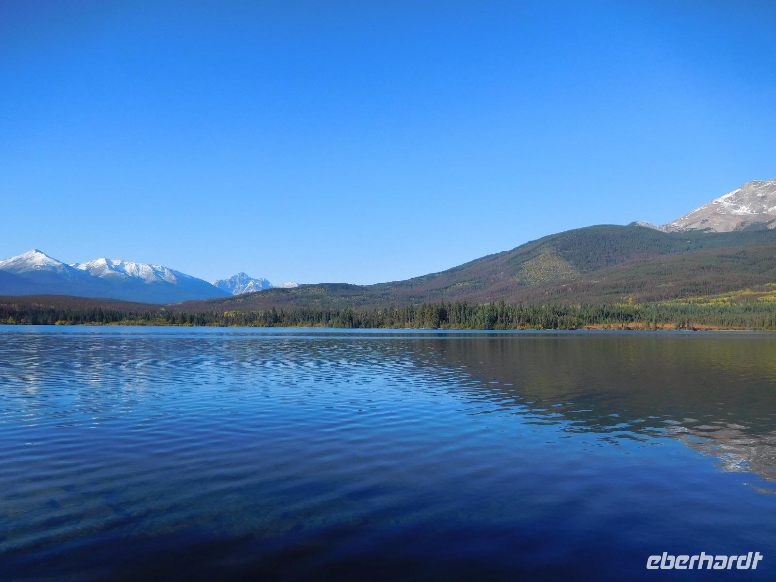 Die Sonne lockte uns heute wieder, die goldene Westkanadische Landschaft zu erkunden. Wie sollte das besser gehen als bei einer Wanderung durch die wunderschöne Landschaft? Doch eins nach dem anderen: Von den Postkarten kannten wir die Seen, die die umliegenden Berggipfel und Baumwipfel perfekt spiegelten. Marion kannte einen ganz besonders schönen, den Patricia Lake, der sich am heutigen Herbsttag perfekt in Szene setzte.