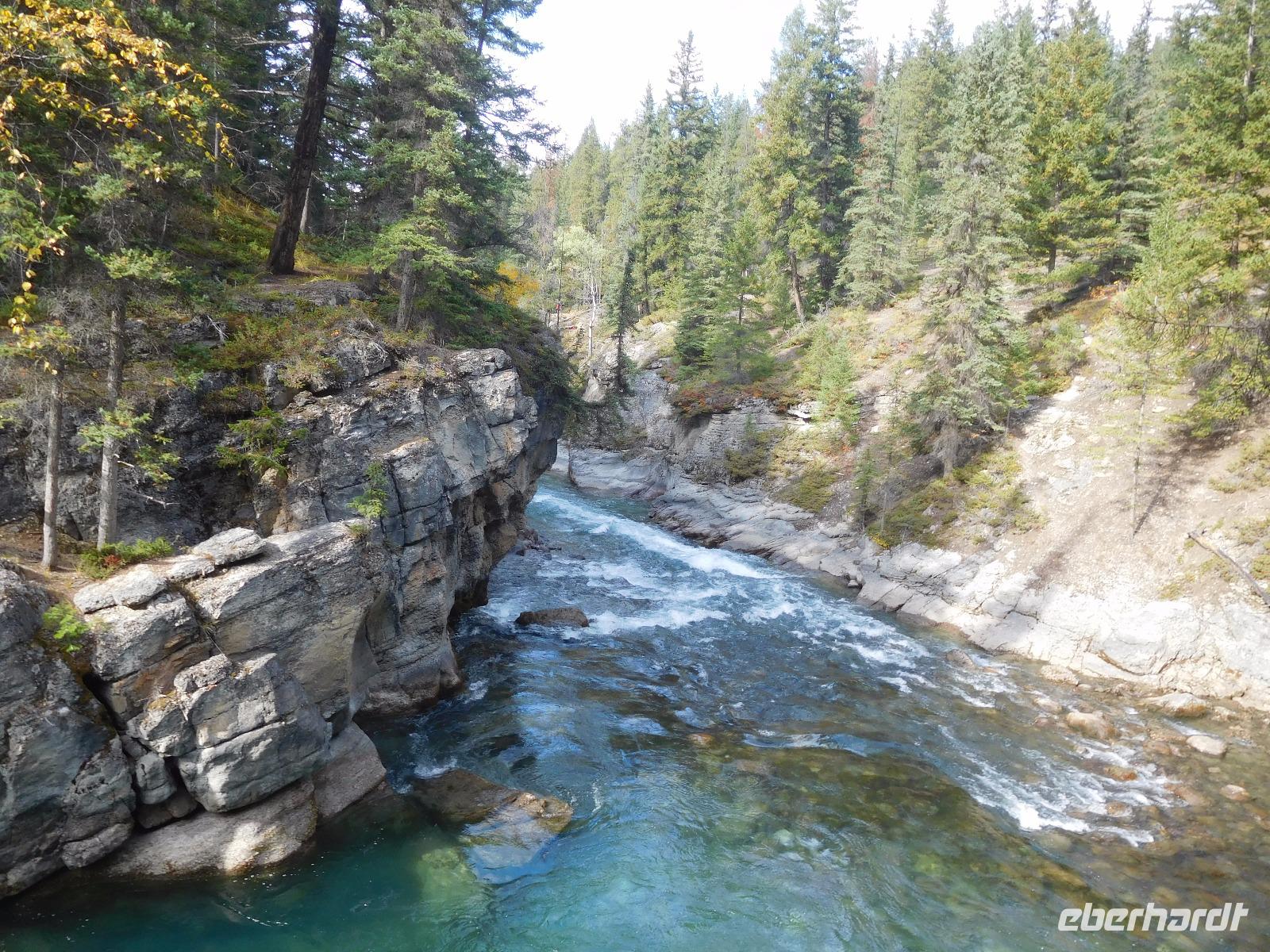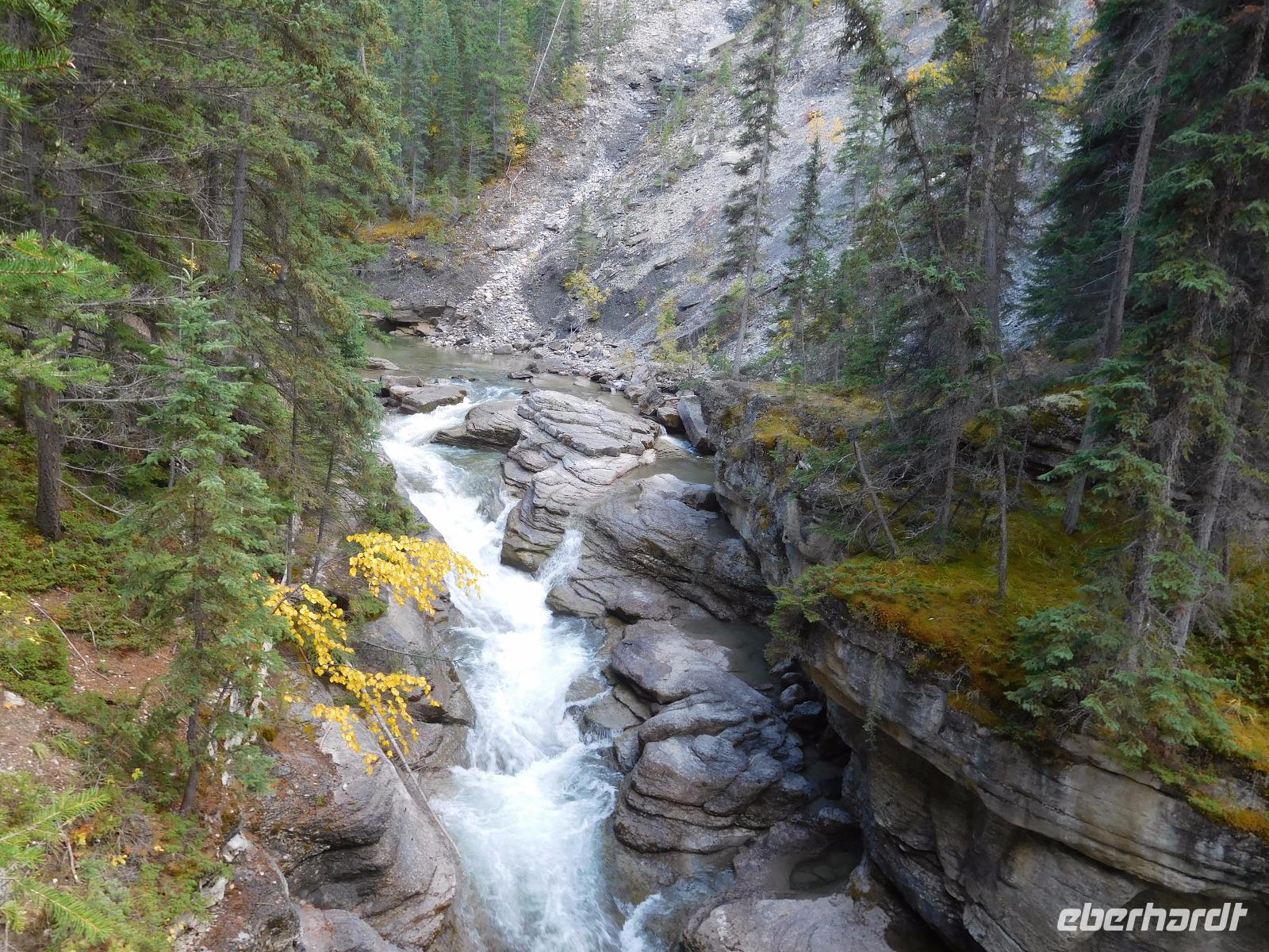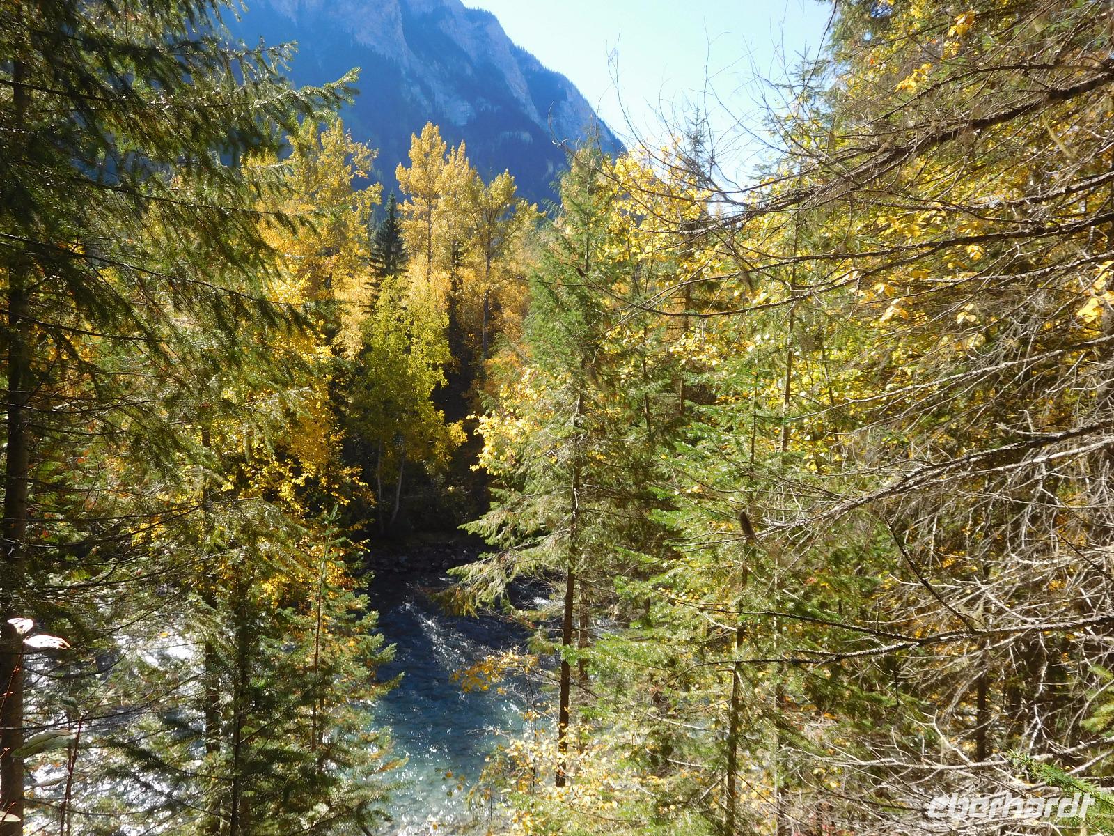 Den Zauber des Ortes im Herzen verabschiedeten wir uns von Fahrer Bob und begrüßten Abi mit dem neuen Bus. Dieser fuhr uns direkt zum nächsten Naturgenuss: zum Maligne Canyon. Hier spazierten wir entlang fantastisch anzuschauender Flusswindungen hinunter bis zur sogenannten "Fünften Brücke" (denn zugegebenermaßen hatte keine von uns gezählt, wir glaubten einfach den Schildern). Die strahlende Sonne war unser Begleiter und wärmte Gemüter und ließ die Bäume besonders golden für uns erstrahlen. Obwohl wir uns hier bestens aufgehoben fühlten, war es wiederum Zeit für unsere Lodges geworden.