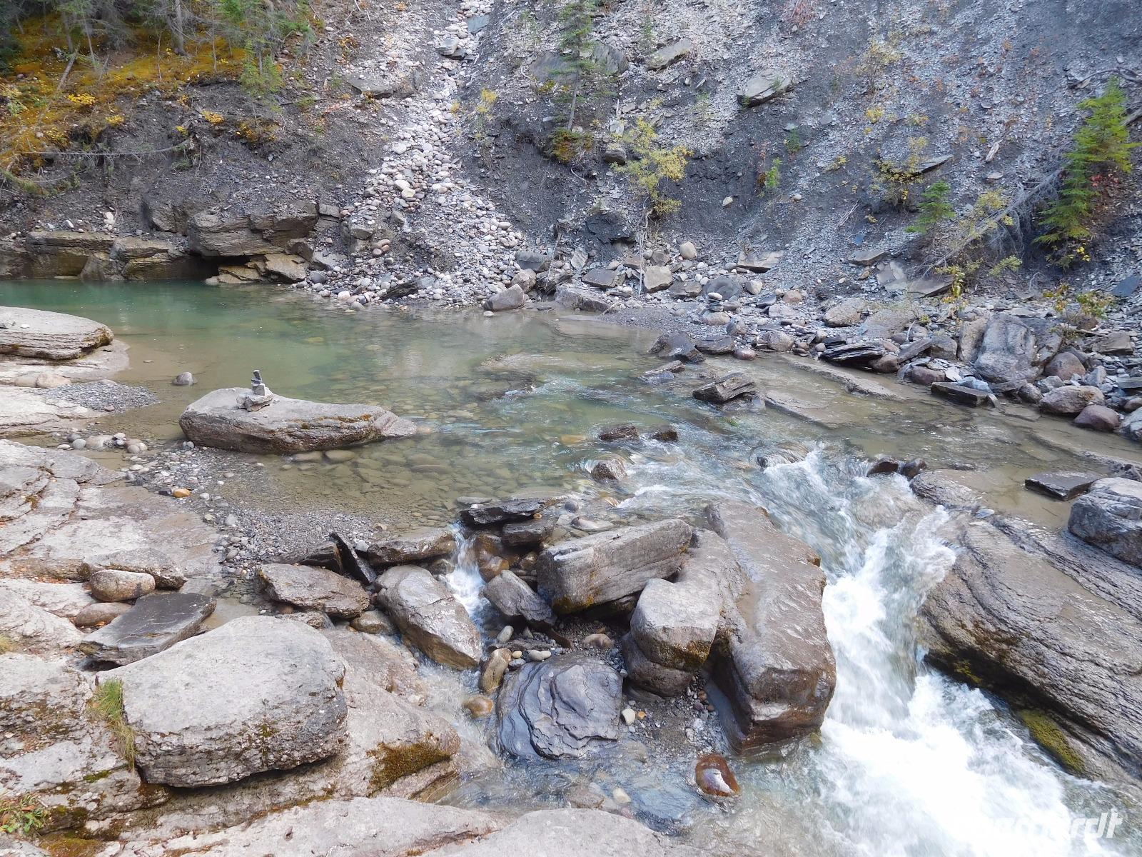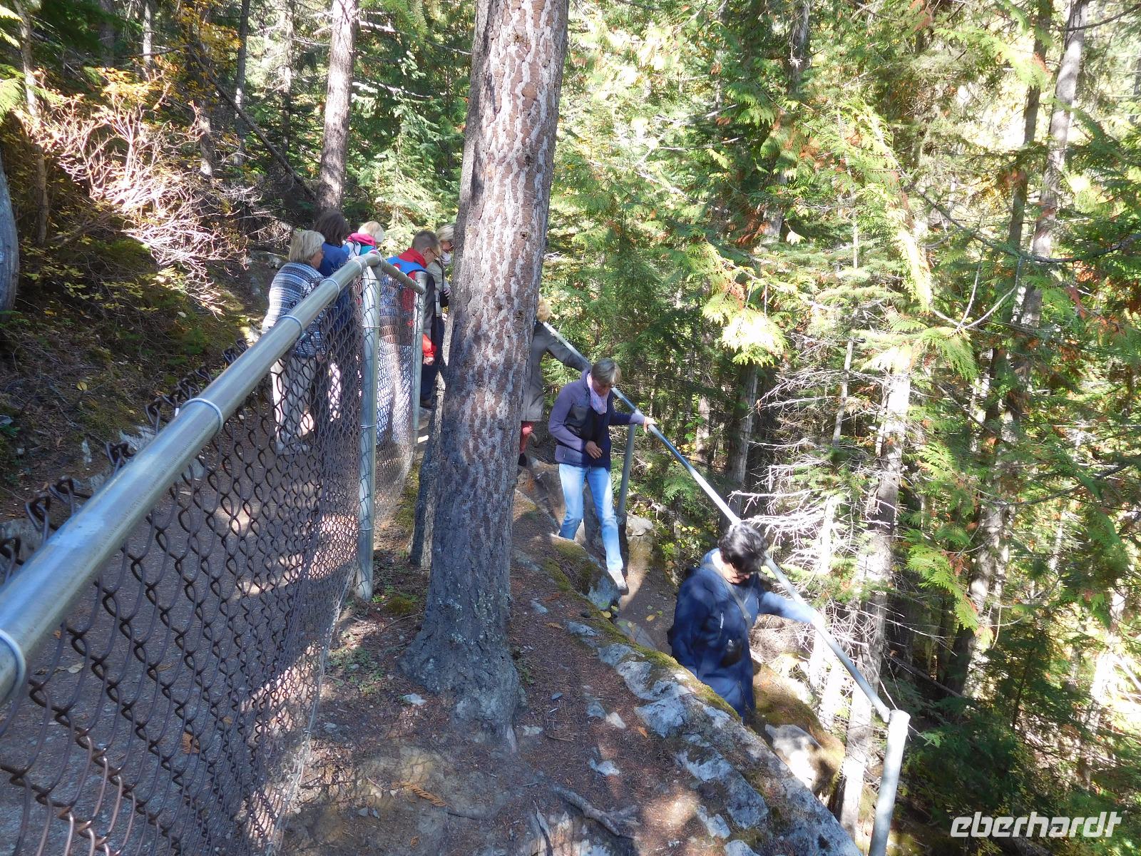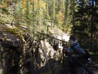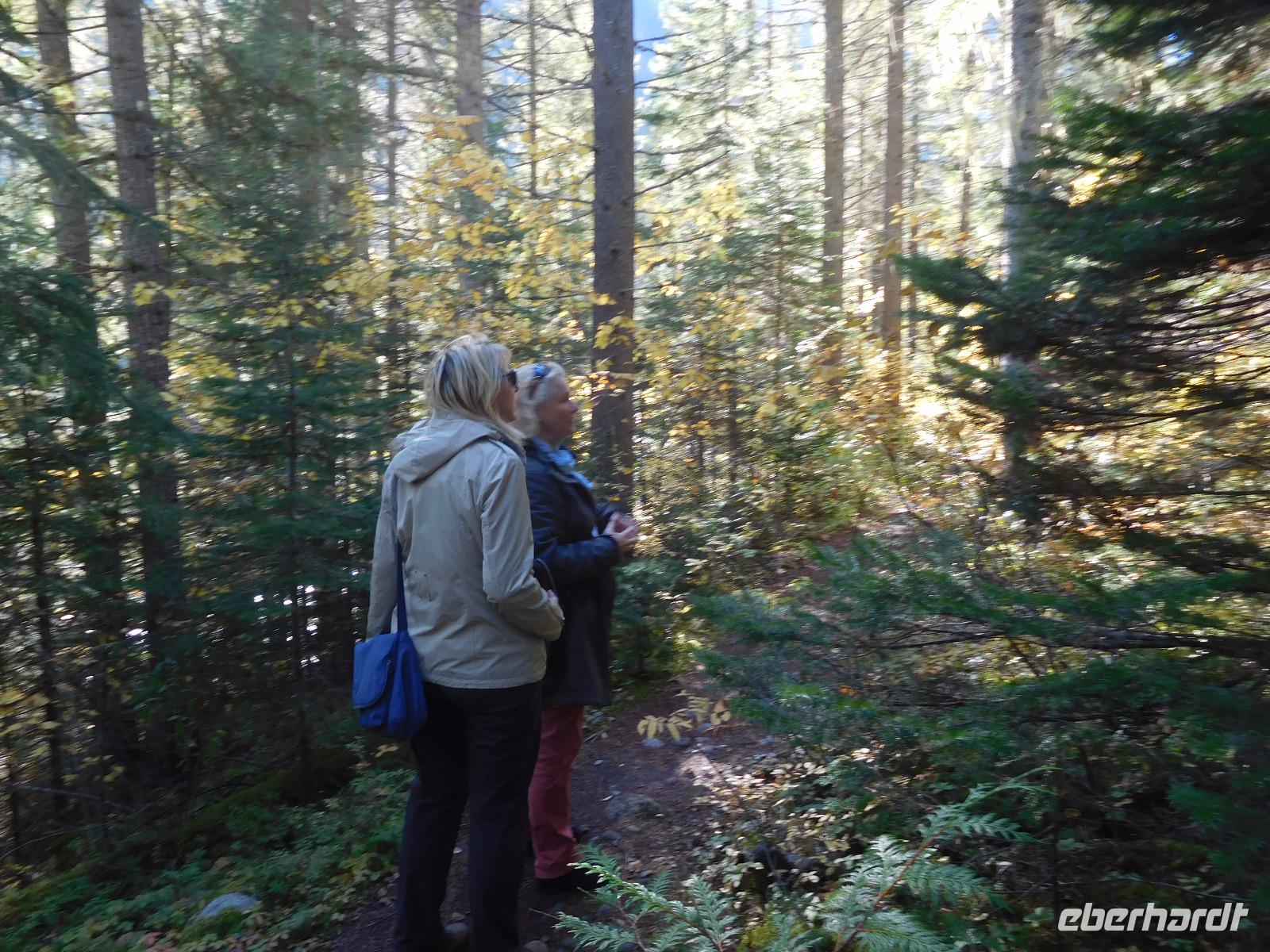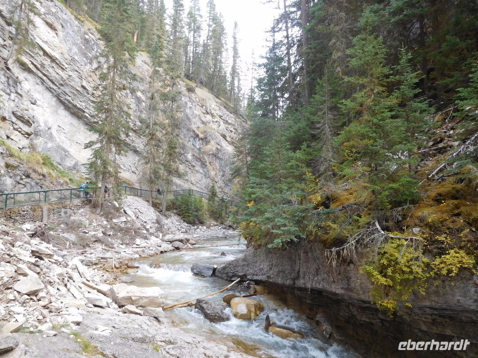 Den Zauber des Ortes im Herzen verabschiedeten wir uns von Fahrer Bob und begrüßten Abi mit dem neuen Bus. Dieser fuhr uns direkt zum nächsten Naturgenuss: zum Maligne Canyon. Hier spazierten wir entlang fantastisch anzuschauender Flusswindungen hinunter bis zur sogenannten "Fünften Brücke" (denn zugegebenermaßen hatte keine von uns gezählt, wir glaubten einfach den Schildern). Die strahlende Sonne war unser Begleiter und wärmte Gemüter und ließ die Bäume besonders golden für uns erstrahlen. Obwohl wir uns hier bestens aufgehoben fühlten, war es wiederum Zeit für unsere Lodges geworden.
