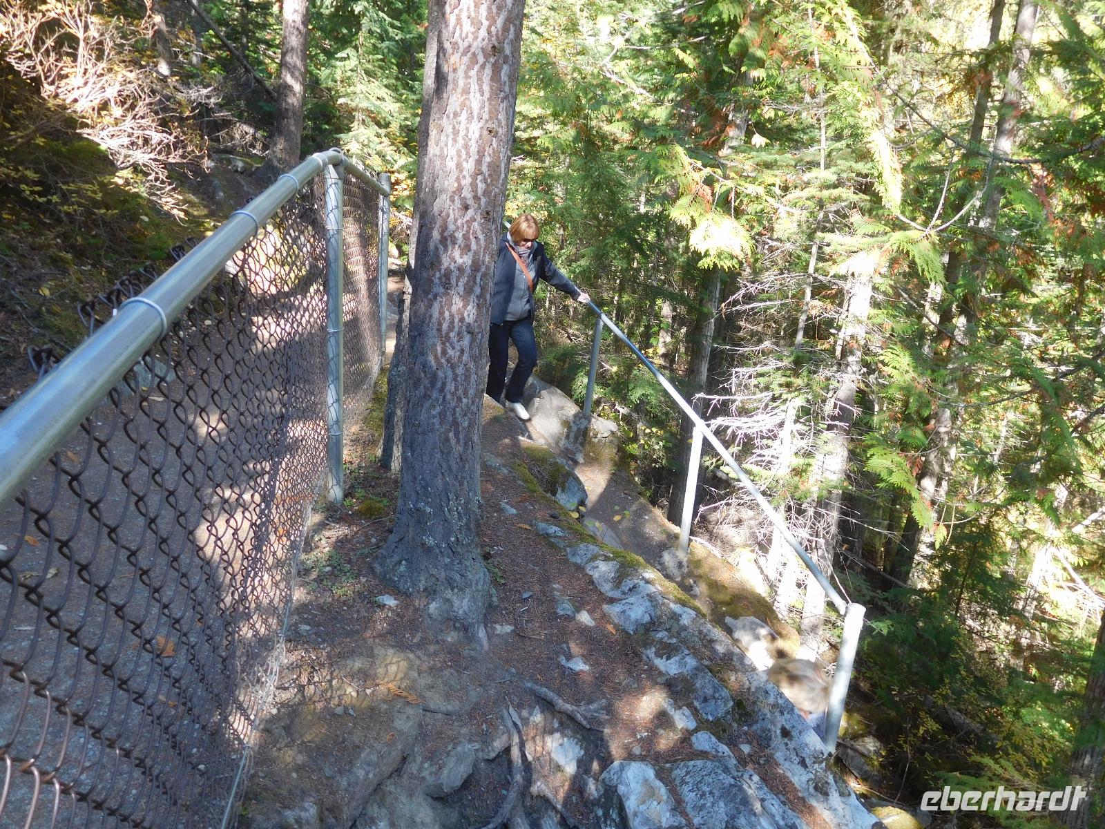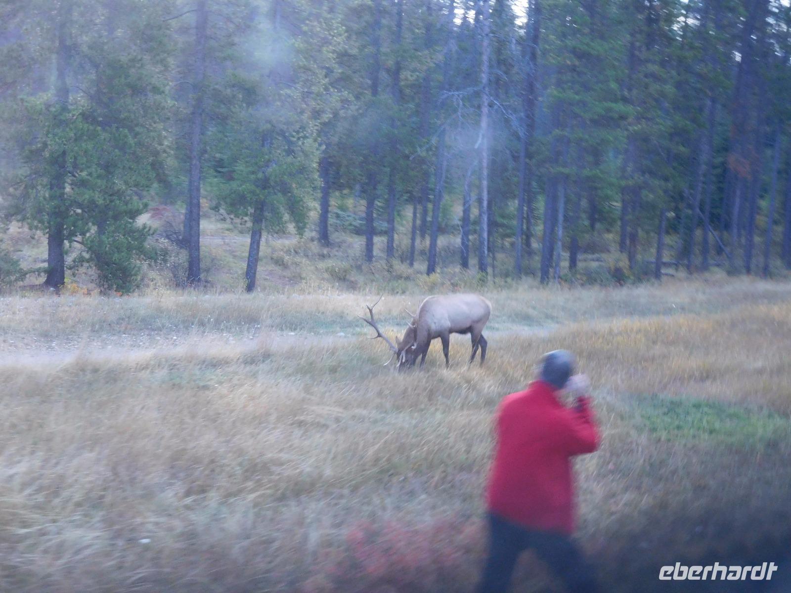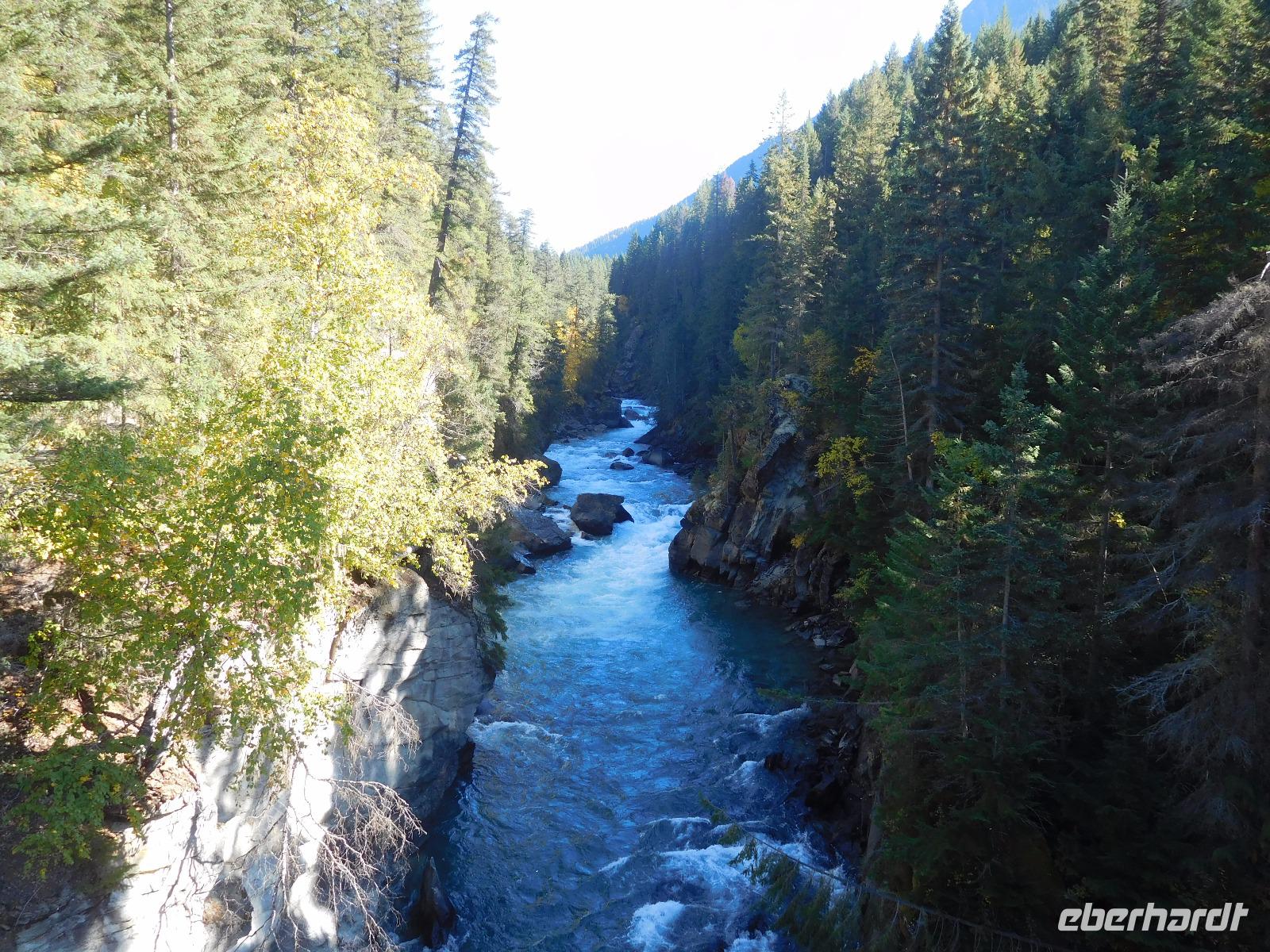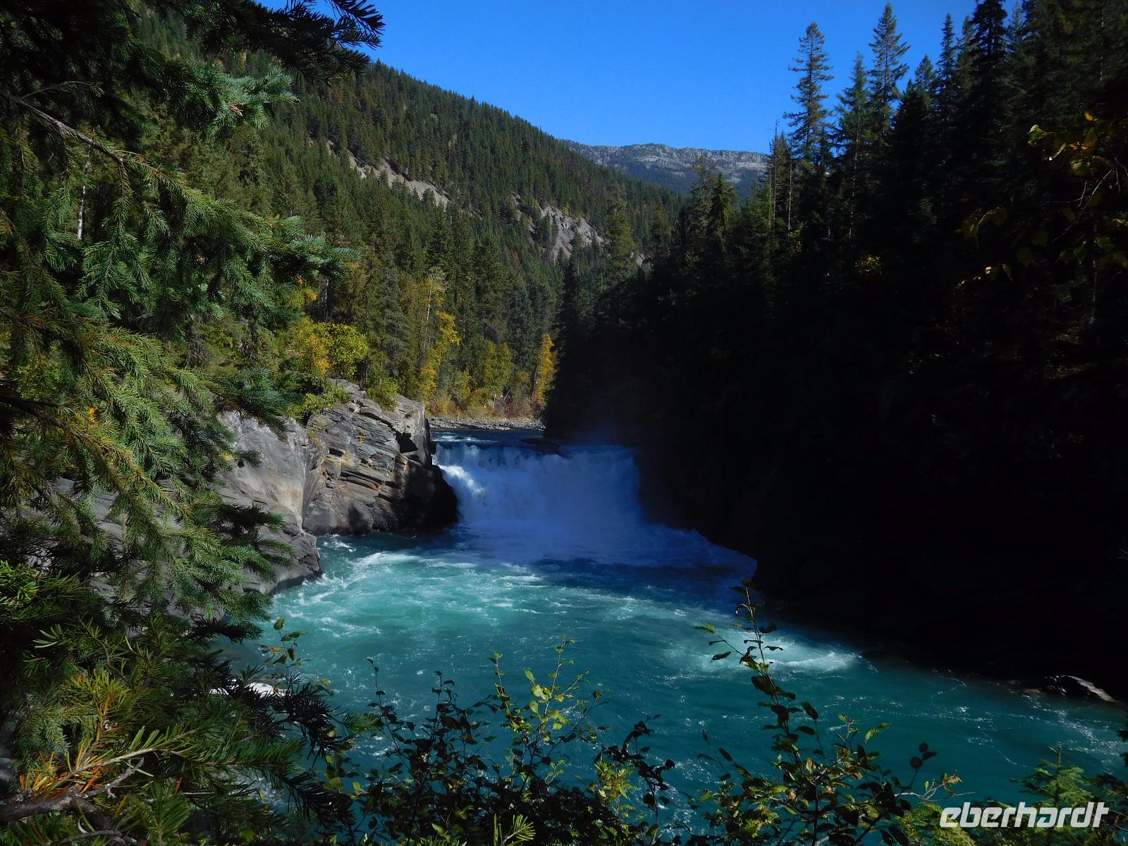 Viel Fahrt stand uns auch heute bevor, wollten wir doch heute weiter in den Kanadischen Westen gelangen. Zuvor statteten wir den Spahat Falls bei Clearwater einen Besuch ab. Es war faszinierend, wie der nadeldünne Wasserfall sich wie ein Messer durch das Gestein tief in den Abgrund schnitt. Gegenüber wogte noch der Morgennebel durch das bewaldete Tal und verbreitete eine mystische Stimmung.