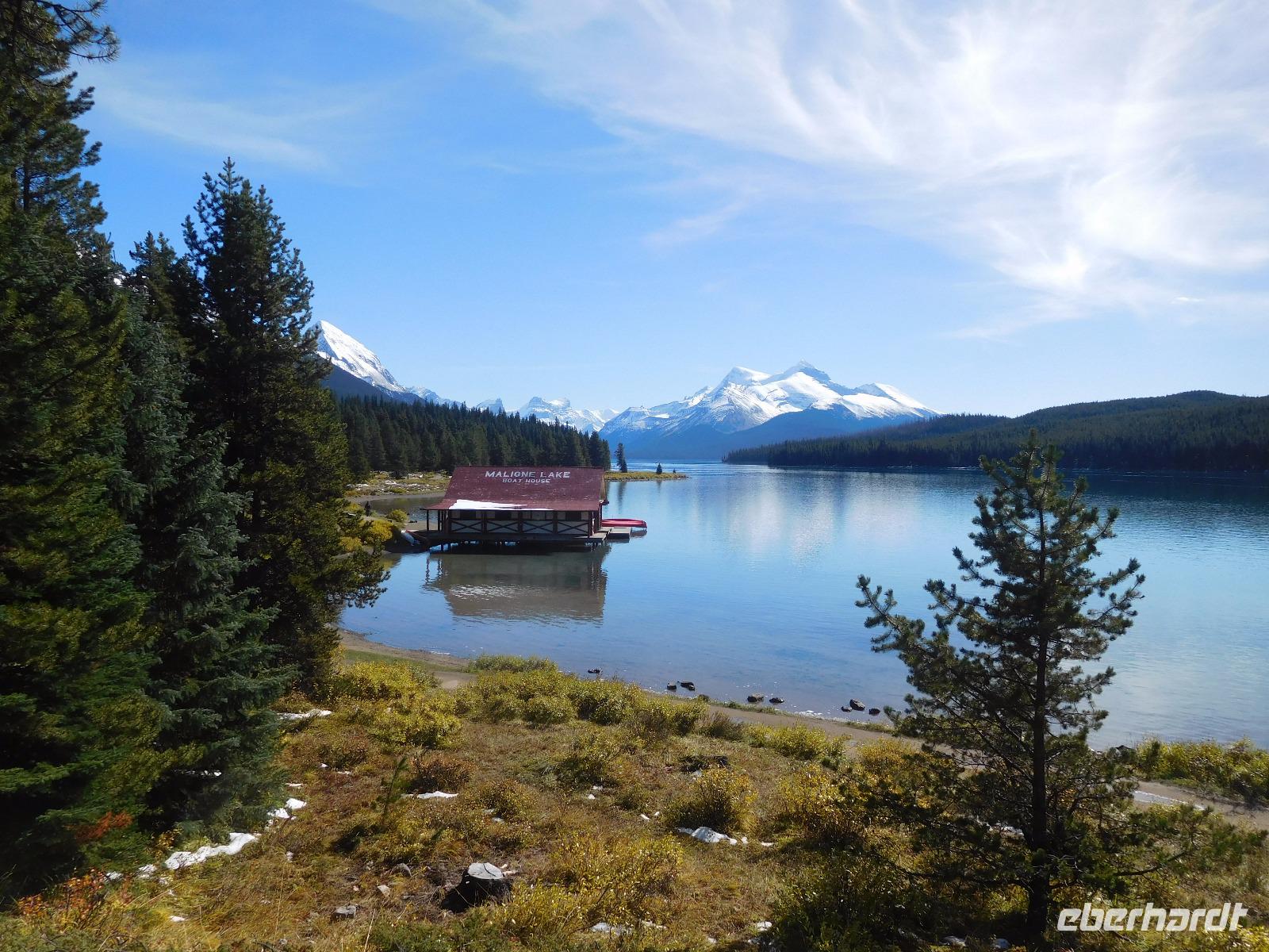 Nicht weit von hier liegt der Maligne Lake, die von der mutigen Amerikanerin Mary Schaefer entdeckt wurde - und der eines der berühmtesten Fotomotive Kanadas beherbergt.