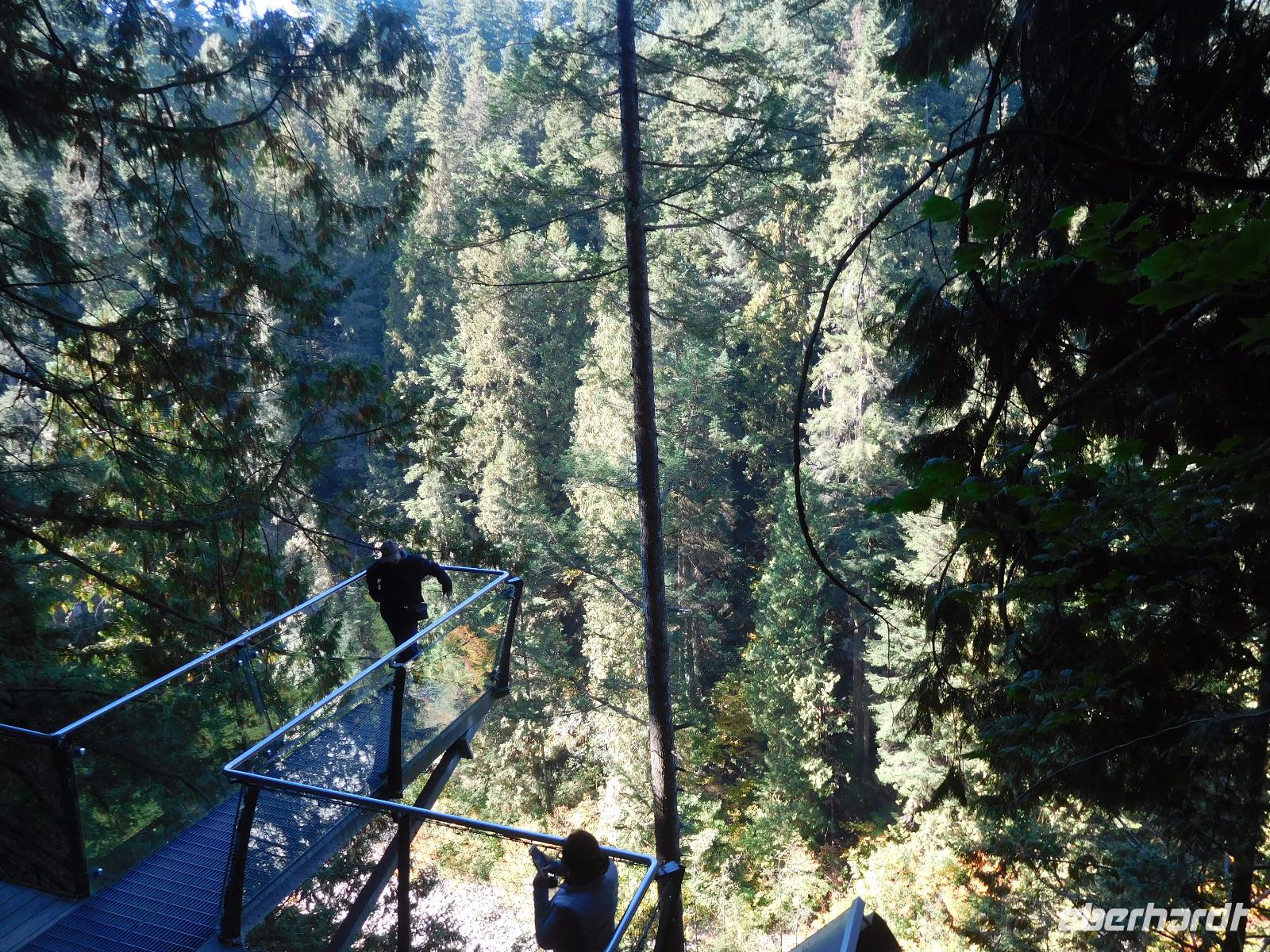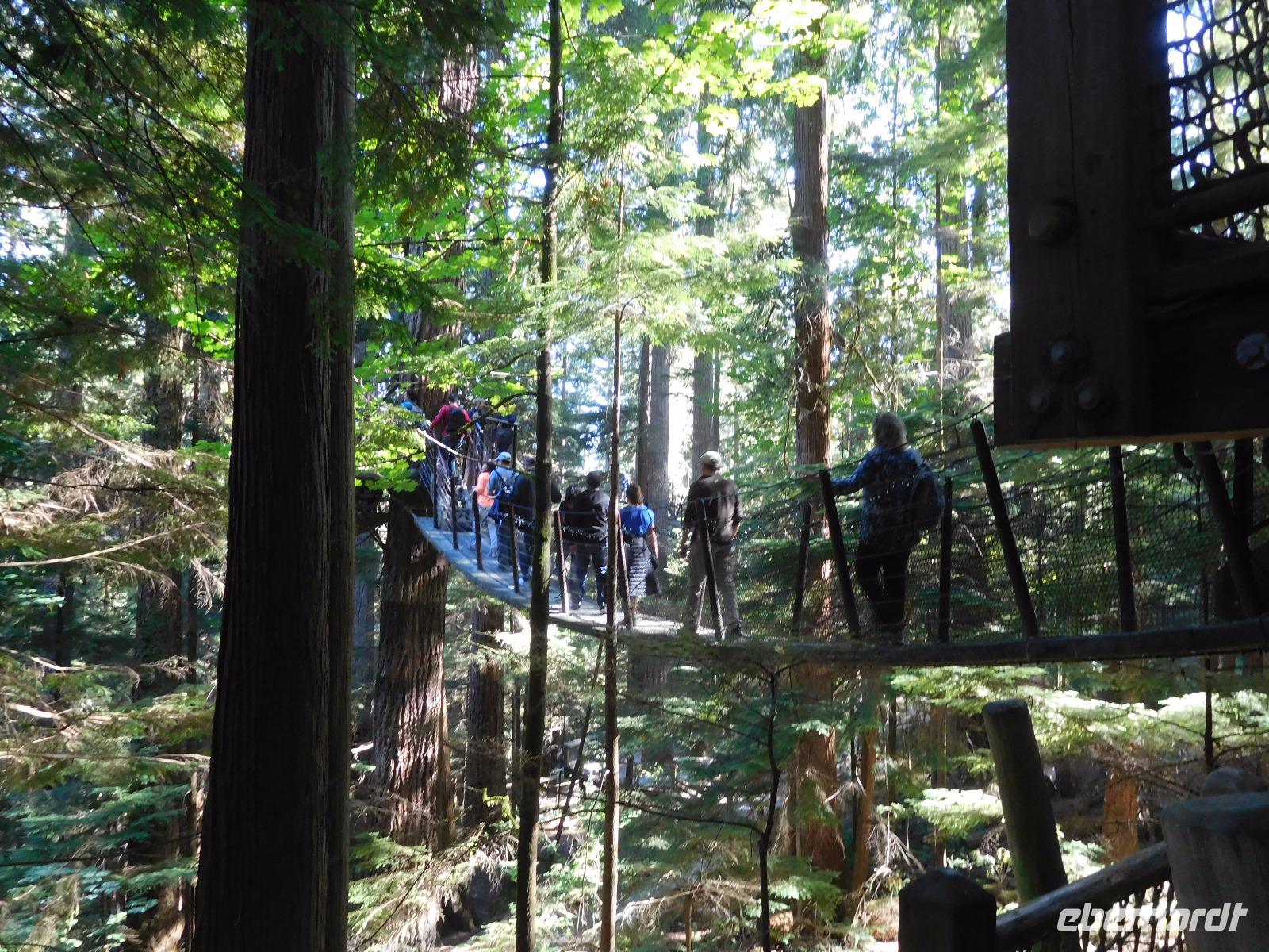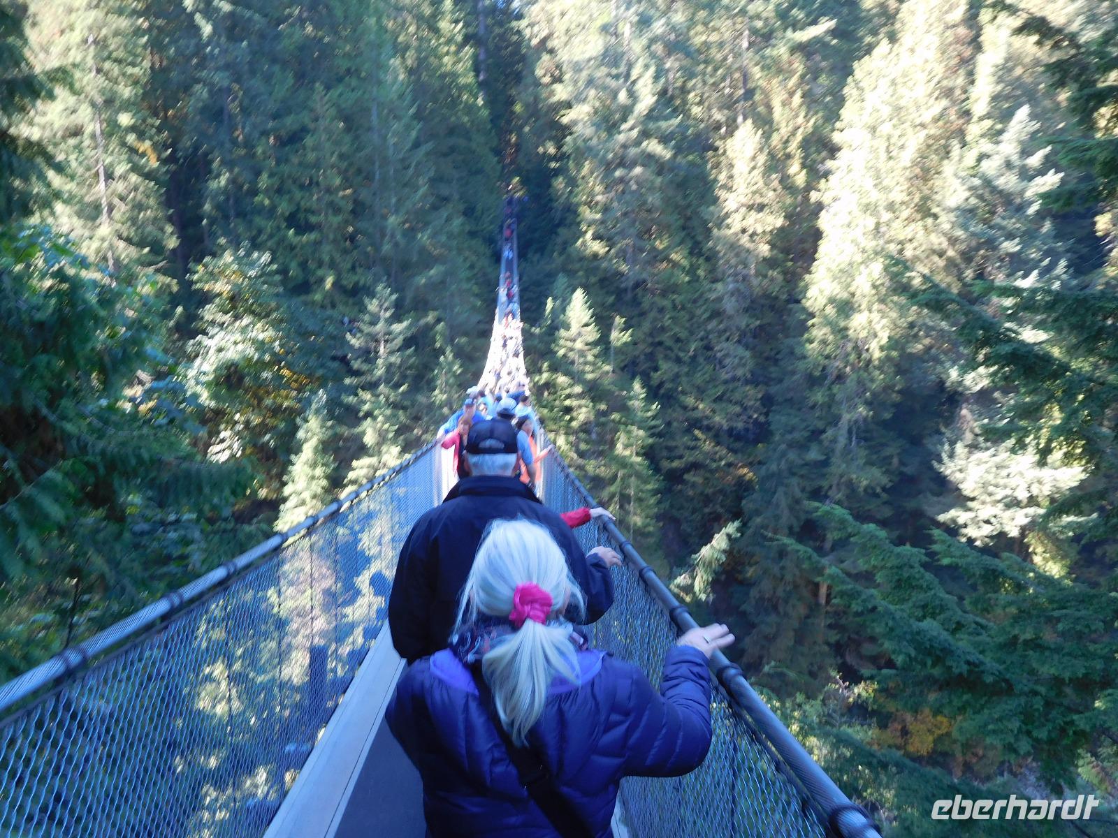 Nerven mussten wir bei der Capilano Bridge beweisen, denn beim Überqueren des Tals schaukelte diese mächtige Hängebrücke schon deutlich merkbar. Im Capilano Suspension Park konnten wir der kanadischen Baumpracht auch wunderbar nahe kommen - und zwar auf einem Baumwipfelpfad, der viele Meter über dem Boden eine ganz spannende Perspektive eröffnete. Dort gibt es auch einen neuen Klippenpfad, der auf schmalem Grat über den Abgrund führt.