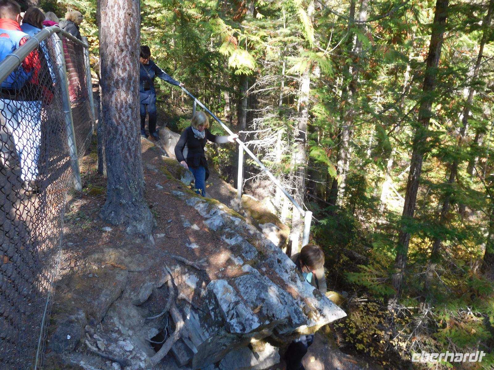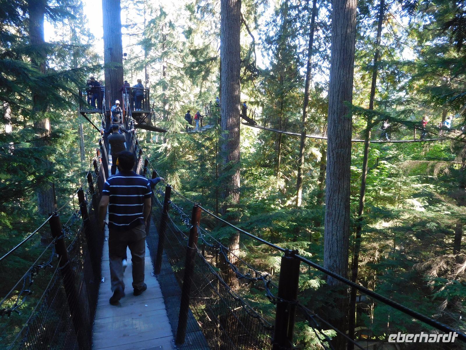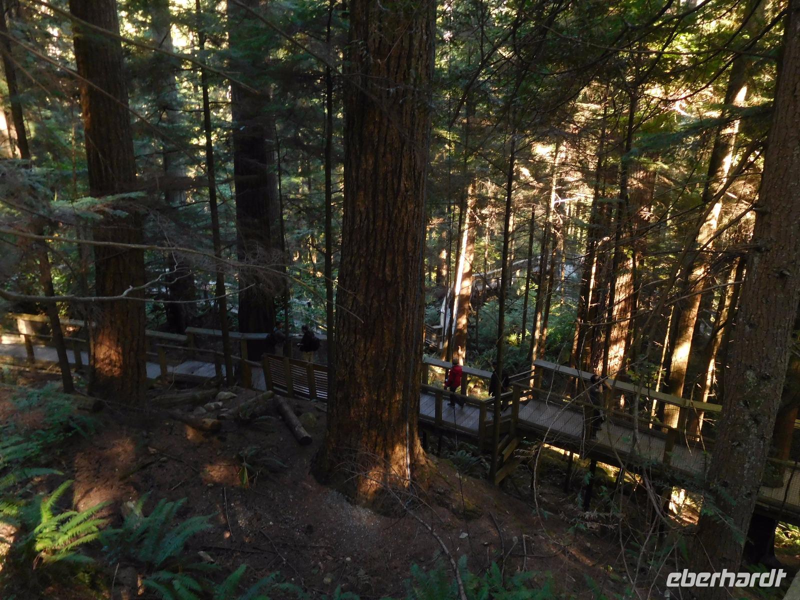 Nerven mussten wir bei der Capilano Bridge beweisen, denn beim Überqueren des Tals schaukelte diese mächtige Hängebrücke schon deutlich merkbar. Im Capilano Suspension Park konnten wir der kanadischen Baumpracht auch wunderbar nahe kommen - und zwar auf einem Baumwipfelpfad, der viele Meter über dem Boden eine ganz spannende Perspektive eröffnete. Dort gibt es auch einen neuen Klippenpfad, der auf schmalem Grat über den Abgrund führt.