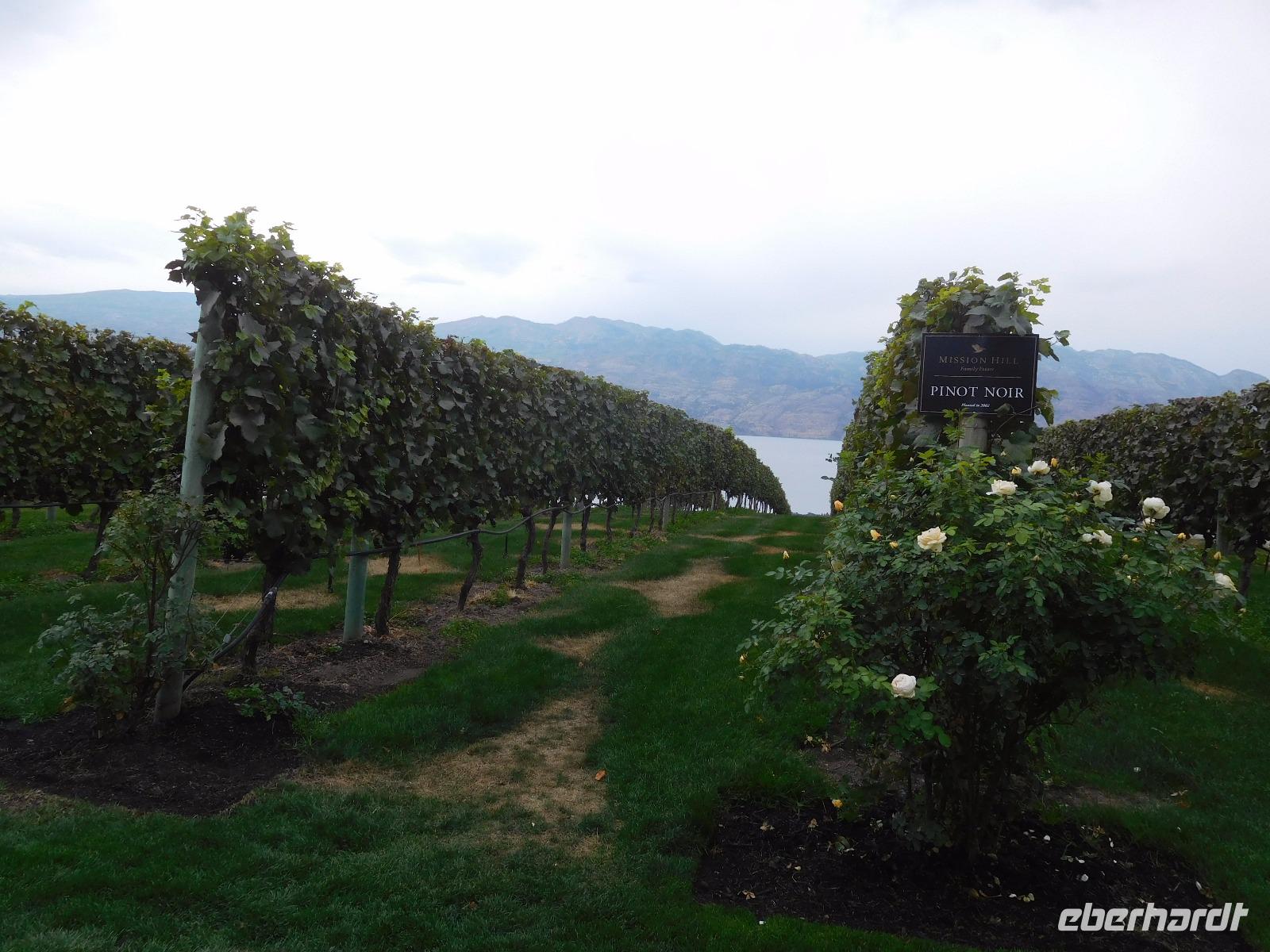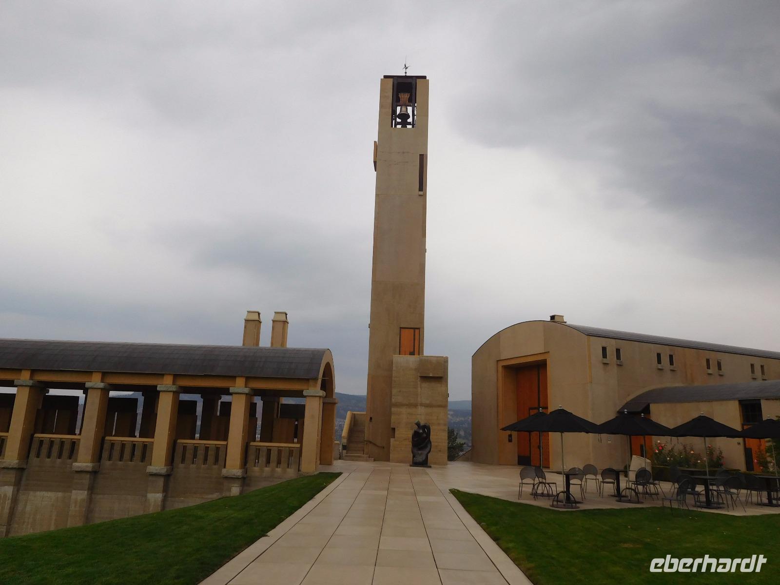 Leider war heute Marion sehr krank, sodass wir uns bei der Weiterfahrt dann sputen mussten. Immerhin stand ein besonderer Punkt auf dem Programm: Das Weingut Mission Hill Winery. Zuletzt von Kate und William besucht, ist dies eines der berühmtesten Weingüter in Kelowna. Für unsere europäischen Gemüter hätte diese riesige Anlage gern etwas traditioneller oder uriger gestaltet werden können. Nichtsdestotrotz ließen wir uns den Wein bei der kurzen Verkostung gut schmecken.