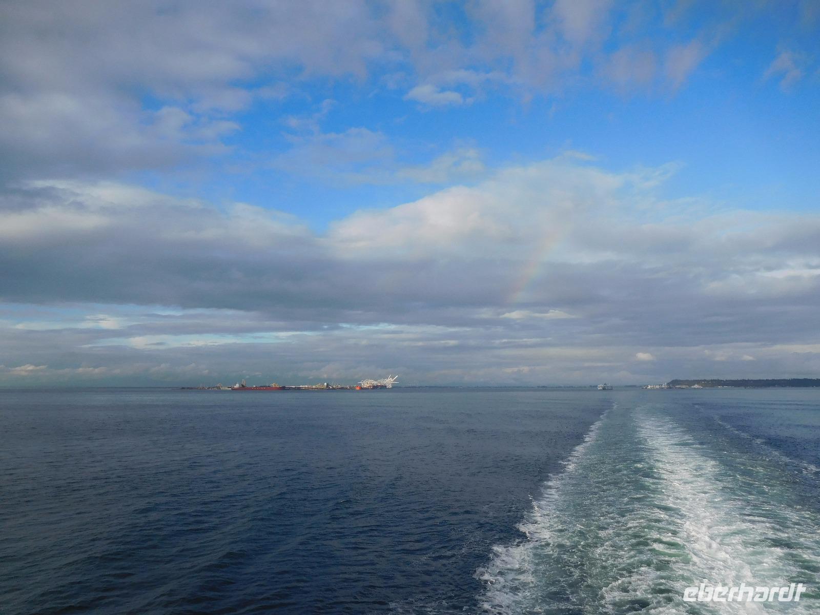 Zeitig starteten wir heute und fuhren wieder durch die Berge von Vancouver Island zu unserem Fährhafen, wo wir dann übersetzten. Am Nachmittag erreichten wir unser Hotel, das einen Steinwurf vom Strand entfernt war. So mussten wir das Meer nicht vermissen!