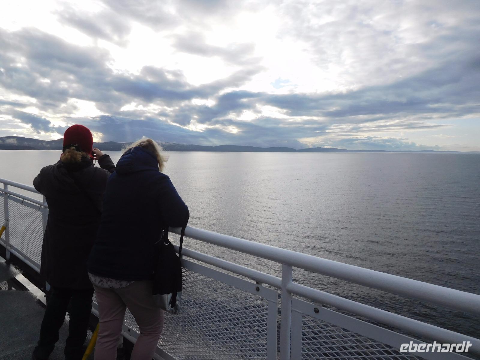 Die frische Seeluft beim Übersetzen tat dann richtig gut! Nur wenige Zeit dauerte es, bis wir schon in Victoria, der Heimatstadt von Reiseleiterin Marion, angekommen waren. Nun war es schon dunkel und wieder Zeit für ein leckeres Abendessen.