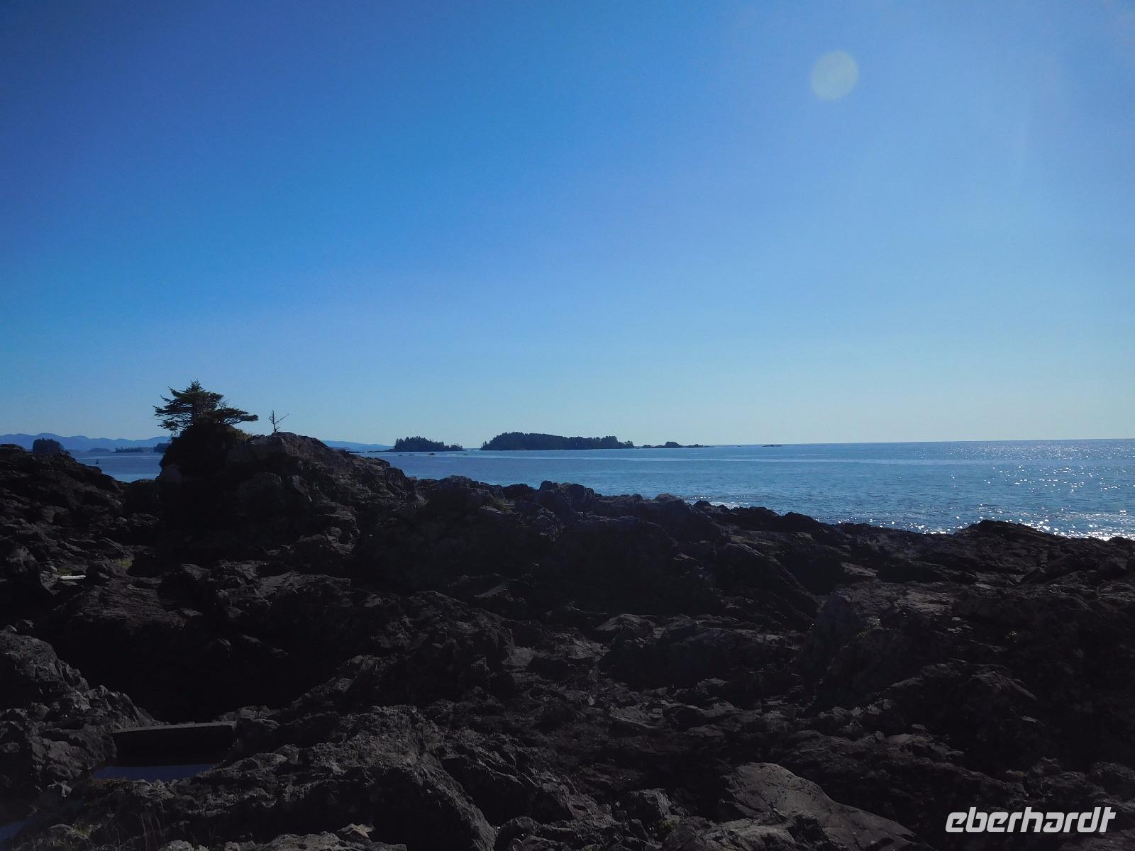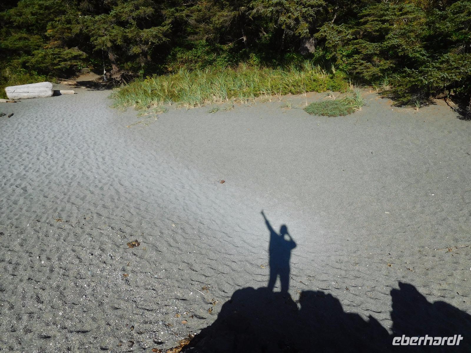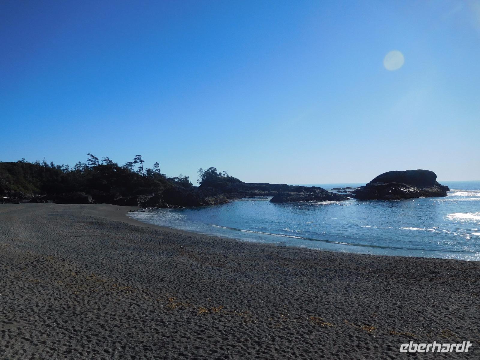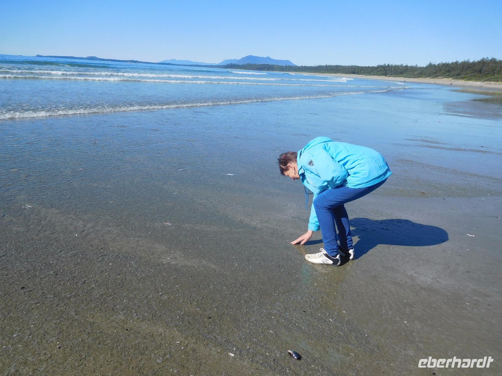 Am Amphitrite Leuchtturm liefen wir ein kleines Stück dem Wild Pacific Way entlang, bevor wir uns auf einen schönen breiten Sandstrand für ein Picknick setzten. Und was war das - ragte da ein Walrücken aus dem Meer heraus?