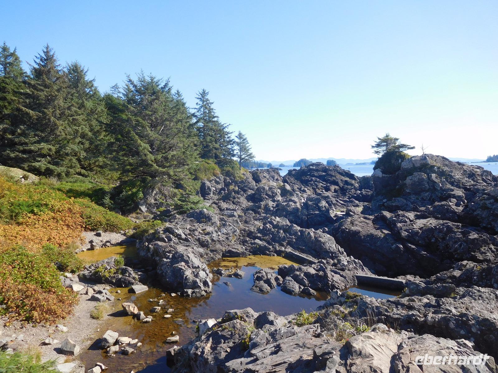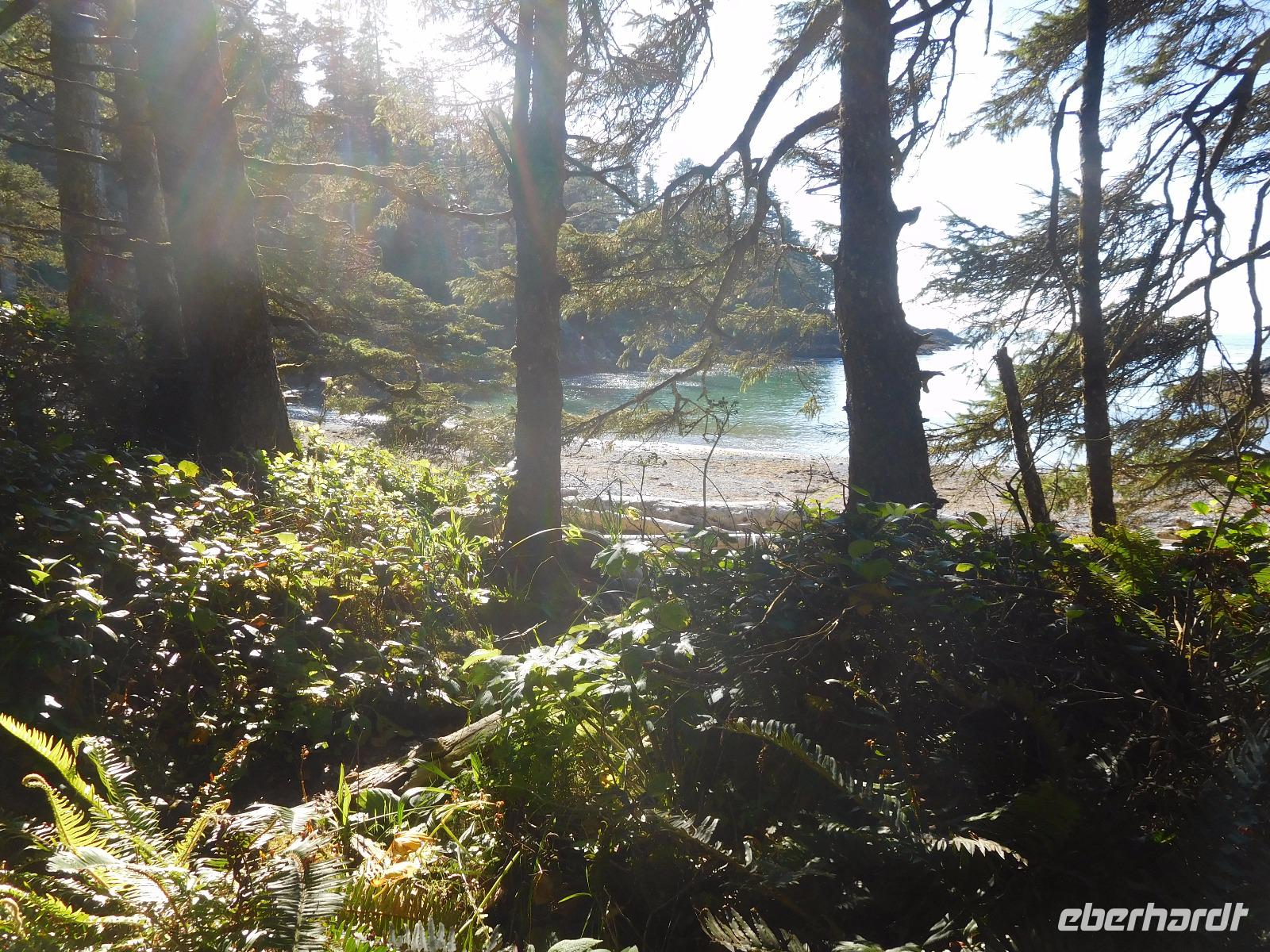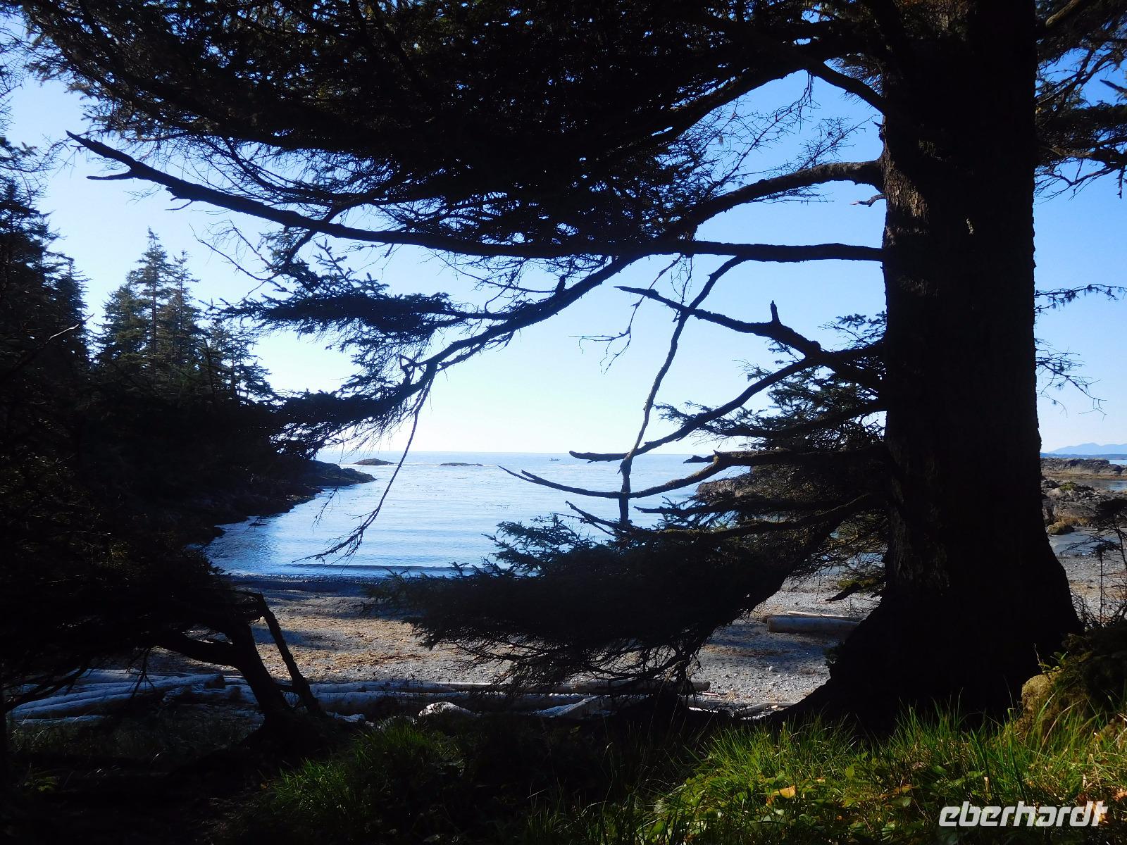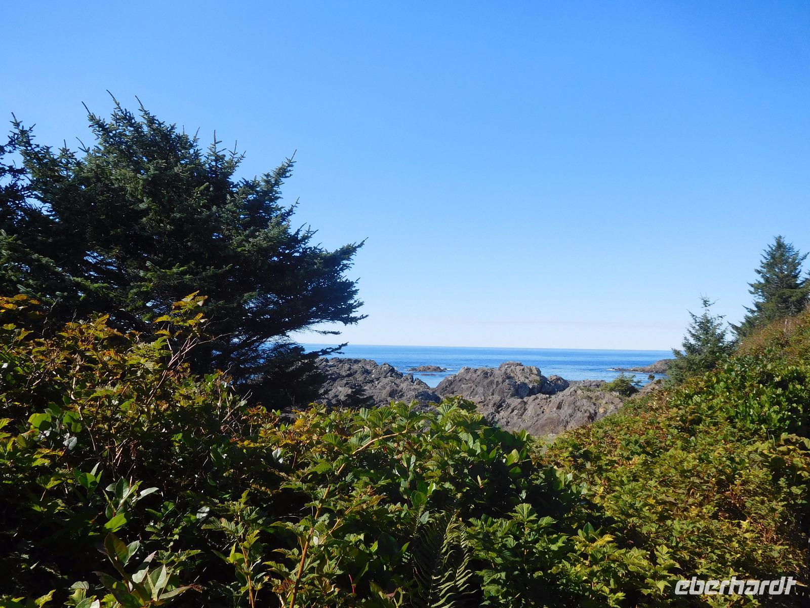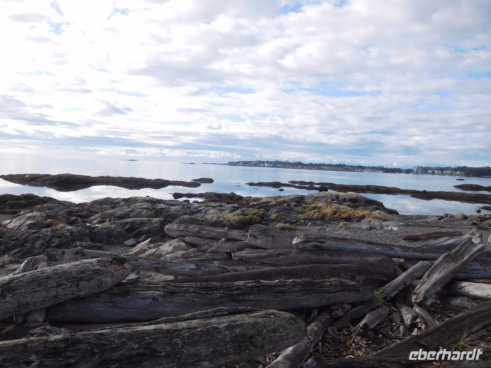Am Amphitrite Leuchtturm liefen wir ein kleines Stück dem Wild Pacific Way entlang, bevor wir uns auf einen schönen breiten Sandstrand für ein Picknick setzten. Und was war das - ragte da ein Walrücken aus dem Meer heraus?