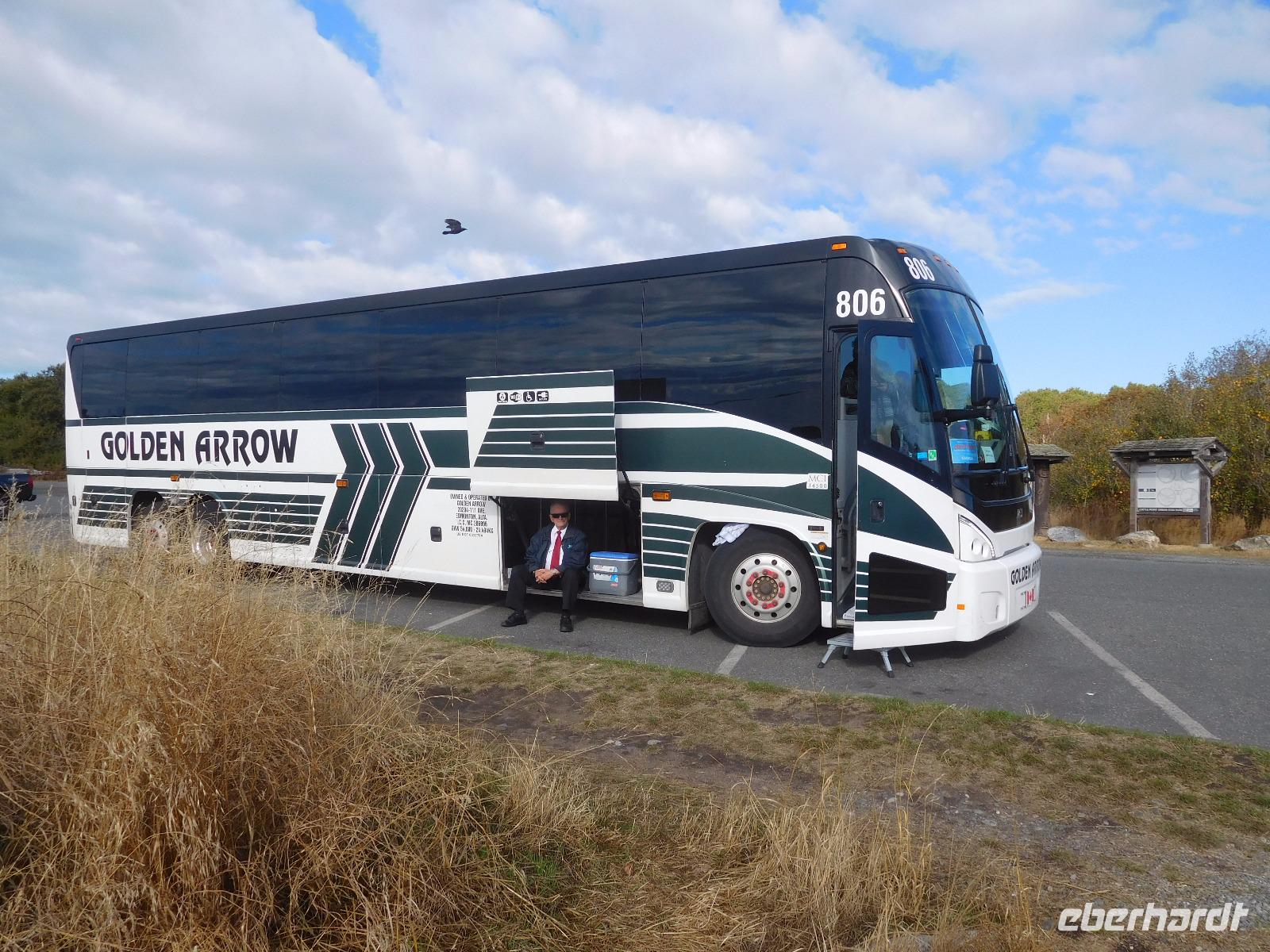 Nach diesem erholsamen Tag holte uns Busfahrer Abi wieder ab - und wer überraschte uns auf der Rückfahrt? Ein Schwarzbär spazierte gemütlich über die Straße, leider fühlte er sich durch den Bus so gestört, dass wir nicht schnell genug für einen Fotobeweis waren.
