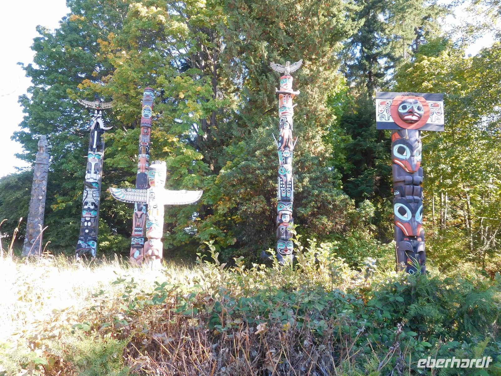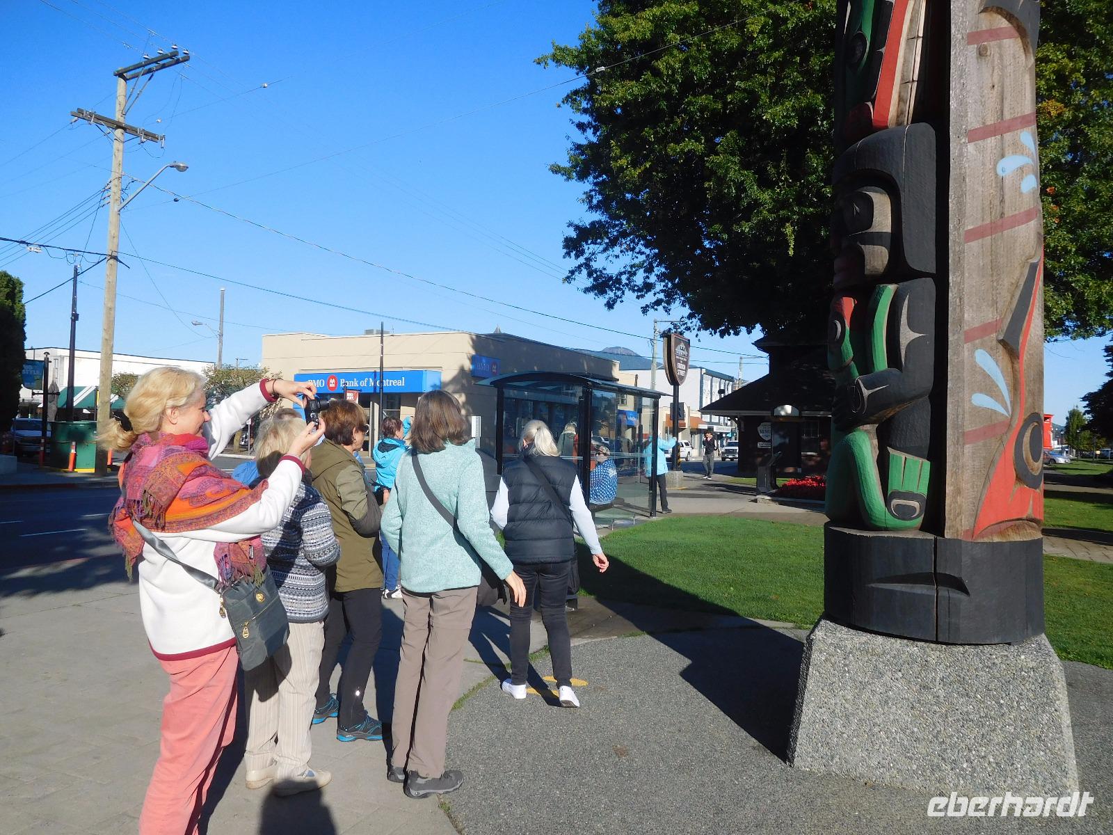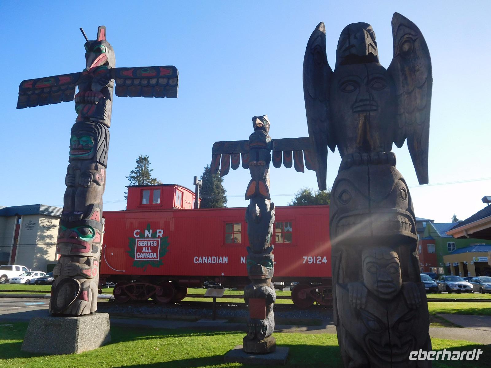 Heute würde sich uns Westkanada wieder von einer ganz anderen Seite präsentieren: Wir reisten weiter auf Vancouver Island und wurden in der unaufgeregten Kleinstadt Duncan Zeuge von der beeindruckenden Schnitzkunst der hiesigen First Nations. Überall in der Stadt warteten riesige Totempfähle darauf, unser nächstes Fotomotiv zu werden.