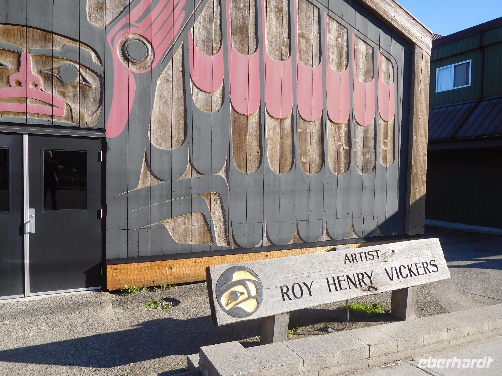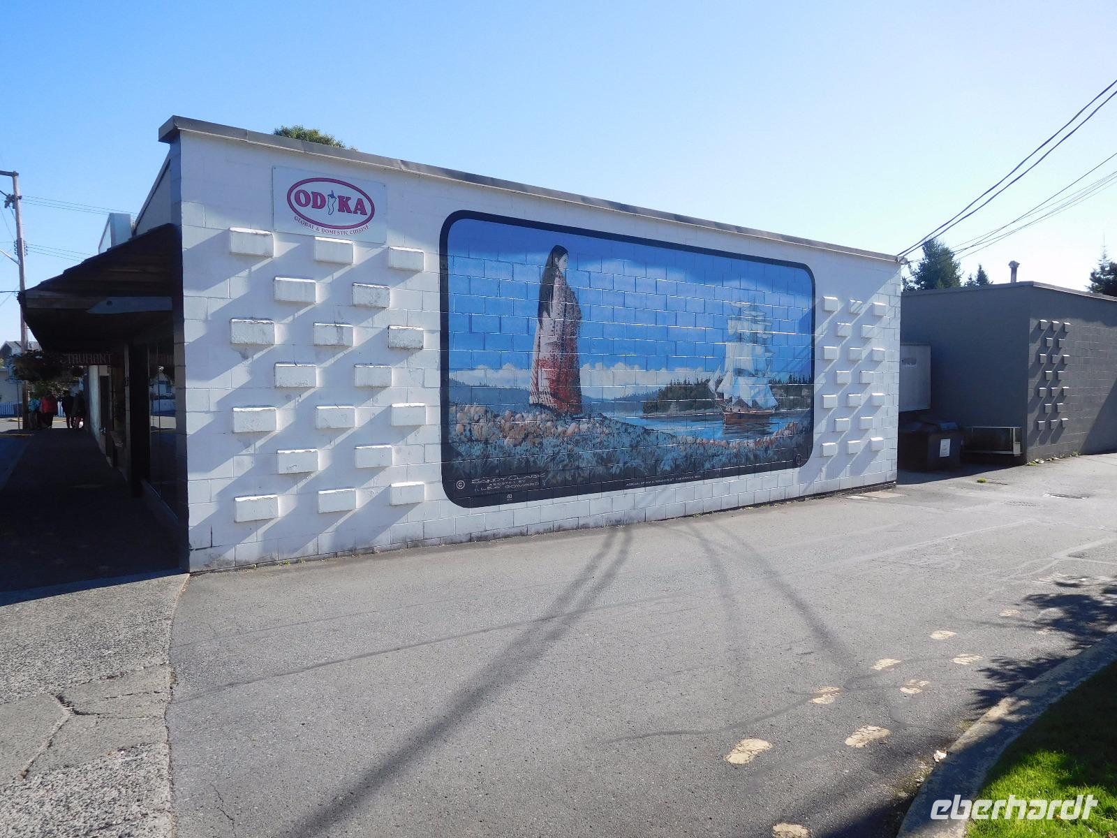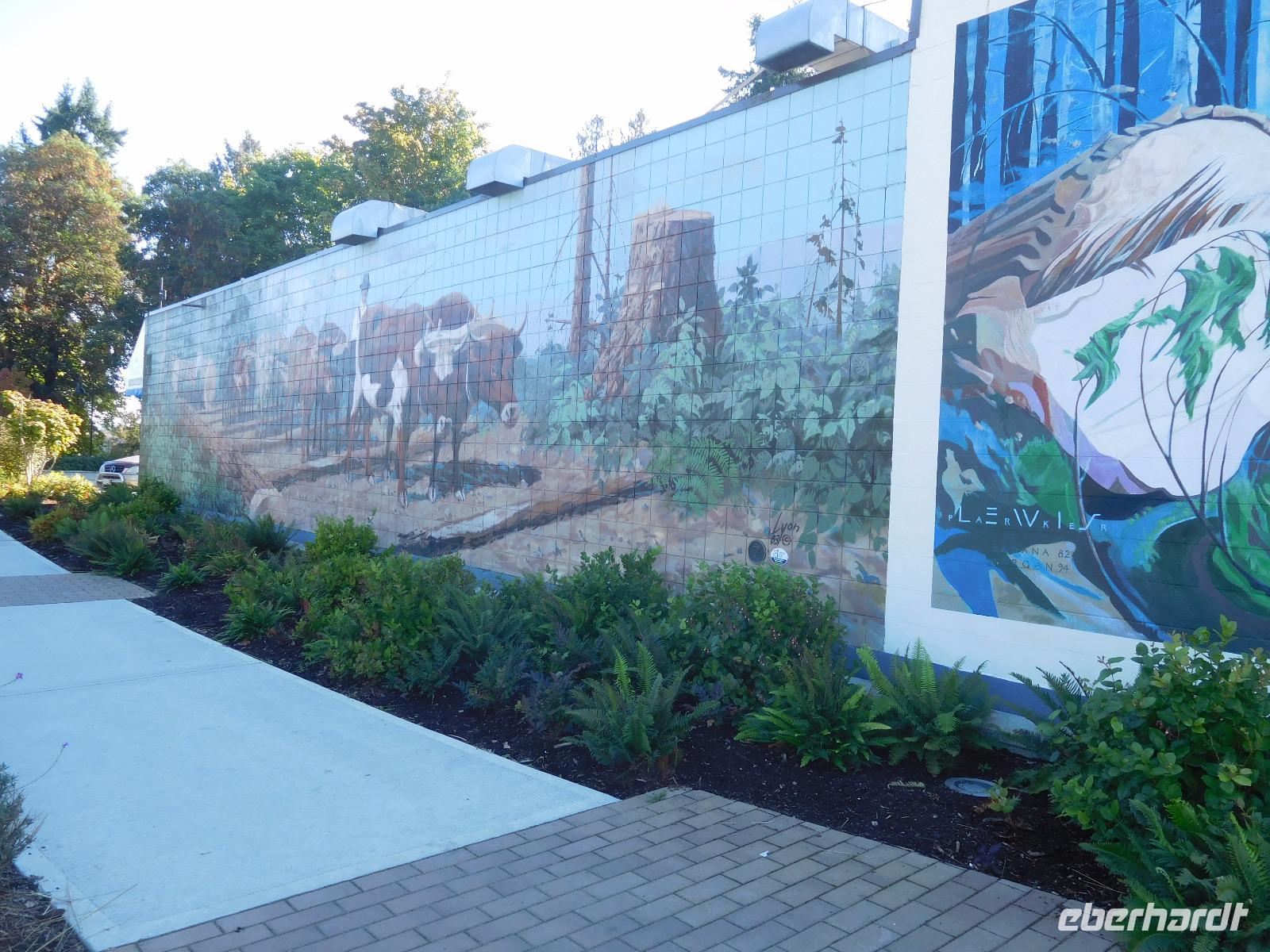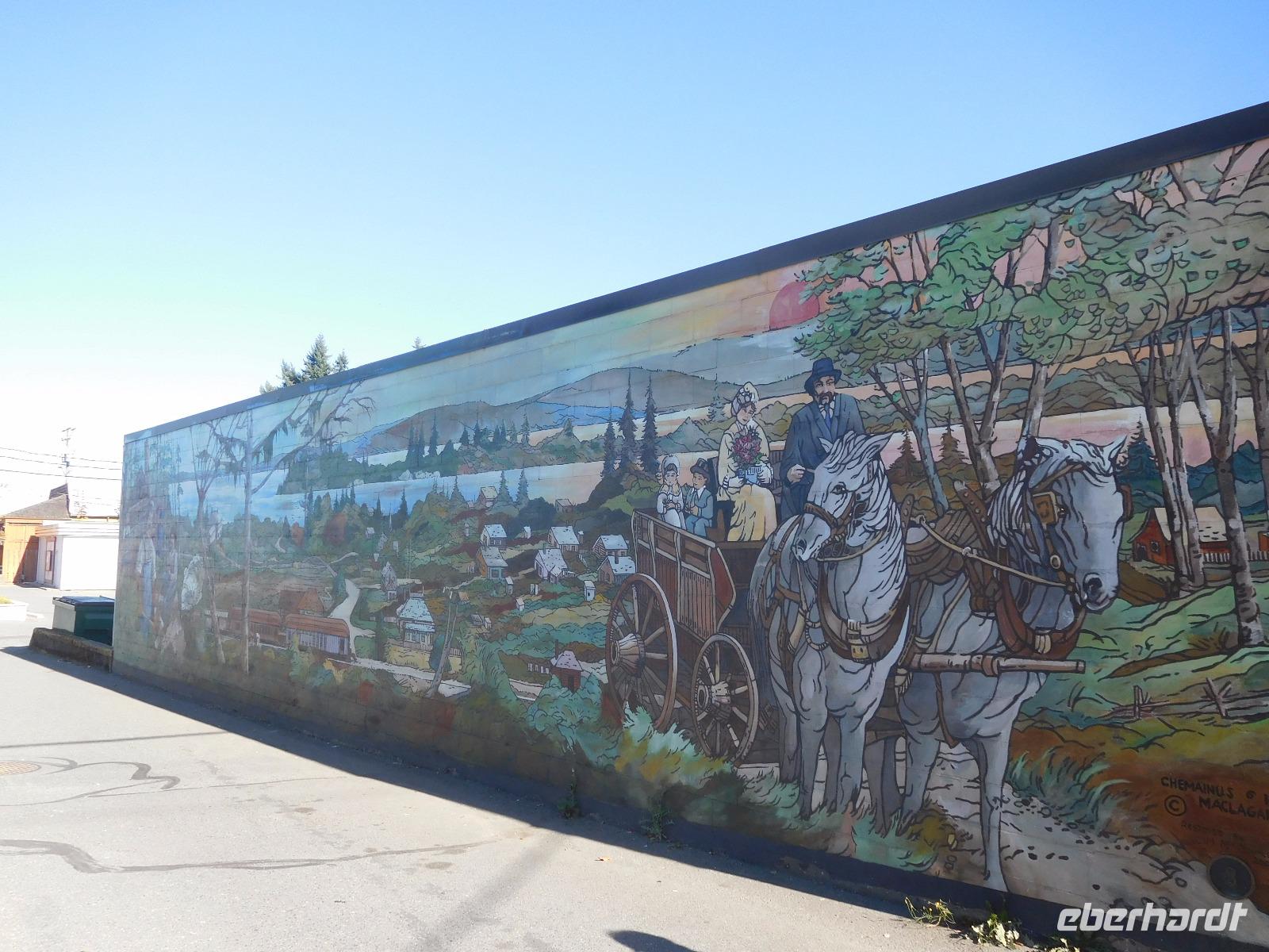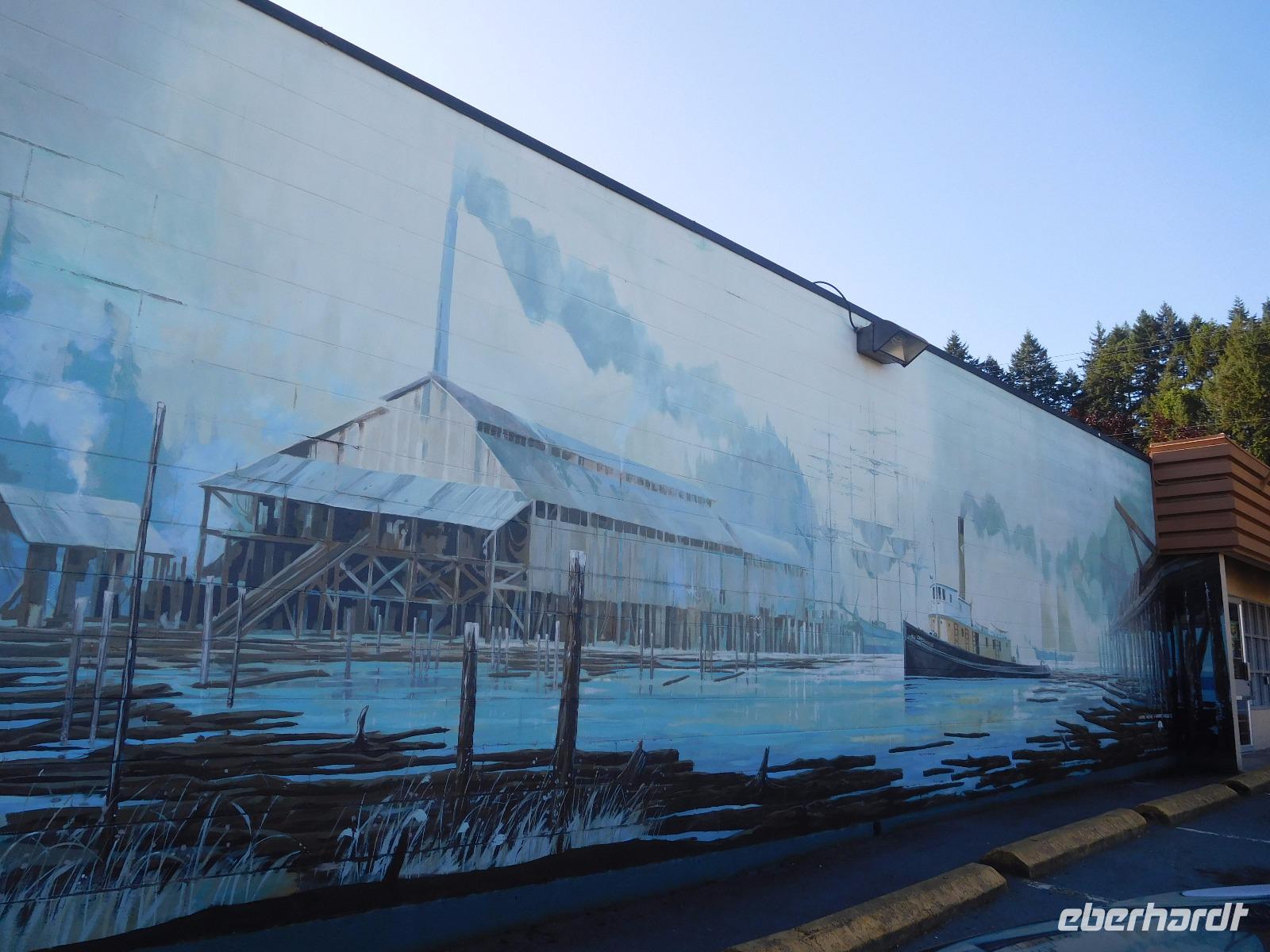 Kunstvoll präsentierte sich auch das besucherfreudige Städtchen Chemainus, an dessen Hauswänden sich Landschaften und Handwerker, Geschichten und Porträts tummelten. Da musste man schon aufpassen, wohin man trat, wenn man durch die Galerie gewordene Stadt flanierte.