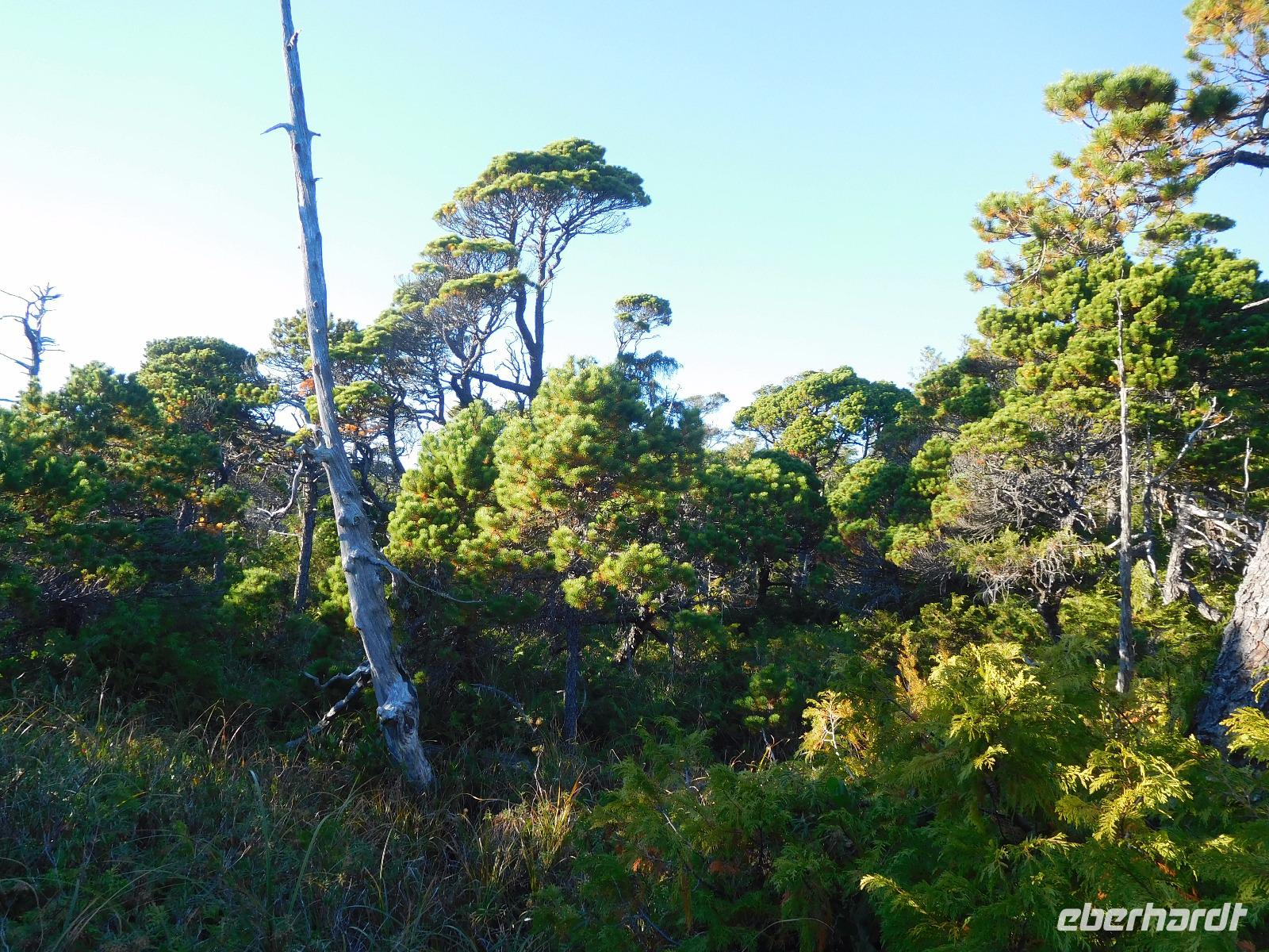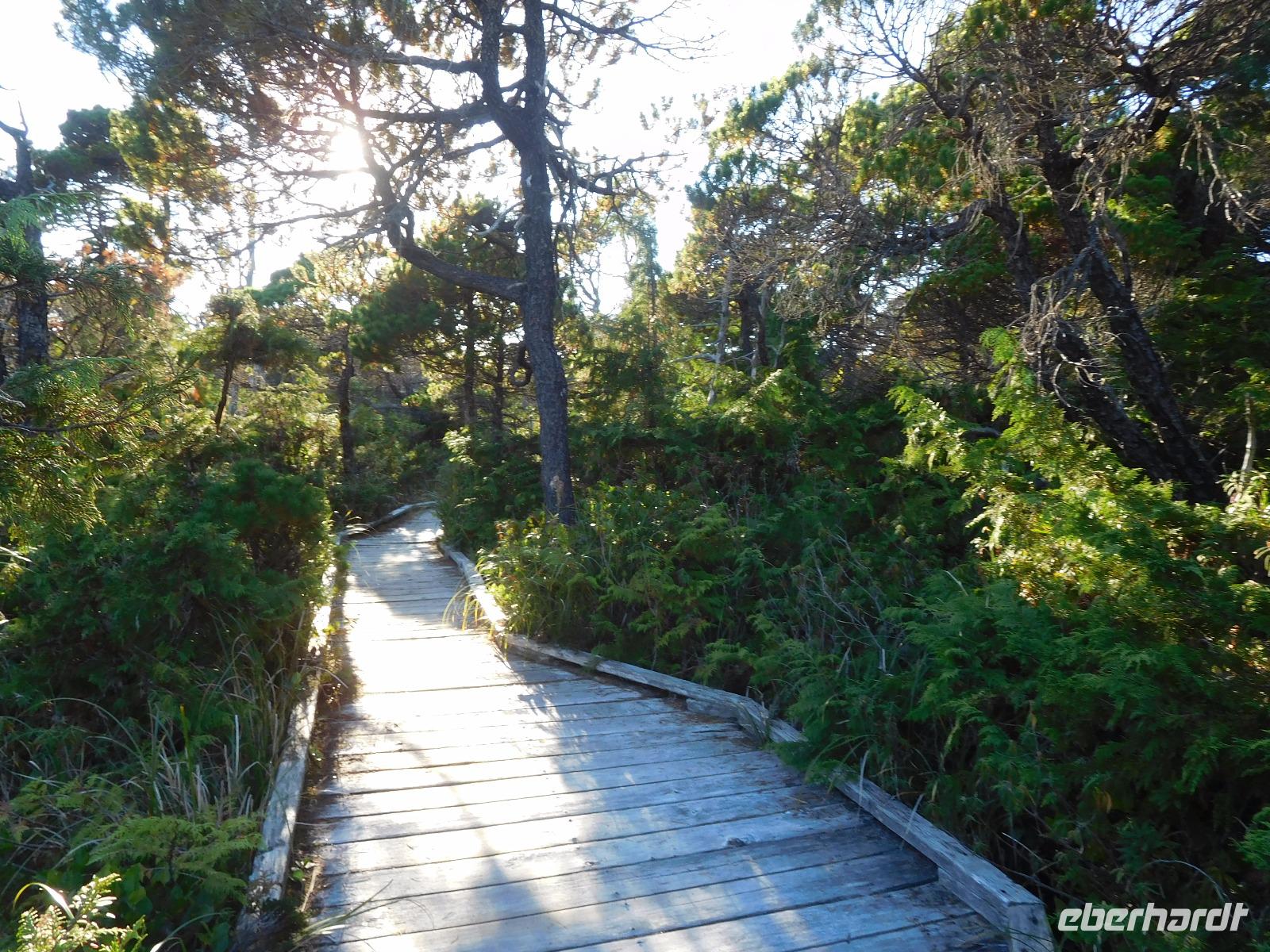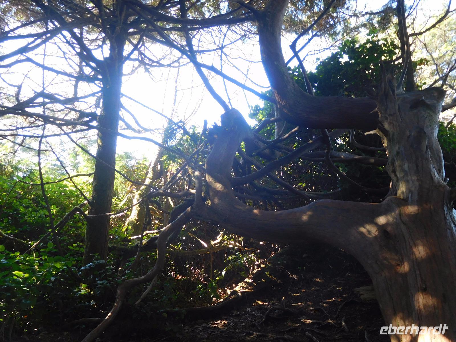 Anschließend zeigte uns Marion einen ganz anderen Wald - wie natürliche, sehr knorrige Bonsai wuchs unweit des Strandes ein skurriler Wald, durch das wir auf hölzernem Pfad liefen.