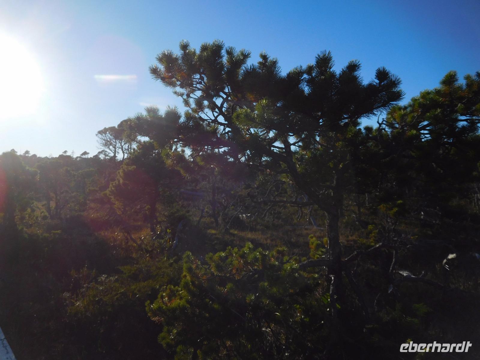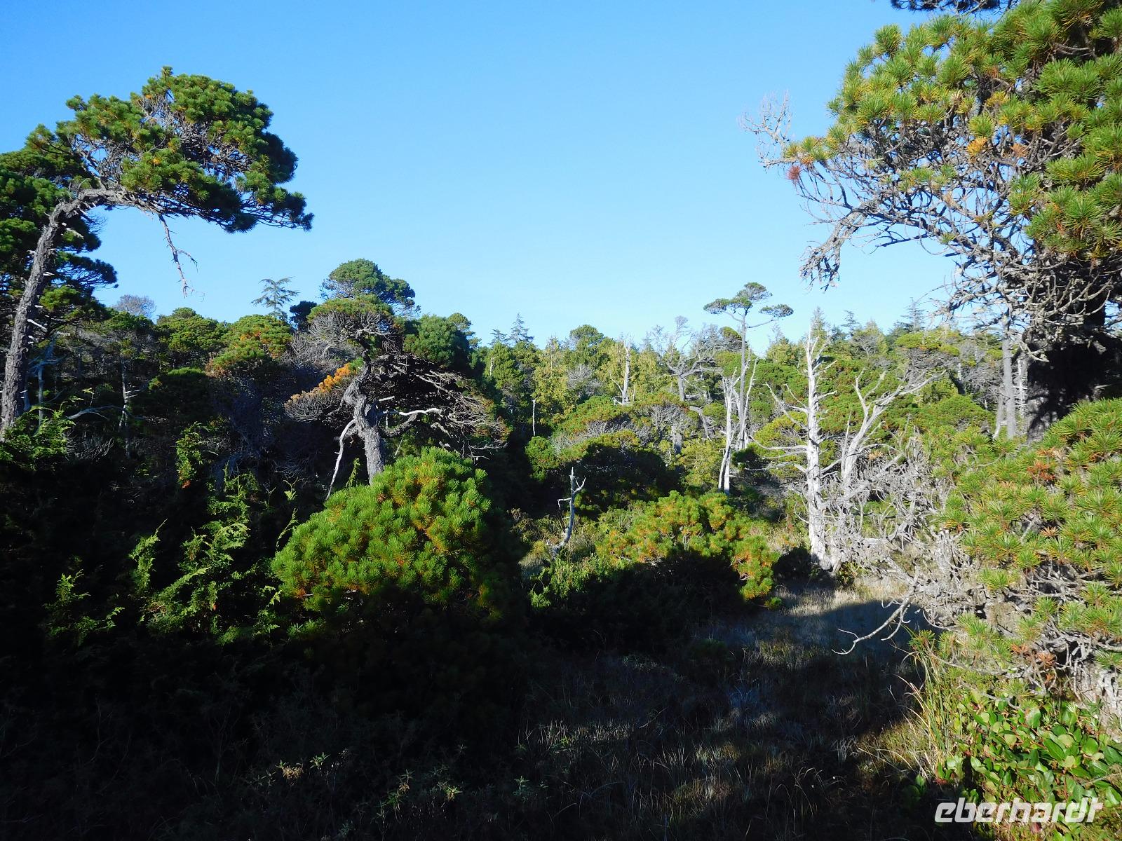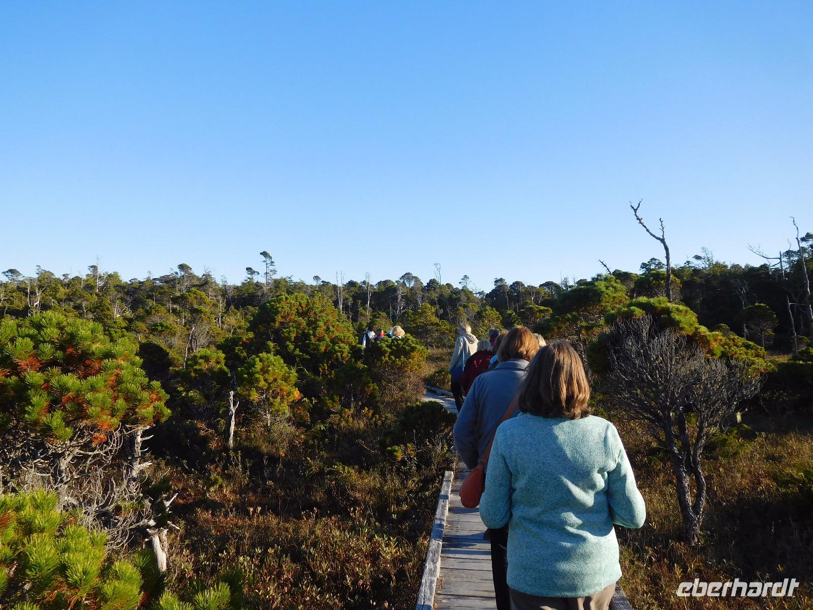 Anschließend zeigte uns Marion einen ganz anderen Wald - wie natürliche, sehr knorrige Bonsai wuchs unweit des Strandes ein skurriler Wald, durch das wir auf hölzernem Pfad liefen.
