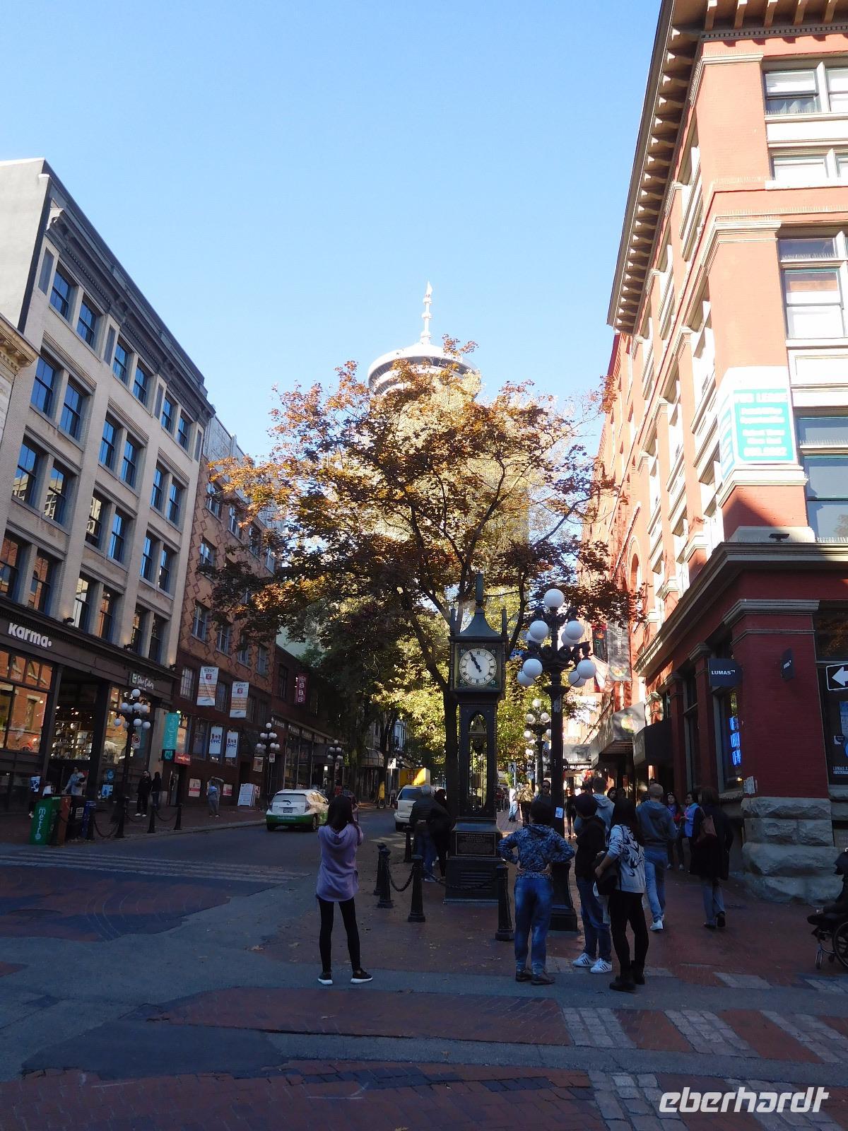 Kein Schlagen, sondern ein fröhliches Pfeifen, vernahmen wir von der weltweit ersten Dampfuhr, die fast unscheinbar im Stadtteil Gastown stündlich eine Melodie „verdampft".