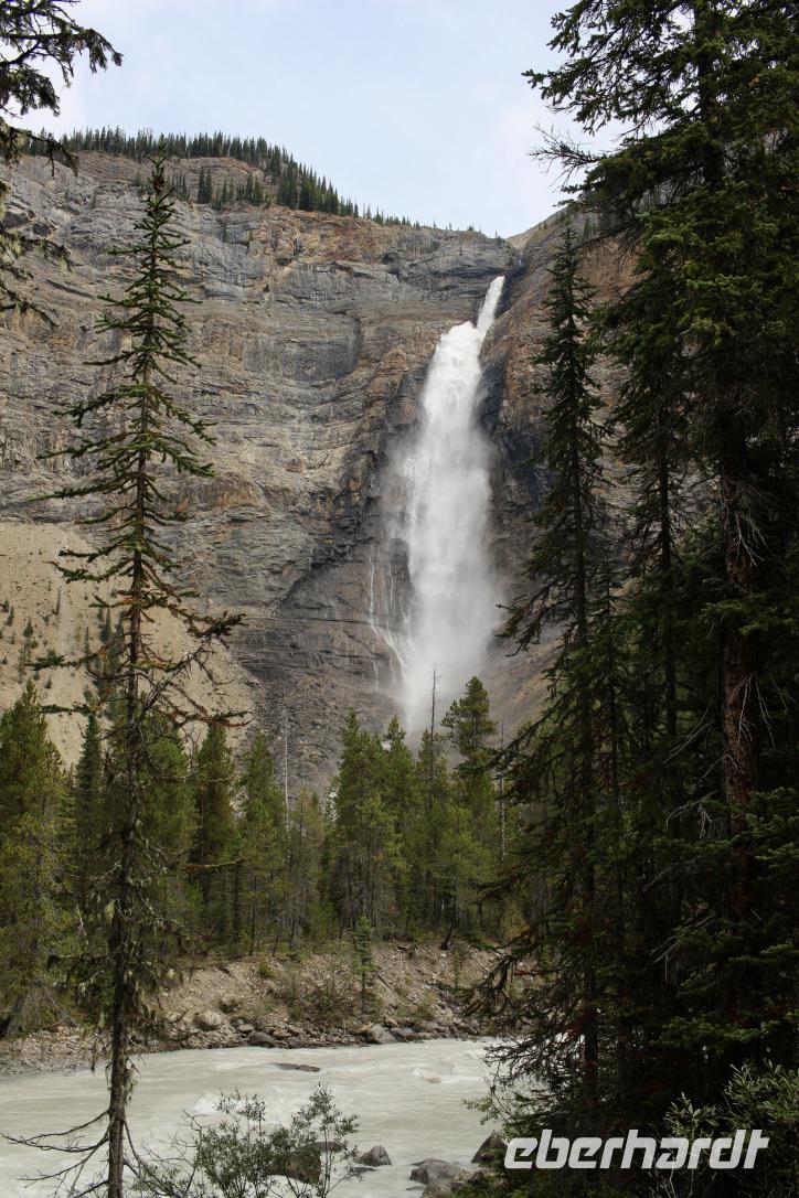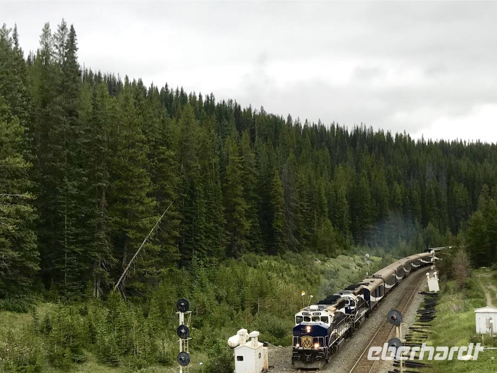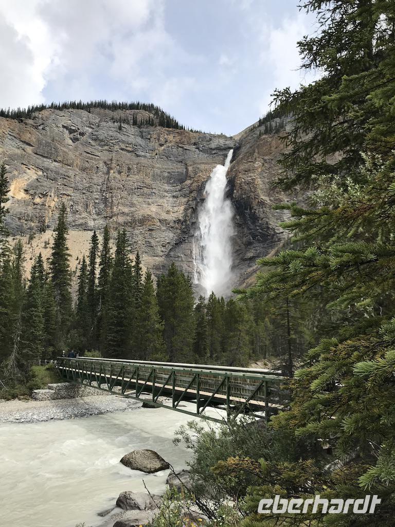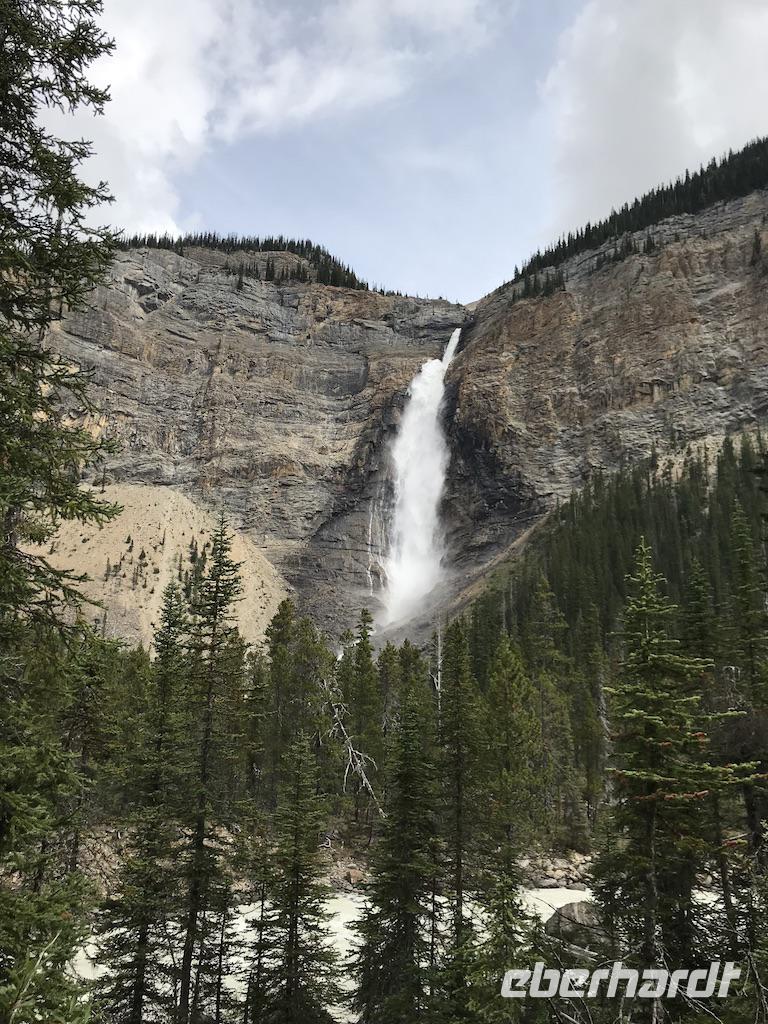 Heute sollte es nun richtig losgehen mit unserer Rundreise. Nach dem Frühstück verließen wir Calgary und fuhren in die Rocky Mountains. Während sich das Wetter am Morgen noch sehr trüb und verregnet gezeigt hatte, klarte es nun zu unserer großen Freude mehr und mehr auf. Unterwegs begegneten wir immer wieder verschiedenen Güterzügen, sowie auch dem Rocky Mountaineer, einem Panoramazug, welchen wir nur zu gern fotografierten. Besonders eindrucksvoll sollte dies bei den „Spiral Tunnels" sein, einer besonderen Konstruktion zum einfachen Überwinden des doch recht steilen Anstieges der Eisenbahngleise. Unser Timing passte perfekt, denn kaum waren wir an diesem Aussichtspunkt angekommen, ließ sich der erste Zug blicken. Weiter ging es bis zum Emerald Lake, wo sich sogar langsam die Sonne zeigte. Wir bewunderten das herrlich klare Wasser sowie die wunderschöne Farbe und fotografierten fleißig. Doch nicht nur uns beeindruckte dieses Fotomotiv. Zahlreiche weitere Busse ließen erkennen, dass aktuell Hochsaison hier in Kanada herrschte. Auch nachdem wir den Emerald Lake wieder verlassen hatten, verweilten wir noch etwas im Yoho-Nationalpark und besuchten die Natural Bridge, eine natürliche Brücke, über den Fluss Kicking Horse. Mit weiteren tollen Fotos im Gepäck erreichten wir schließlich den Takakkaw Wasserfall, welcher der zweitgrößte Wasserfall der Region ist. Wir waren sofort beeindruckt von den hinabstürzenden Wassermassen. Ein kleiner Spaziergang brachte uns dem Wasserfall immer näher, bis uns die Gischt schließlich ins Gesicht spritzte und wir den Rückweg antraten. Überall zeigten sich wieder neue Motive, die allesamt ein Foto wert waren. Anschließend verließen wir den Yoho-Nationalpark und widmeten uns nun, nach einer kleinen Mittagspause, dem Banff-Nationalpark.