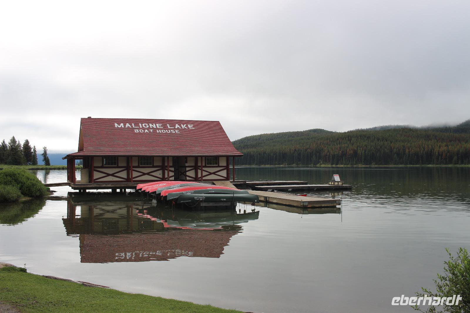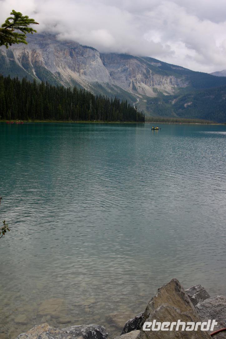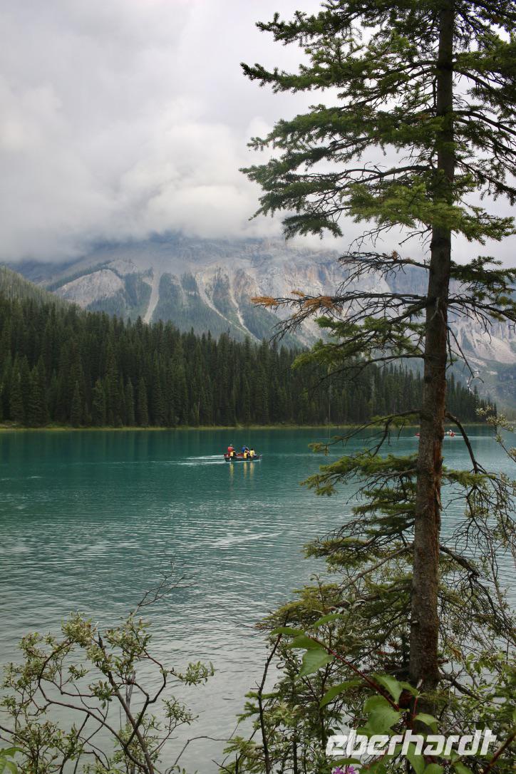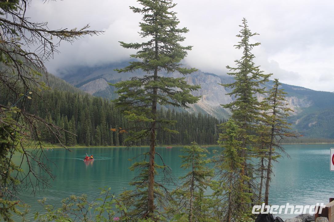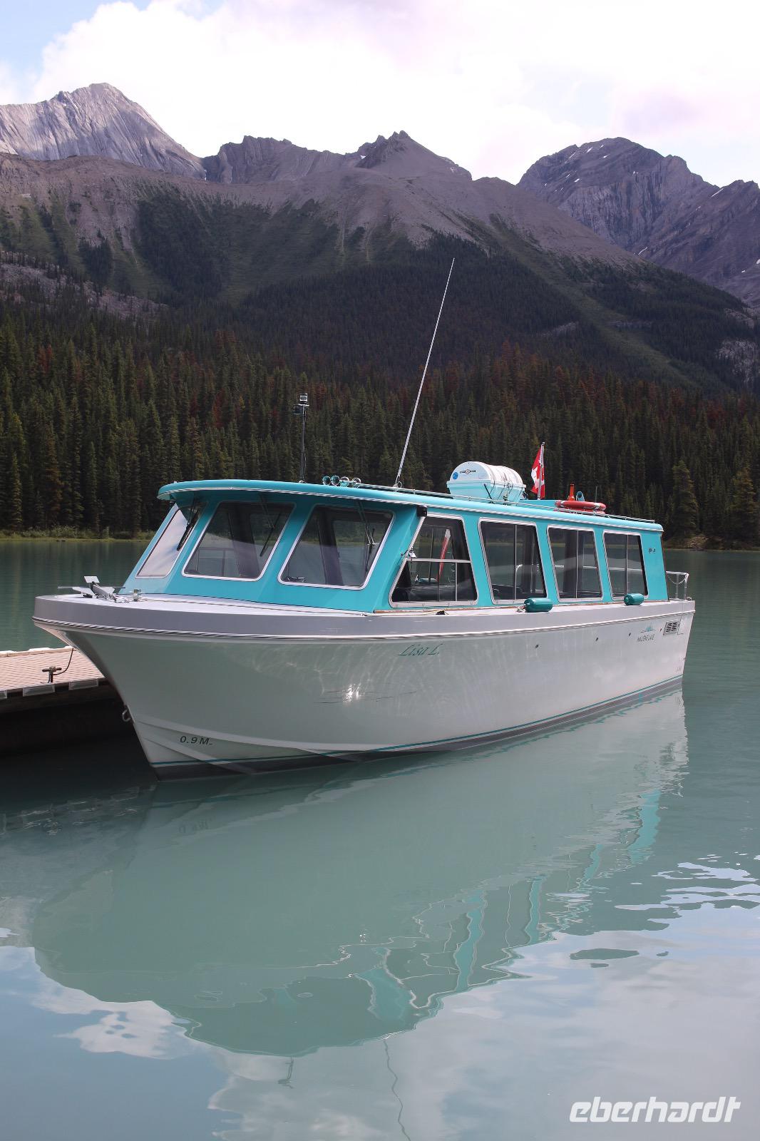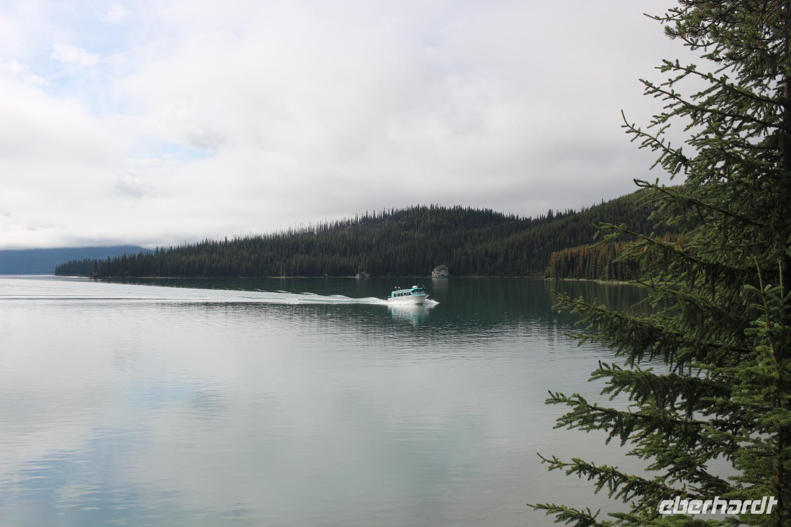 Auch den heutigen Tag begannen wir wieder mit einem gemeinsamen Frühstück. Dabei machte sich erste Vorfreude breit, denn nach Regen sah es aktuell absolut nicht aus. Optimistisch gestimmt und gut gesättigt, starteten wir unseren heutigen Ausflugstag, der ganz dem Jaspar Nationalpark gewidmet sein sollte. Zunächst fuhren wir dafür nach oben bis zum Maligne Lake. Unsere Fahrt führte uns dabei durch die dichten Nadelwälder, wobei wir erschrocken die Ausmaße eines borkenkäferähnlichen Insektes, dem Kieferrindenkäfer, erkennen mussten, welches sich auf Kiefern spezialisiert hatte. Flächenweise waren die Wälder davon befallen, sodass zahlreiche braune Bäume herausstachen. Besonders schwerwiegend waren dann natürlich Blitzeinschläge und daraus resultierende Waldbrände, welche bereits riesige Waldbestände vernichtet hatten. Ein Beispiel dafür war für uns am Medicine Lake sichtbar. Nach einer kurzen Pause an diesem See fuhren wir die verbleibenden Kilometer zum Maligne Lake, dem zweitgrößten Gletschersee der Welt, hinauf. Zunächst unternahmen wir einen kleinen Spaziergang, welcher uns entlang des Sees sowie anschließend durch den dichten Wald führte. Dabei waren sogar nächste Tierbeobachtungen zu verzeichnen - Neben zahlreichen Mücken konnte der eine oder andere auch ein Eichhörnchen fotografieren. Wenig später fanden wir uns wieder am Maligne Lake ein, um gemeinsam eine Bootsfahrt zu unternehmen. Pünktlich dazu kam die Sonne heraus und wir wurden von ungeahnt warmen Temperaturen überrascht. Von unserer Kapitänin Kyla wurden wir sicher über den 22km langen See bis hin zu Spirit Island gefahren, während uns unser chilenischer Reiseleiter Carlos mit zahlreichen Informationen über diesen besonderen Ort versorgte. Bei Spirit Island angekommen, gingen wir am wohl bekanntesten Fotomotiv Kanadas an Land und konnten für einen kleinen Rundweg von Bord gehen. Natürlich fotografierten wir die traumhaft schöne Kulisse fleißig, welche einst durch eine Kodak-Werbung in der New Yorker Central Station bekannt geworden war. Bis heute war nichts von seiner Einzigartigkeit verloren gegangen. Heute war uns auch das Wetter wohlgesonnen, sodass wir den türkisblauen See sowie die eindrucksvollen Gebirgszüge im Hintergrund bewundern konnten. Nachdem wir schließlich wieder am Ausgangspunkt des Ausfluges angekommen waren, verließen wir den Maligne Lake und setzten wir unsere Fahrt mit dem Bus fort. Wenig später unternahmen wir einen Spaziergang am Maligne Canyon - natürlich ebenfalls bei Sonnenschein und blauem Himmel. Doch damit war unser Ausflugstag noch nicht beendet, denn wir hatten schließlich noch einen Programmpunkt vom gestrigen Tag offen. So fuhren wir zum Athabasca River, um eine Floßfahrt bzw. leichte Raftingtour zu unternehmen. Ausgestattet mit Regencapes und Schwimmwesten kletterten wir schon bald an Bord des Schlauchbootes und das Abenteuer konnte beginnen. Anfängliche Zweifel bei dem einen oder anderen wichen schnell der Freude über dieses schöne Erlebnis. Gemütlich schipperte uns unser Guide Jules über den Fluss, wobei ab und an die eine oder andere Stromschnelle überwunden werden musste. Doch abgesehen von ein paar Wasserspritzern passierte niemanden etwas und wir alle hatten Spaß. Dabei genossen wir das traumhafte Panorama um uns herum - tiefgrüne Wälder sowie wunderschöne Bergketten zeigten sich uns vor blauem Himmel in voller Pracht. Glücklich wurden wir schließlich nach einer 1,5stündigen Tour von Renzo wieder abgeholt und zum Hotel gebracht. Hier ließen wir den erlebnisreichen Tag wieder beim gemeinsamen Abendessen ausklingen und uns dabei von der hervorragenden Küche des Hauses verwöhnen.