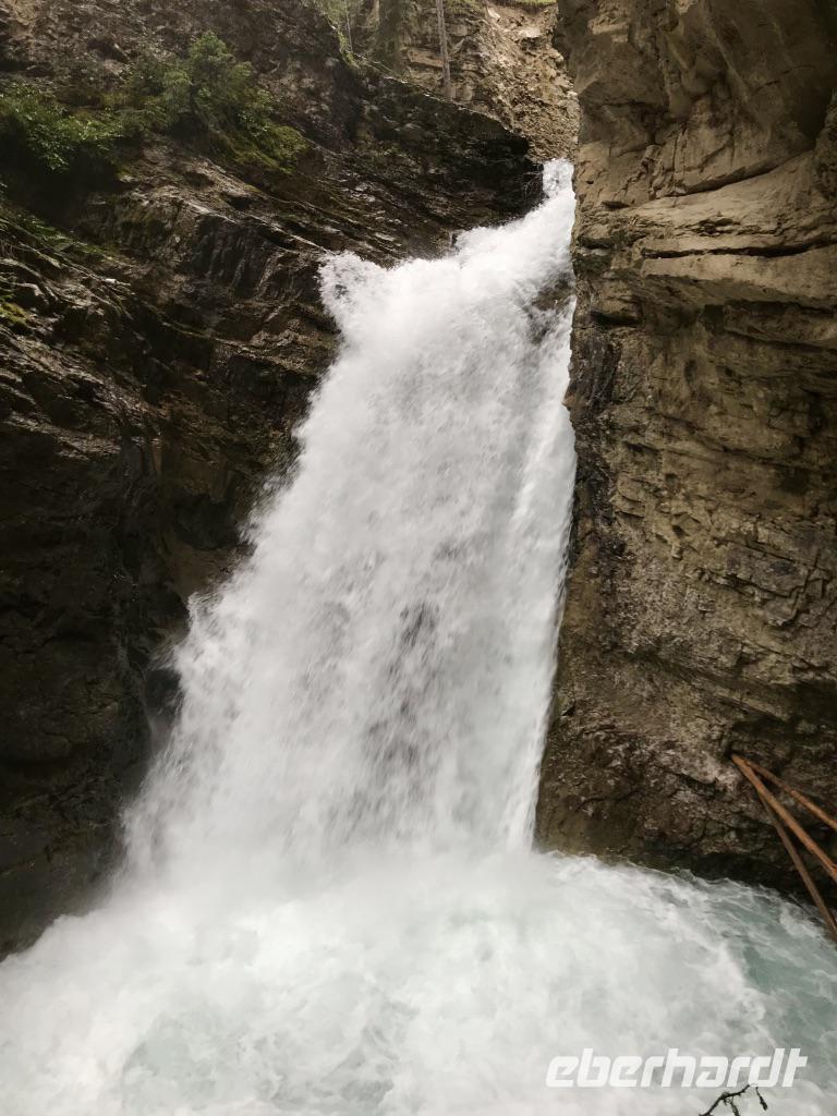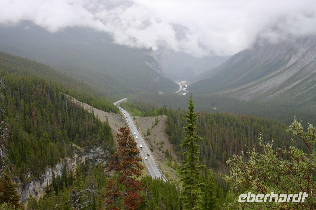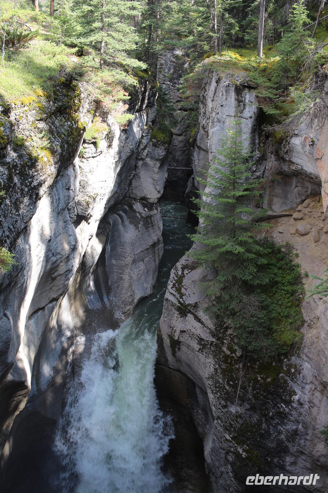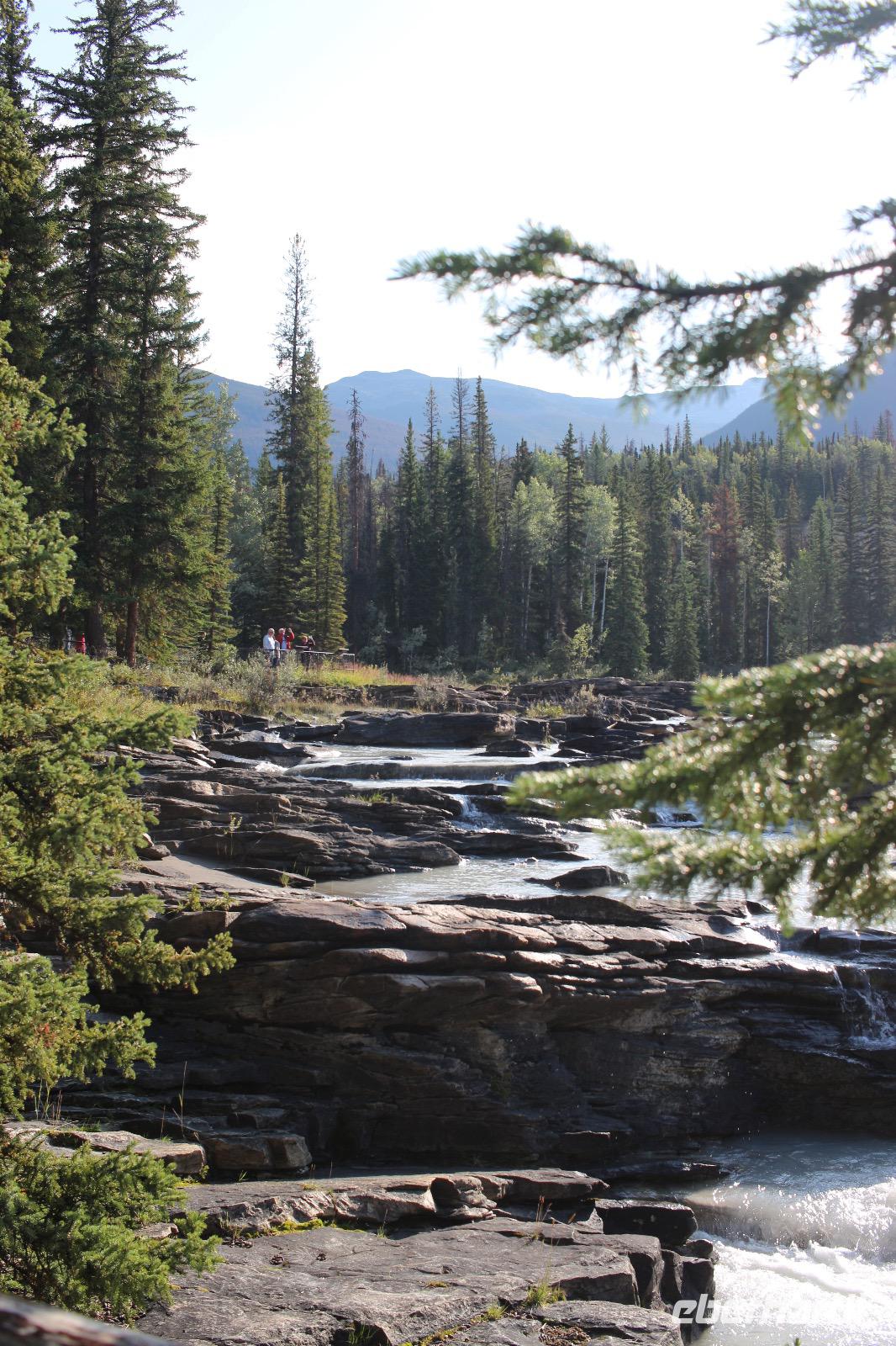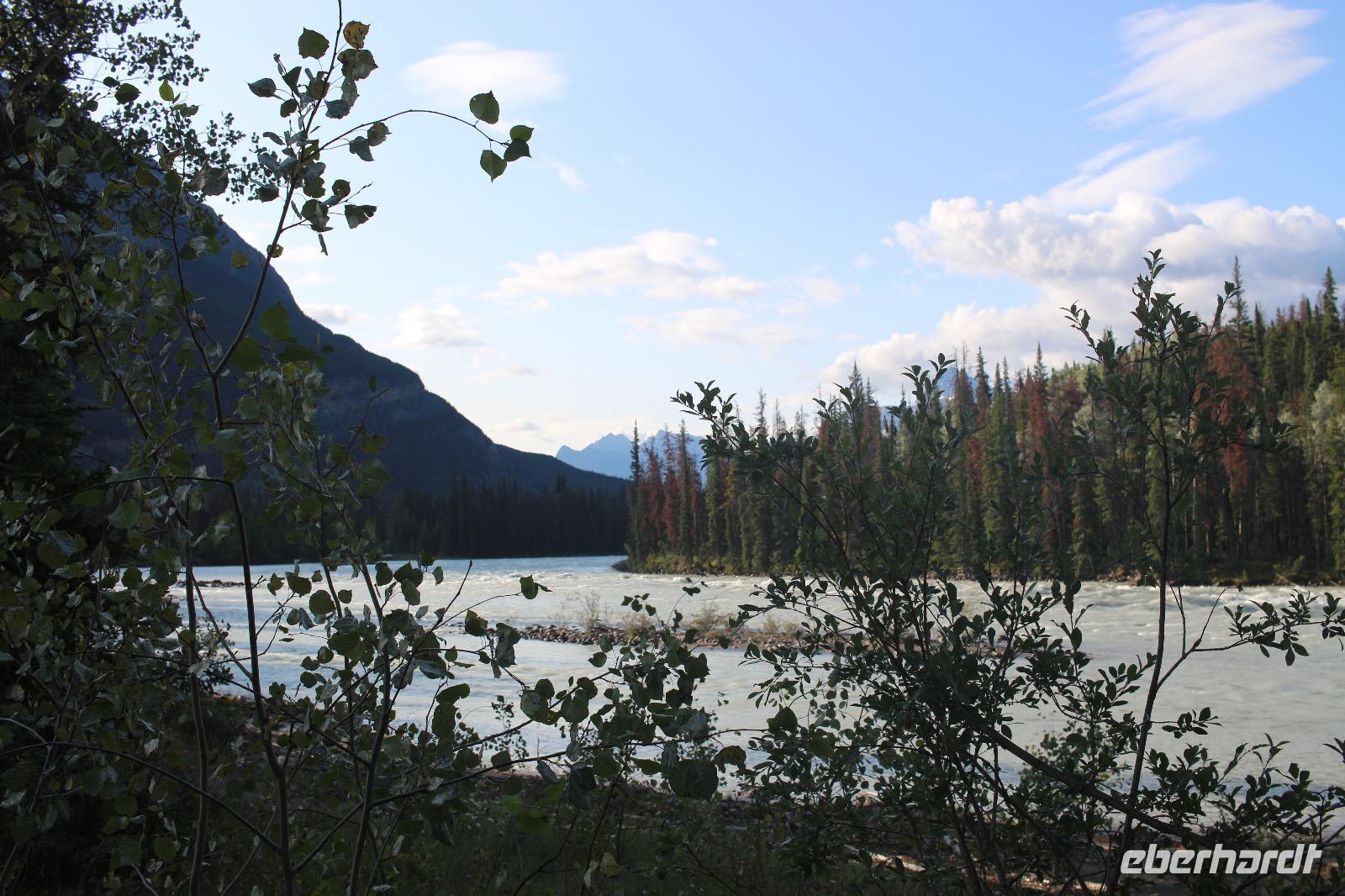 Nach einem reichhaltigen Frühstück verließen wir unser schönes Hotel bei bestem Wetter mit blauem Himmel und Sonnenschein. Vom Jasper Nationalpark konnten wir uns jedoch noch nicht ganz trennen, so fuhren wir zunächst noch zu den Athabasca Falls. Hier unternahmen wir einen kleinen Rundweg und bestaunten die Naturgewalten. Dabei zeigte sich uns auch ein wunderschöner Regenbogen, der die Fotos perfekt machte. Anschließend unternahmen wir noch eine kleine Rundfahrt durch das Örtchen Jasper, bevor wir den schönen Nationalpark dann endgültig hinter und ließen und in Richtung Westen weiterfuhren.
