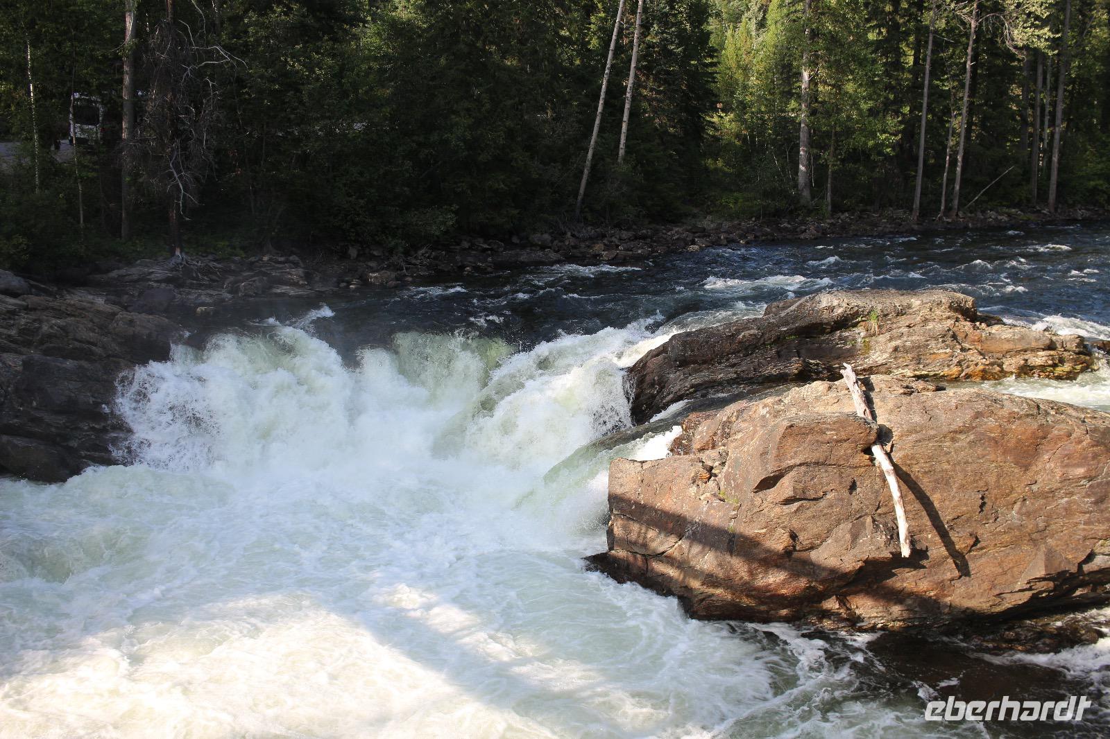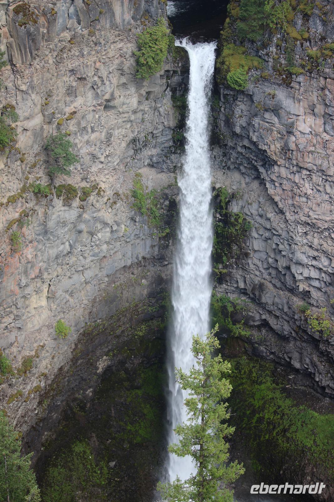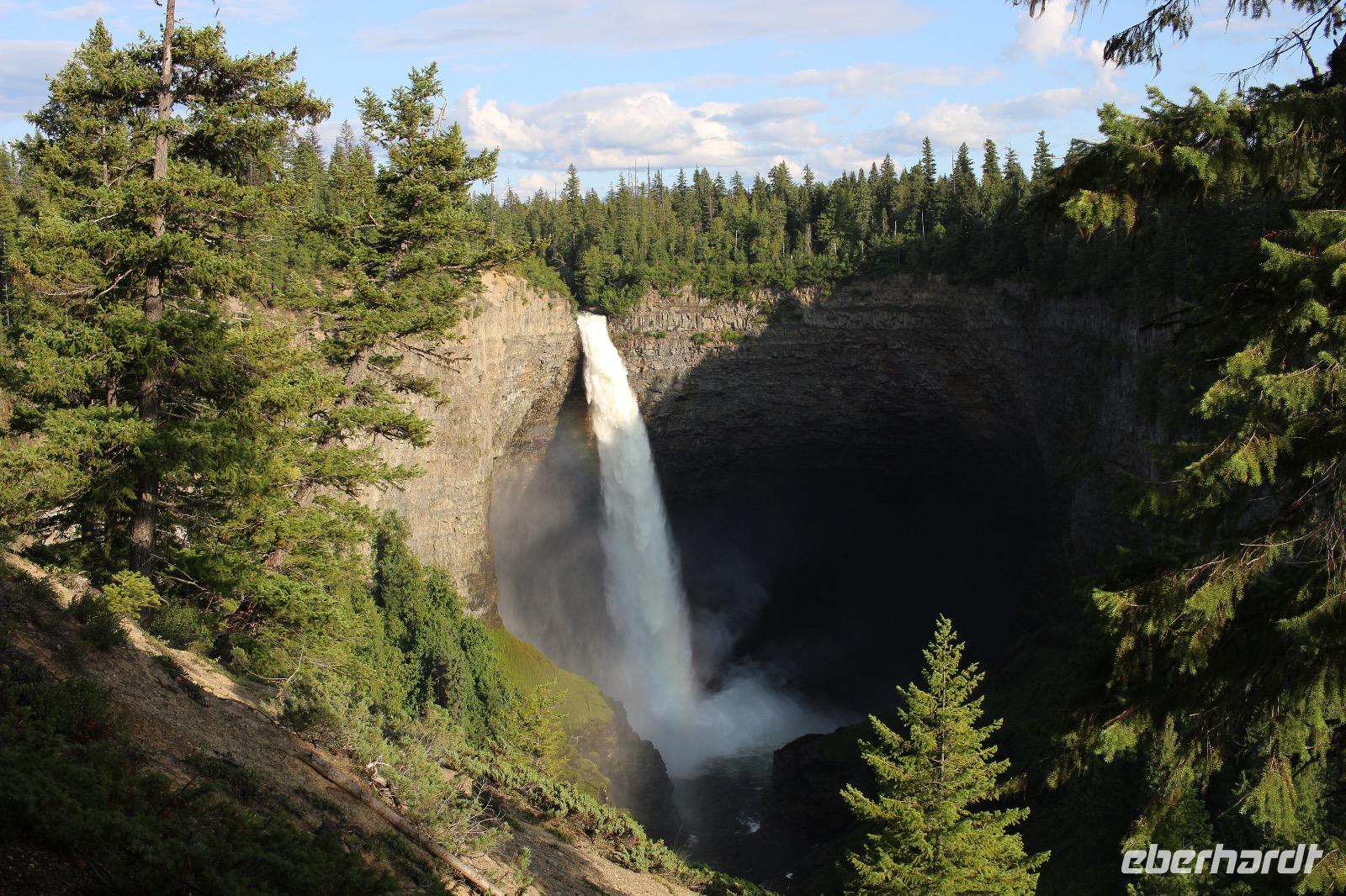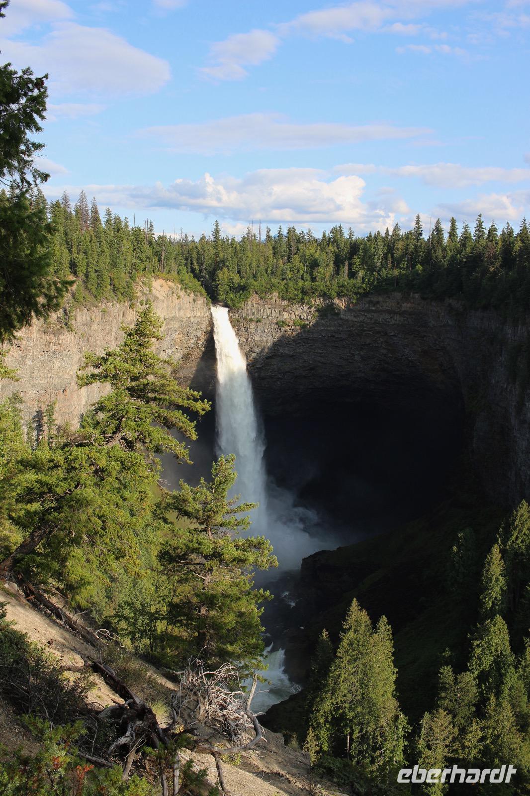 In Velmont legten wir einen kleinen Stop ein, um den einen tapferen Lachs zu suchen, der den schweren Weg hierher geschafft hatte. Jedoch wollte er sich uns nicht zeigen, wahrscheinlich war er längst weitergezogen. Nach einer recht langen Fahrt erreichten wir schließlich das kleine Städtchen Clearwater. Zunächst hielten wir kurz am hiesigen Besucherzentrum, bevor wir unser Hotel bezogen. Doch hier hielten wir uns nicht lange auf, wollten wir doch den Wells Gray Provincial Park erkunden. So fuhren wir wenig später zu diesem Park, wo uns wieder einige schöne Wasserfälle erwarteten. Wir begannen mit den etwas kleineren Spahats Falls, wo erste Fotos gemacht werden konnten. Anschließend führte uns unsere Tour zu den Dawson Falls, welche nicht zu Unrecht den Spitznamen „Mini-Niagarafälle" tragen. Wir bestaunten die herunterstürzenden Wassermassen und fotografierten fleißig. Um einen noch besseren Blick erlangen zu können, begaben wir uns sogar auf eine kleine Klettertour hinunter zum Fluss, von wo aus wir die Wasserfälle perfekt fotografieren konnten. Alle meisterten die kleine sportliche Herausforderung gut, sodass wir wieder gesund und munter am Bus ankamen. Anschließend zeigte sich uns ein kleinerer Wasserfall (Mush Bowl), an welchem wir zu Fuß eine kleine Brücke überquerten, bevor es zu den bekannten Helmecken Falls gehen sollte. Wieder ein ganz anderer Wasserfall und trotzdem wunderschön! Aufgrund der für uns sehr günstigen Sonneneinstrahlung konnten wir an verschiedenen Stellen des Wasserfalls immer wieder einen Regenbogen erkennen, welcher unsere Fotos natürlich perfekt machte. Als unsere Mägen langsam zu knurren begannen, fuhren wir zur Wells Gray Ranch. Hier fühlten wir uns wie in einem Westernfilm. Durch eine Schwingtür gelangten wir in den Saloon, bestellten am Tresen unser Bier und machten es uns an den Tischen im Garten bequem - umgeben von Planwagen und riesengroßen Weiden für die Pferde. Um uns herum schier unendliche Weiten. Begrüßt wurden wir von zwei Schweizern und einer Österreicherin, welche alle im perfekten Cowboy-Outfit gekleidet waren. Während wir die Atmosphäre genossen, die Pferde auf der Weide beobachten und in der Ferne die Sandkraniche fotografierten, wurde unser Abendessen zubereitet. Schließlich erwarteten uns frisch gegrillte, saftige Steaks, dazu Bohnen und Backkartoffeln. Wir ließen es uns schmecken und saßen noch lange zusammen, bevor wir zurück zu unserem Hotel fuhren, wo wir müde in unsere Betten fielen.