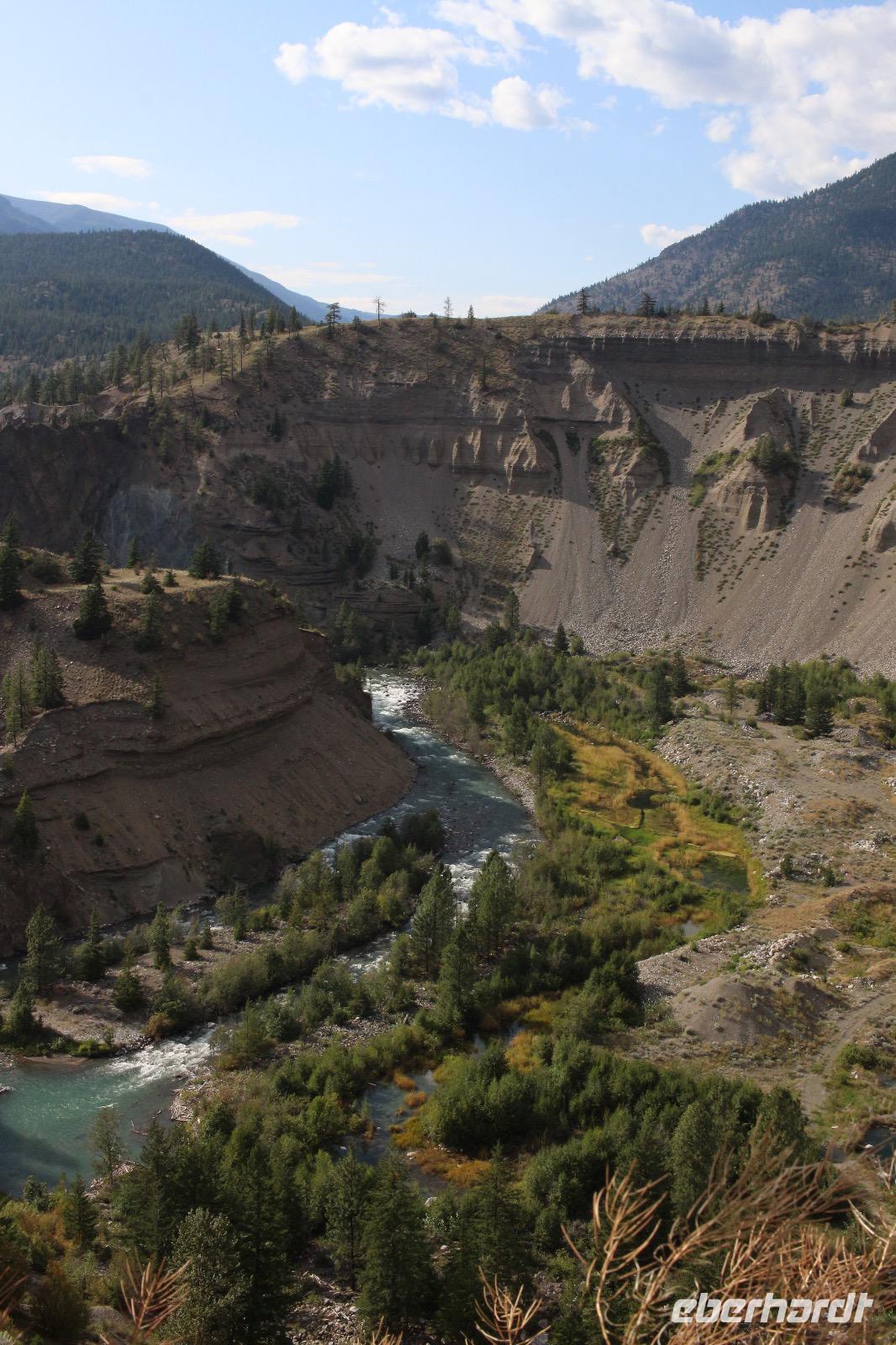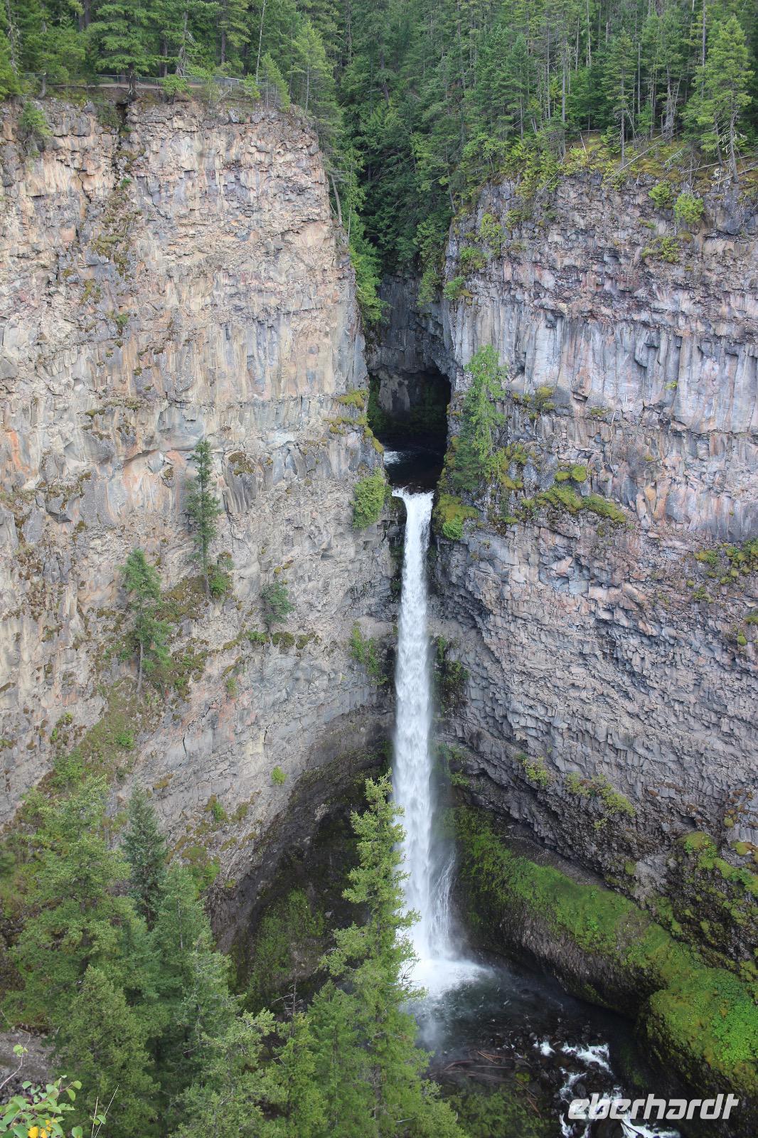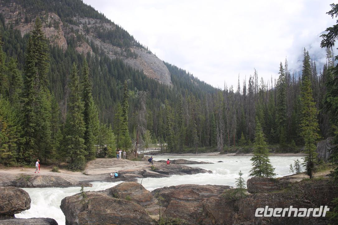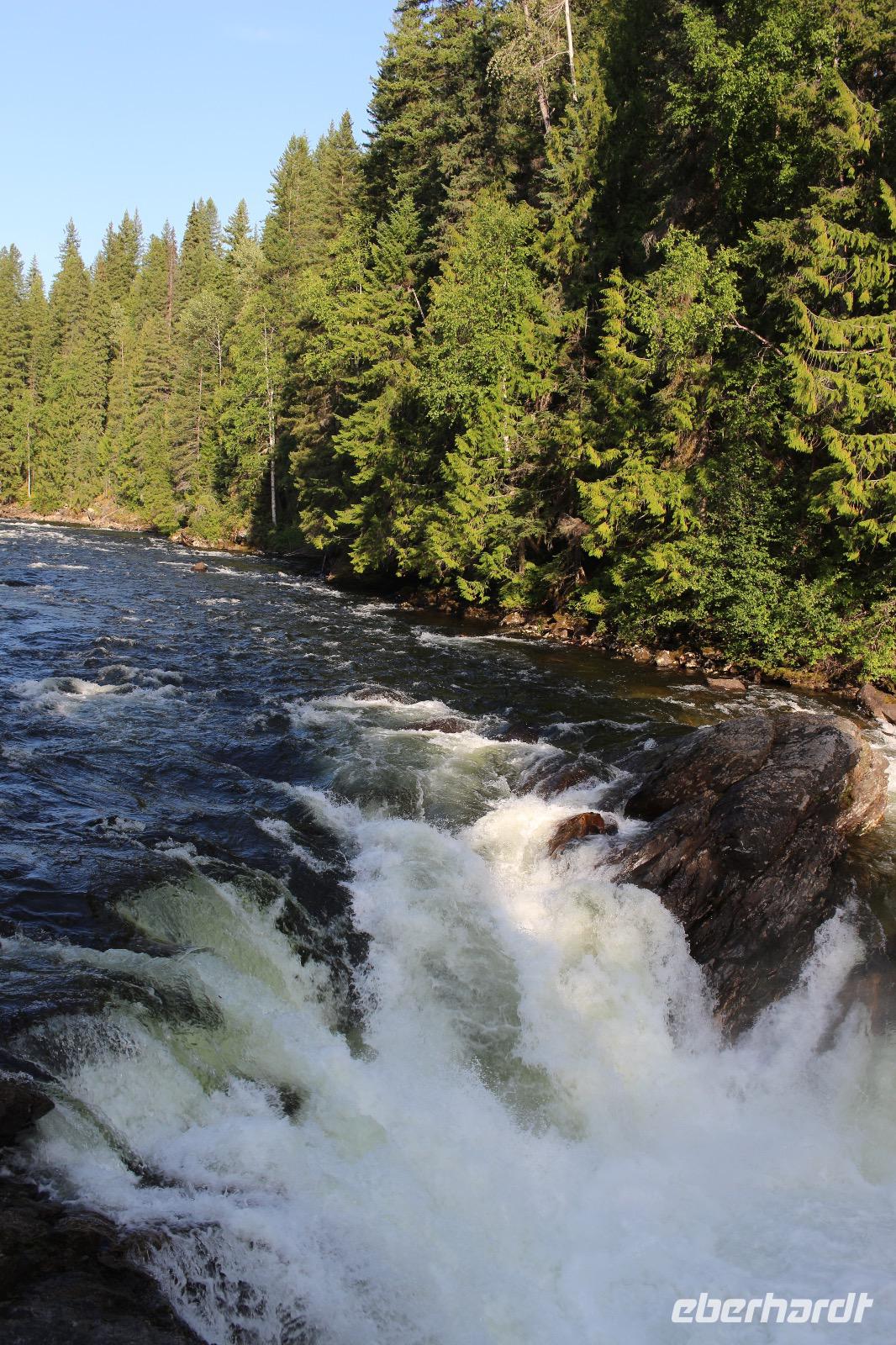 In Velmont legten wir einen kleinen Stop ein, um den einen tapferen Lachs zu suchen, der den schweren Weg hierher geschafft hatte. Jedoch wollte er sich uns nicht zeigen, wahrscheinlich war er längst weitergezogen. Nach einer recht langen Fahrt erreichten wir schließlich das kleine Städtchen Clearwater. Zunächst hielten wir kurz am hiesigen Besucherzentrum, bevor wir unser Hotel bezogen. Doch hier hielten wir uns nicht lange auf, wollten wir doch den Wells Gray Provincial Park erkunden. So fuhren wir wenig später zu diesem Park, wo uns wieder einige schöne Wasserfälle erwarteten. Wir begannen mit den etwas kleineren Spahats Falls, wo erste Fotos gemacht werden konnten. Anschließend führte uns unsere Tour zu den Dawson Falls, welche nicht zu Unrecht den Spitznamen „Mini-Niagarafälle" tragen. Wir bestaunten die herunterstürzenden Wassermassen und fotografierten fleißig. Um einen noch besseren Blick erlangen zu können, begaben wir uns sogar auf eine kleine Klettertour hinunter zum Fluss, von wo aus wir die Wasserfälle perfekt fotografieren konnten. Alle meisterten die kleine sportliche Herausforderung gut, sodass wir wieder gesund und munter am Bus ankamen. Anschließend zeigte sich uns ein kleinerer Wasserfall (Mush Bowl), an welchem wir zu Fuß eine kleine Brücke überquerten, bevor es zu den bekannten Helmecken Falls gehen sollte. Wieder ein ganz anderer Wasserfall und trotzdem wunderschön! Aufgrund der für uns sehr günstigen Sonneneinstrahlung konnten wir an verschiedenen Stellen des Wasserfalls immer wieder einen Regenbogen erkennen, welcher unsere Fotos natürlich perfekt machte. Als unsere Mägen langsam zu knurren begannen, fuhren wir zur Wells Gray Ranch. Hier fühlten wir uns wie in einem Westernfilm. Durch eine Schwingtür gelangten wir in den Saloon, bestellten am Tresen unser Bier und machten es uns an den Tischen im Garten bequem - umgeben von Planwagen und riesengroßen Weiden für die Pferde. Um uns herum schier unendliche Weiten. Begrüßt wurden wir von zwei Schweizern und einer Österreicherin, welche alle im perfekten Cowboy-Outfit gekleidet waren. Während wir die Atmosphäre genossen, die Pferde auf der Weide beobachten und in der Ferne die Sandkraniche fotografierten, wurde unser Abendessen zubereitet. Schließlich erwarteten uns frisch gegrillte, saftige Steaks, dazu Bohnen und Backkartoffeln. Wir ließen es uns schmecken und saßen noch lange zusammen, bevor wir zurück zu unserem Hotel fuhren, wo wir müde in unsere Betten fielen.
