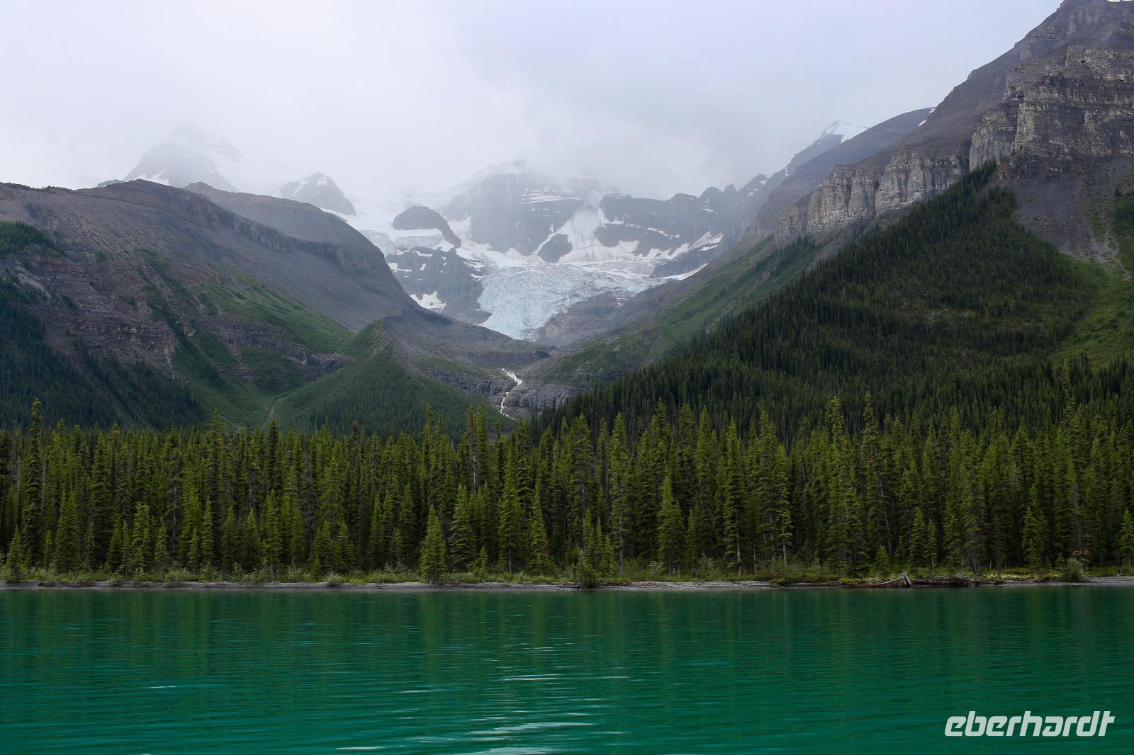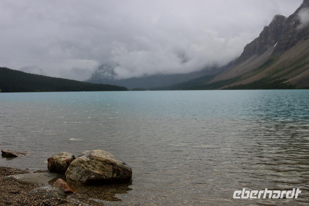 Leider wurden wir heute nicht nur von dem Klingeln unserer Wecker geweckt, sondern auch vom auf das Dach trommelnden Regen. Doch davon ließen wir uns nicht beeindrucken. Nach dem Frühstück verließen wir Banff voller Vorfreude auf einen weiteren erlebnisreichen Tag in den kanadischen Rocky Mountains. Wenig später konnten wir bereits die erste Tierentdeckung verzeichnen - ein erster Schwarzbär zeigte sich uns am Straßenrand. Jedoch war dieser auch sehr schnell wieder verschwunden, sodass ein Beweisfoto leider ausblieb. Doch es lagen ja noch einige Tage vor uns und somit hoffentlich noch viele Chancen auf Bärensichtungen. Wenig später erreichten wir den Johnston Canyon. Hier unternahmen wir eine kleine Wanderung hinauf zu einem sehr hübschen Wasserfall. Während wir hinzu noch im Regen wanderten, verzog sich dieser auf dem Rückweg mehr und mehr. Erst als wir wieder im Bus saßen, wurde der Regen wieder stärker - perfekt abgepasst! Nach einer weiteren Busfahrt erreichten wir den Bow Lake, nachdem wir nun schon zwei Tage lang immer wieder dem dazugehörigen Bow River gefolgt waren. Wir unternahmen einen kurzen Spaziergang entlang des Sees und fotografierten wieder einmal fleißig. Dabei genossen wir den Blick auf das tiefblaue Wasser sowie die anmutenden Berge im Hintergrund. Einfach wunderschön!