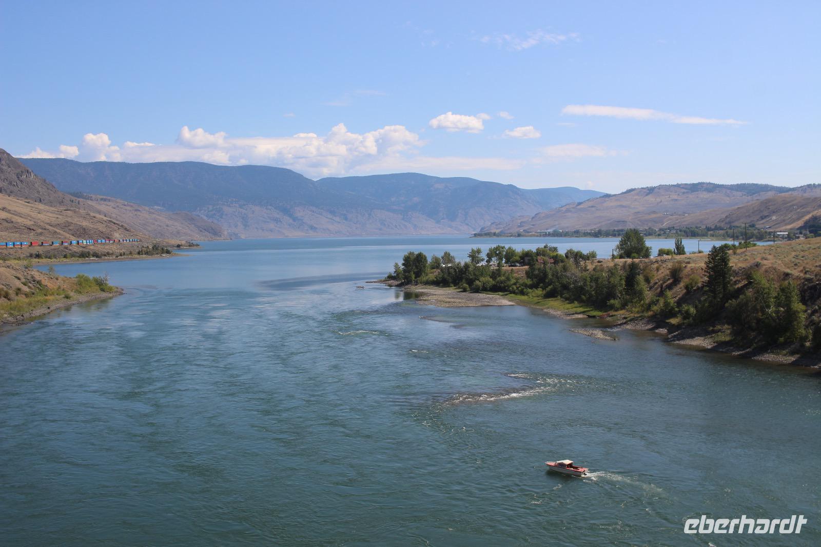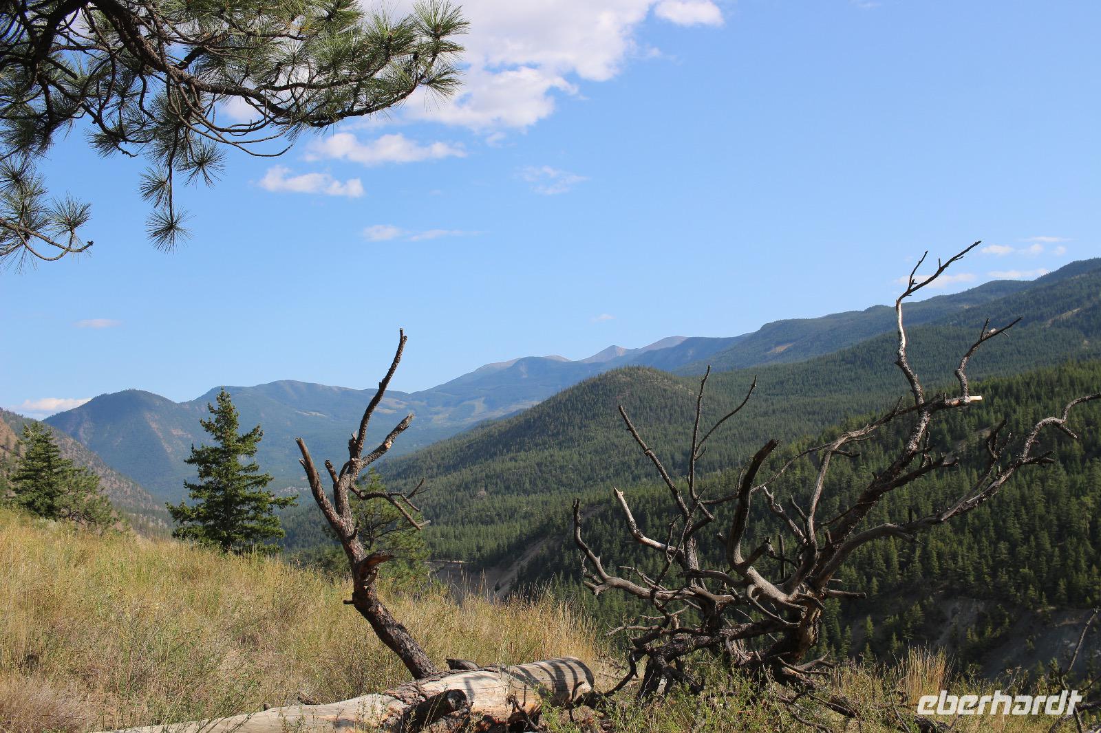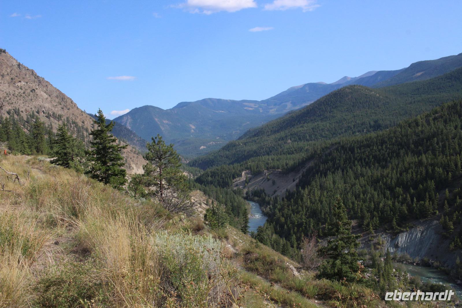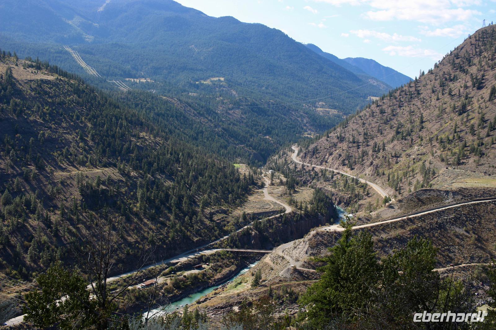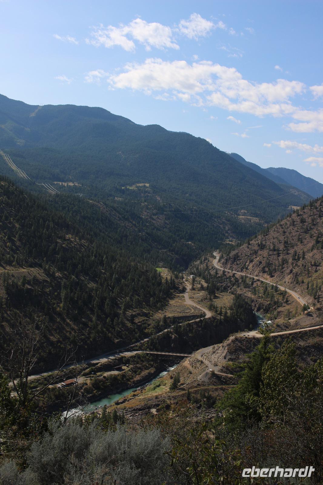 Nach dem sehr leckeren Frühstück verließen wir Clearwater heute am Morgen. Die Landschaft hatte sich gegenüber den vergangenen Tagen grundlegend verändert. Die Rocky Mountains hatten wir hinter uns gelassen und waren nun auf der Hochebene unterwegs. Hier herrschte ein sehr trockenes und warmes Klima vor. Dies bemerkten wir sofort an den Temperaturen, denn plötzlich zeigte das Thermometer immer wieder Temperaturen zwischen 25°C und 35°C an, was wir von Kanada bis jetzt noch gar nicht gewohnt waren. Auch die vorher so üppige Vegetation war nun eher weniger vorzufinden. Unterwegs begegneten wir wieder dem einen oder anderen kilometerlangen Zug sowie auch dem uns schon bekannten Rocky Mountaineer. Gegen Mittag erreichten wir die Hat Creek Ranch. Hier wurden wir zunächst zum Mittagessen erwartet mit frisch gegrillten Hamburgern. Anschließend wurden wir von Valerie, einem Indianermädchen, zu einer Führung abgeholt. Sie gab uns einen Einblick in das ursprüngliche Leben ihres Stammes der Shuswap. Wir lernten viel Neues dazu und man konnte nur staunen, wie sehr diese Urvölker im Einklang mit der Natur lebten und sich diese zunutze machten, ohne sie zu zerstören. Anschließend wurden wir von einer Kutsche abgeholt und fuhren zum Roadhouse. Während dieser kurzen Fahrt, bekamen wir einen kleinen Einklang, wie beschwerlich das Reisen früher gewesen sein musste. Da war unser Reisebus doch um einiges bequemer! Am Roadhouse angekommen, wurden wir von Pam erwartet, welche uns die Geschichte dieses Hauses näherbrachte. Sie erzählte über die Zeit des Goldrausches, in welcher hauptsächlich die erfolgreich von der Suche zurückgekehrten Abenteurer hier einen Zwischenstop einlegten. Wir lauschten ihren Geschichten und warfen einen Blick in die originalen Zimmer, welche für damalige Zeiten viel Luxus boten. Anschließend konnten wir noch beim Schmied vorbeischauen, welcher gerade einen Flaschenöffner herstellte. Interessiert beobachteten wir den Handwerker, bevor wir schließlich wieder aufbrachen. Mit vielen neuen Eindrücken setzten wir unsere Weiterreise durch die warme und trockene Hochebene fort. Über Lillooet fuhren wir mit verschiedenen Fotostops entlang des Weges zu unserer Unterkunft für die nächsten zwei Tage. Einige Streckenabschnitte gestalteten sich etwas abenteuerlich aufgrund der Straßenverhältnisse sowie der steilen Abgründe neben der Straße. Abseits jeglicher Zivilisation erreichten wir schließlich das wunderschöne Tyax Resort. Nachdem die Zimmer bezogen waren, ließen wir den langen Tag schließlich bei einem gemeinsamen Abendessen ausklingen.
