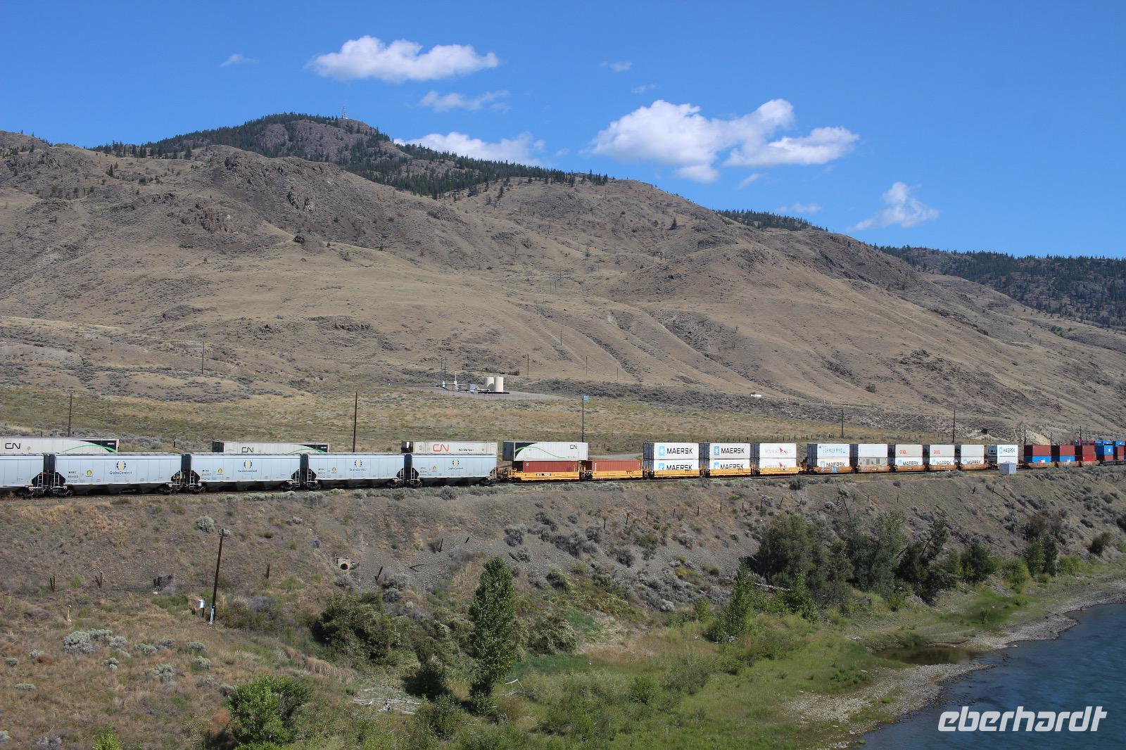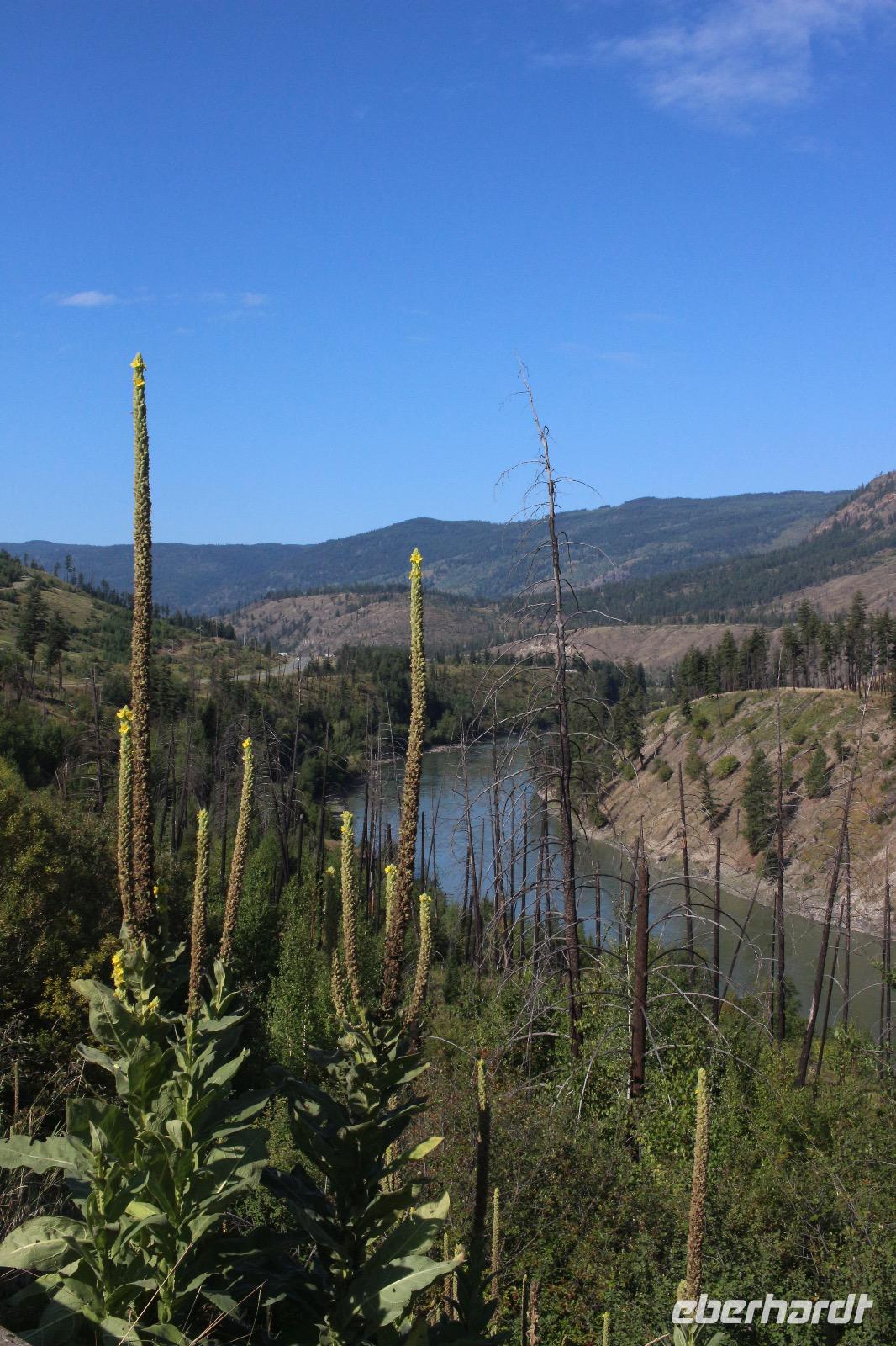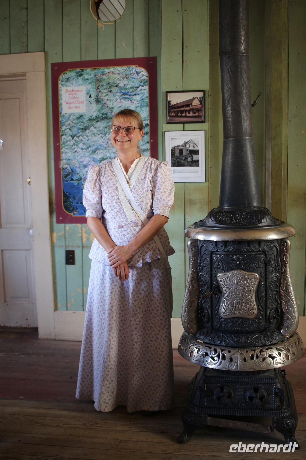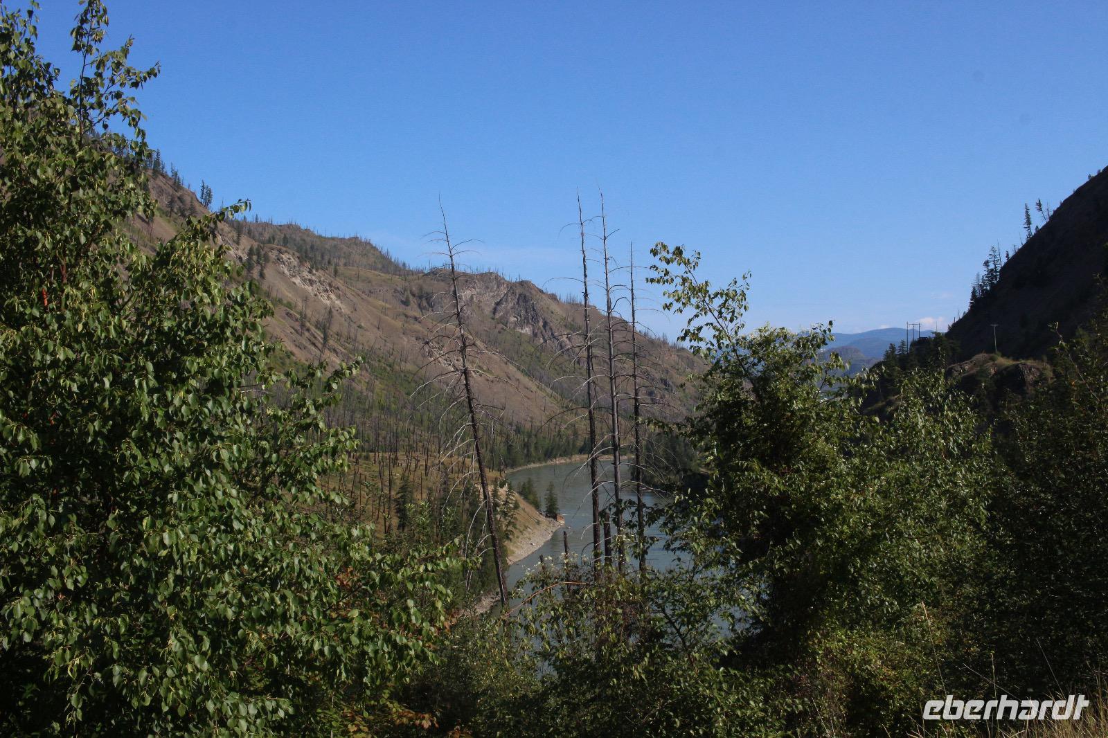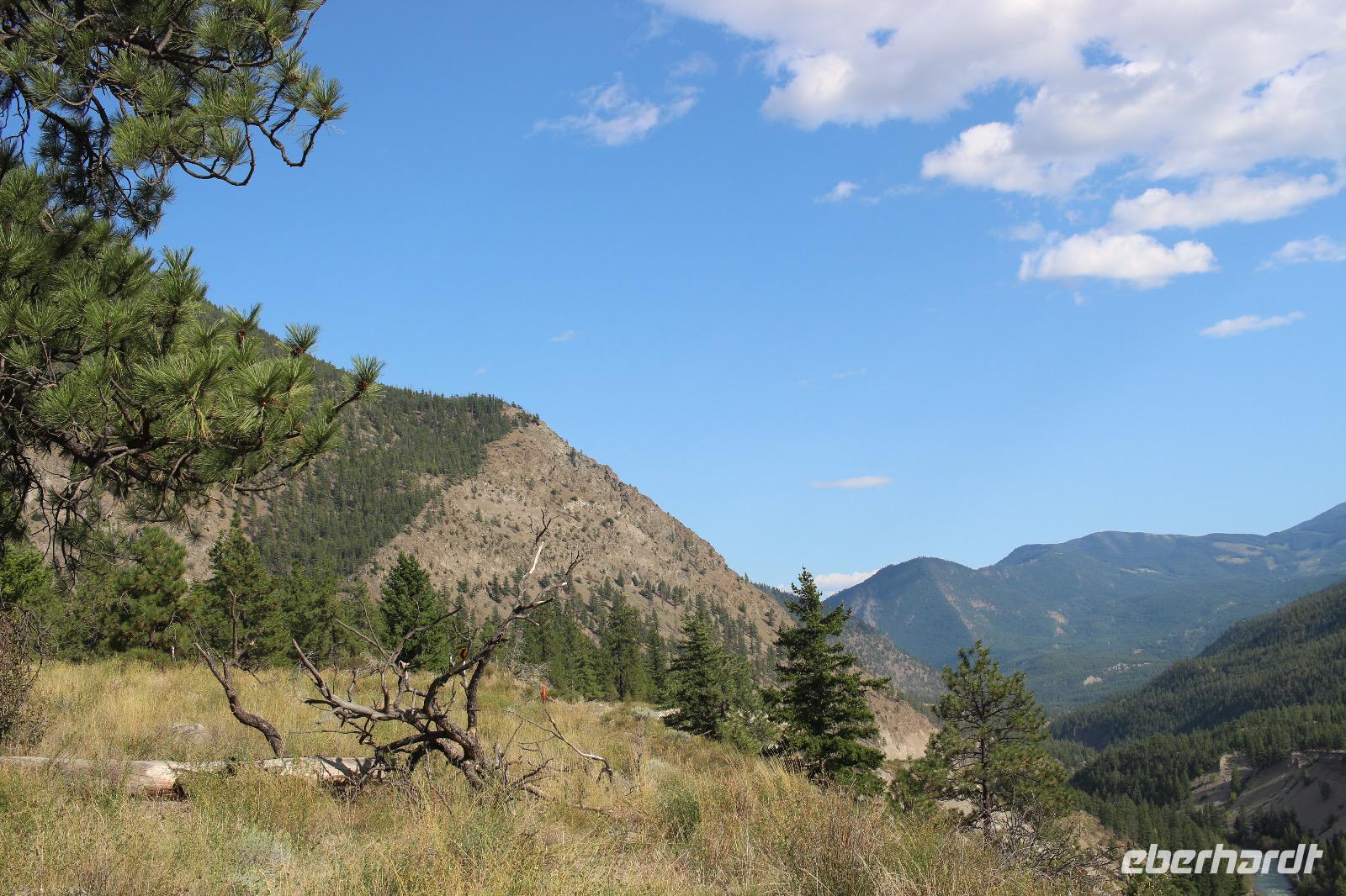 Nach dem sehr leckeren Frühstück verließen wir Clearwater heute am Morgen. Die Landschaft hatte sich gegenüber den vergangenen Tagen grundlegend verändert. Die Rocky Mountains hatten wir hinter uns gelassen und waren nun auf der Hochebene unterwegs. Hier herrschte ein sehr trockenes und warmes Klima vor. Dies bemerkten wir sofort an den Temperaturen, denn plötzlich zeigte das Thermometer immer wieder Temperaturen zwischen 25°C und 35°C an, was wir von Kanada bis jetzt noch gar nicht gewohnt waren. Auch die vorher so üppige Vegetation war nun eher weniger vorzufinden. Unterwegs begegneten wir wieder dem einen oder anderen kilometerlangen Zug sowie auch dem uns schon bekannten Rocky Mountaineer. Gegen Mittag erreichten wir die Hat Creek Ranch. Hier wurden wir zunächst zum Mittagessen erwartet mit frisch gegrillten Hamburgern. Anschließend wurden wir von Valerie, einem Indianermädchen, zu einer Führung abgeholt. Sie gab uns einen Einblick in das ursprüngliche Leben ihres Stammes der Shuswap. Wir lernten viel Neues dazu und man konnte nur staunen, wie sehr diese Urvölker im Einklang mit der Natur lebten und sich diese zunutze machten, ohne sie zu zerstören. Anschließend wurden wir von einer Kutsche abgeholt und fuhren zum Roadhouse. Während dieser kurzen Fahrt, bekamen wir einen kleinen Einklang, wie beschwerlich das Reisen früher gewesen sein musste. Da war unser Reisebus doch um einiges bequemer! Am Roadhouse angekommen, wurden wir von Pam erwartet, welche uns die Geschichte dieses Hauses näherbrachte. Sie erzählte über die Zeit des Goldrausches, in welcher hauptsächlich die erfolgreich von der Suche zurückgekehrten Abenteurer hier einen Zwischenstop einlegten. Wir lauschten ihren Geschichten und warfen einen Blick in die originalen Zimmer, welche für damalige Zeiten viel Luxus boten. Anschließend konnten wir noch beim Schmied vorbeischauen, welcher gerade einen Flaschenöffner herstellte. Interessiert beobachteten wir den Handwerker, bevor wir schließlich wieder aufbrachen. Mit vielen neuen Eindrücken setzten wir unsere Weiterreise durch die warme und trockene Hochebene fort. Über Lillooet fuhren wir mit verschiedenen Fotostops entlang des Weges zu unserer Unterkunft für die nächsten zwei Tage. Einige Streckenabschnitte gestalteten sich etwas abenteuerlich aufgrund der Straßenverhältnisse sowie der steilen Abgründe neben der Straße. Abseits jeglicher Zivilisation erreichten wir schließlich das wunderschöne Tyax Resort. Nachdem die Zimmer bezogen waren, ließen wir den langen Tag schließlich bei einem gemeinsamen Abendessen ausklingen.